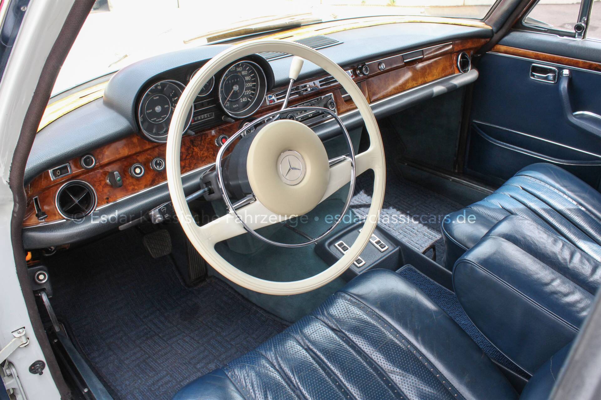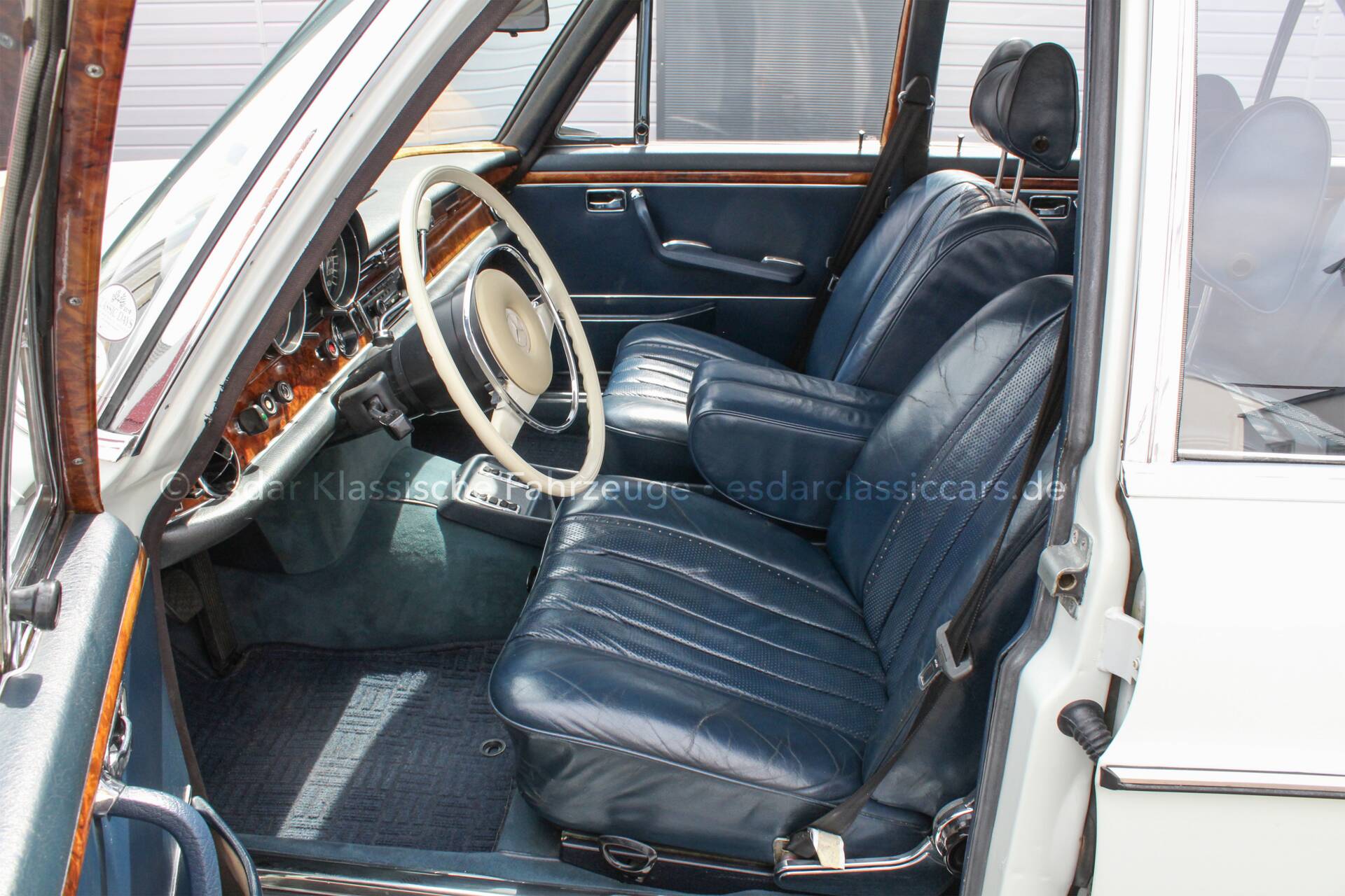 Der Mercedes-Benz 300SEL 3.5, Teil der renommierten W108/W109-Baureihe, wurde in den späten 1960er und frühen 1970er Jahren produziert und verbindet luxuriöse Ausstattung mit beeindruckender Technik und zeitlos elegantem Design. Sein 3,5-Liter-V8-Motor leistet rund 200 PS und sorgt für eine damals außergewöhnliche Beschleunigung und Fahrdynamik. Klare Linien, der markante Kühlergrill mit dem stolzen Mercedes-Benz-Stern sowie edle Materialien im Innenraum – darunter Leder und feines Holz – machen den 300SEL zu einem stilvollen Ausdruck von Komfort und Klasse. Elektrische Fensterheber und die hochentwickelte Luftfederung garantieren ein sanftes, souveränes Fahrgefühl, das bis heute begeistert.