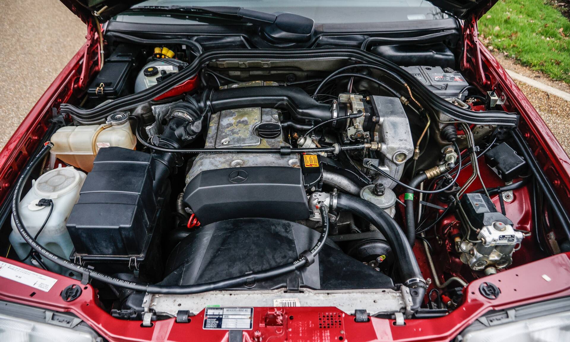 Delivered new on 27th January 1995 this wonderful example has covered a mere 62,293 miles from new. The red coachwork presents very well, and the interior including leather and walnut veneers are in great condition. Previously sold by Edward Hall, Mercedes-Benz Specialists this E220 is a wonderful example which has been well cared for throughout its life. This Mercedes has been treated to much work since 2024 including a new wiring loom, front and rear brake discs and pads, new fuel pump, and the underside steam cleaned and protected, the alloy wheels were also refurbished and powder coated. It has also been treated to a service in February 2025 at 59,922 miles. Included in the history file are bills and invoices relating to the work, MoT test certificates going back to 1998, three keys, the current UK Registration document, a current MoT valid until February 2027 (with no advisories), photos of recent maintenance work, along with its original sales brochure and all owner's handbooks. If you are in the market for an E220 this example should certainly be considered! Consigned by Daniel Godin