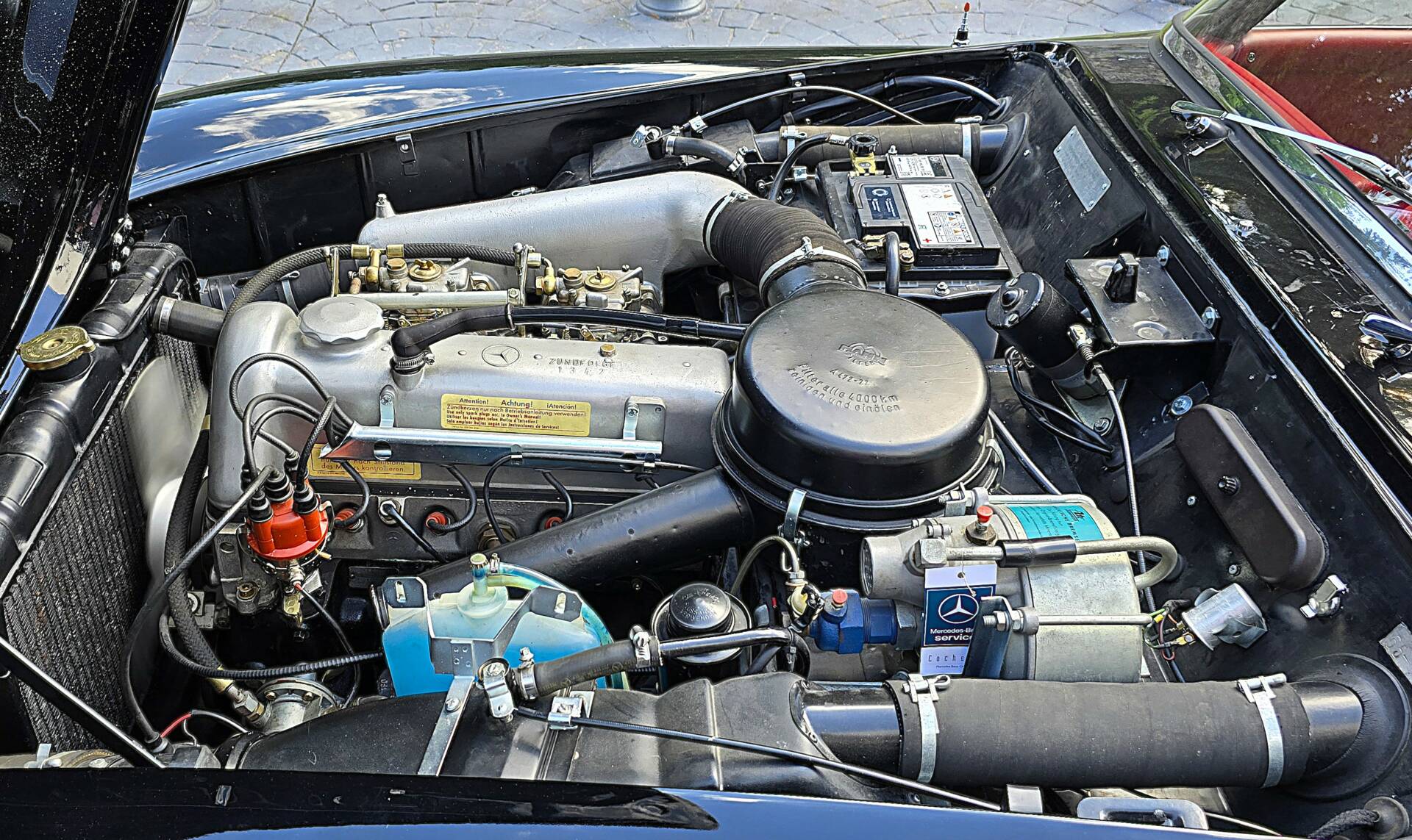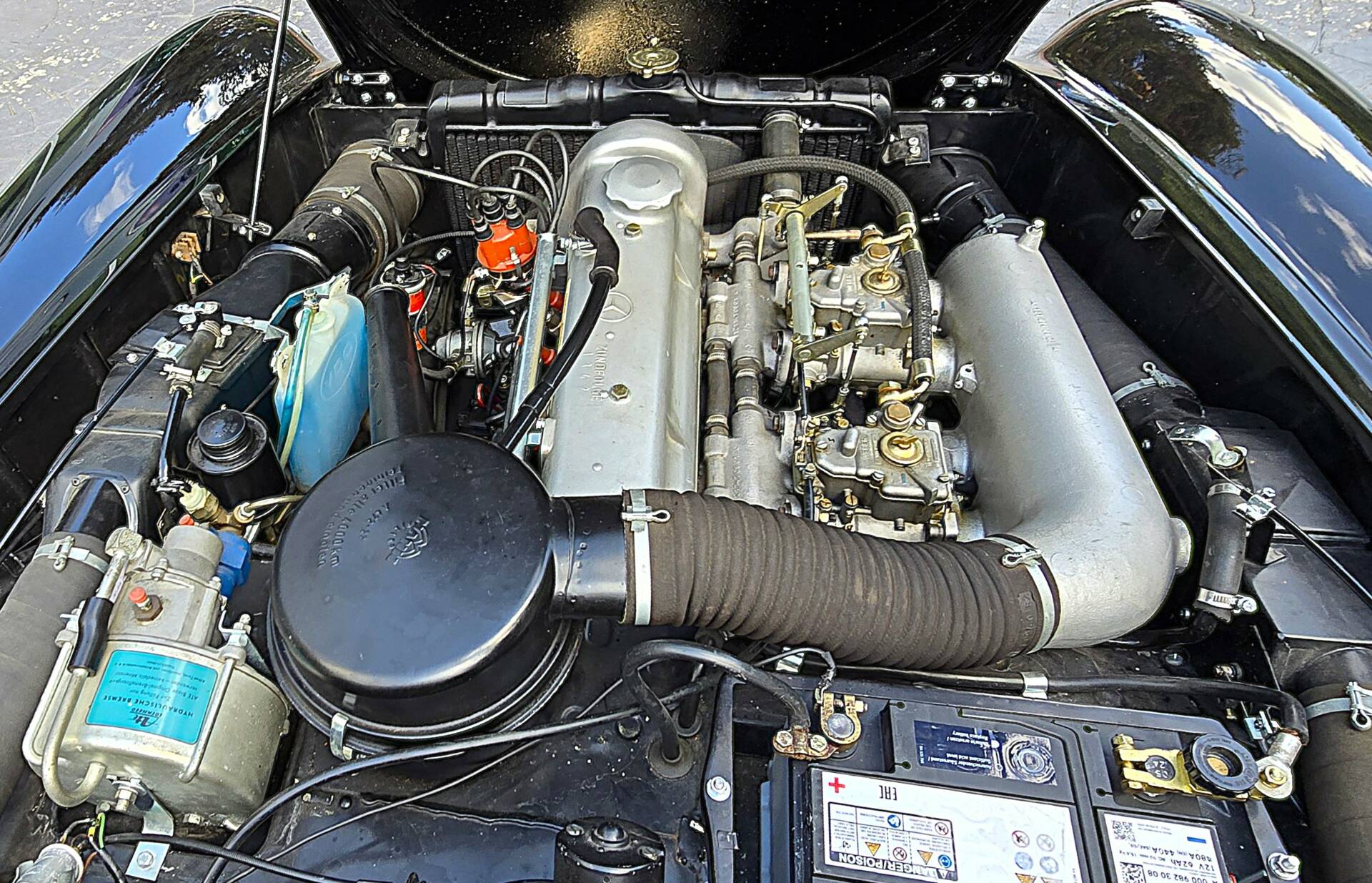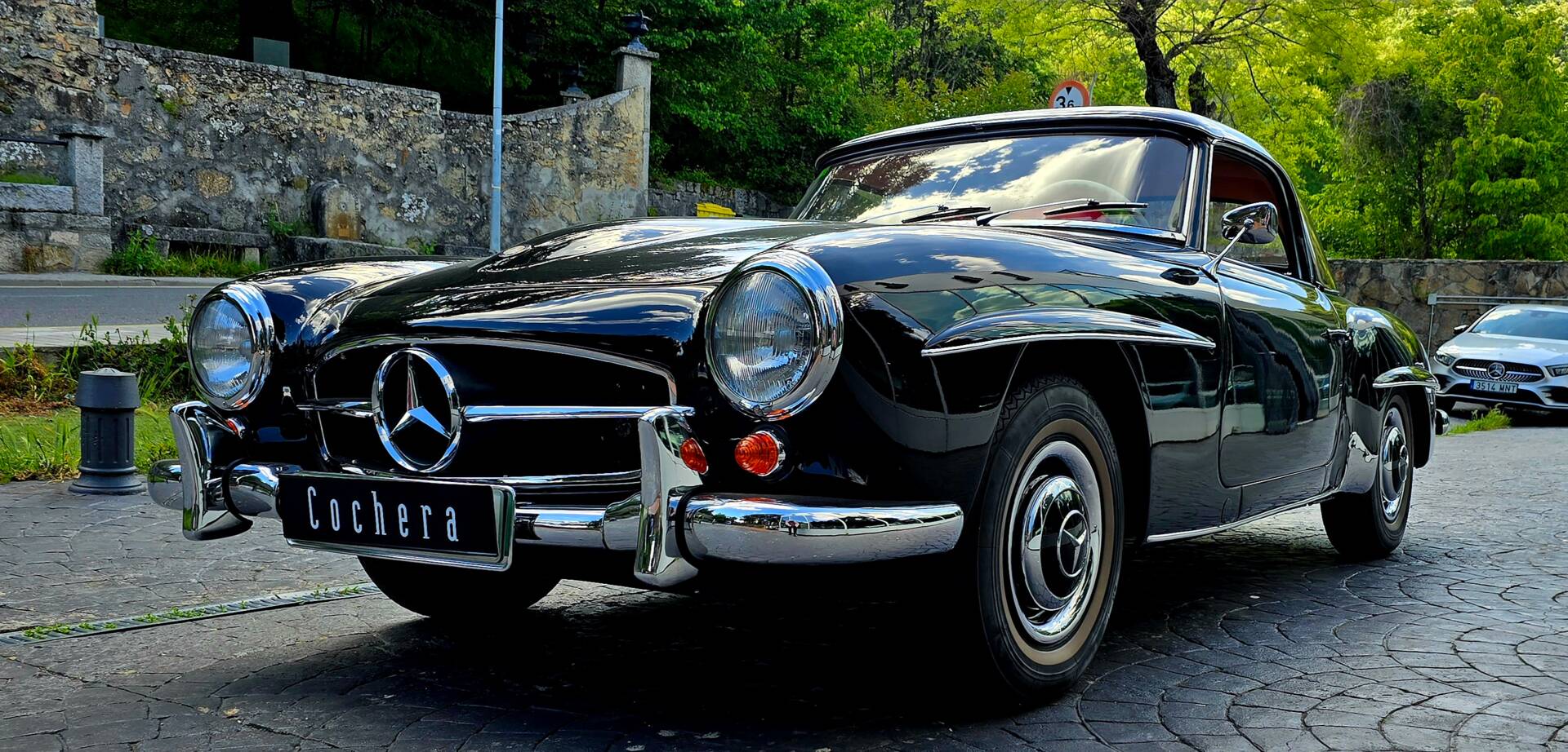 Mercedes-Benz 190SL Roadster 1956 Primera Serie Negro 050G/Cuero Rojo con Asientos deportivos tipo W198 300SL. Hard Top Rojo Burdeos Capota Negra Sólo 3.900 kms desde Restauración Intergral realizada entre 2005-2007 en Cochera y actualizada recientemente. Matricula Provincial GC-XXXX-XX e Histórica. Perfecto estado listo para disfrutar. Matching numbers Motor M121921 de 1895cc 105CV Cambio Manual 4v, 160 kms/h V.max. Extras: Radio Becker, Reloj de Guantera, Tercer Asiento Neumáticos Michelín 185R14 Banda Blanca. Precio 164.900€ Transferido.