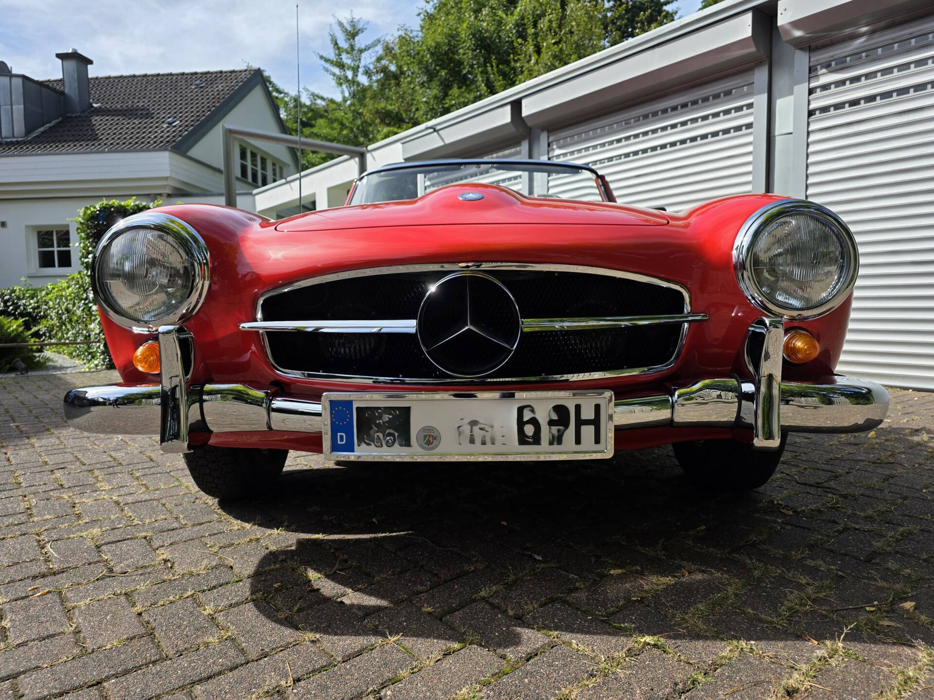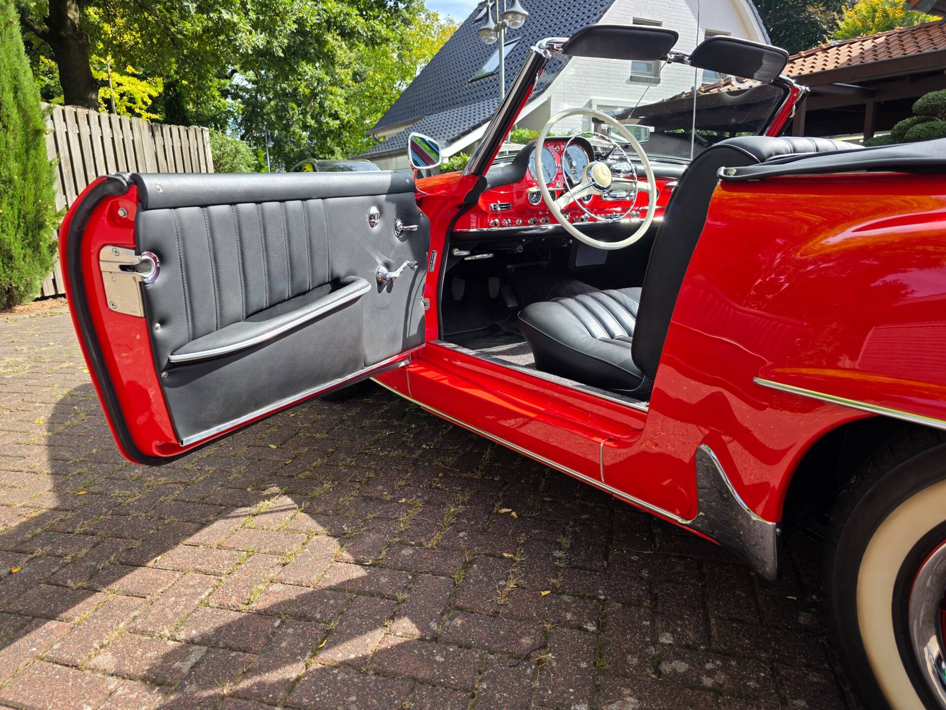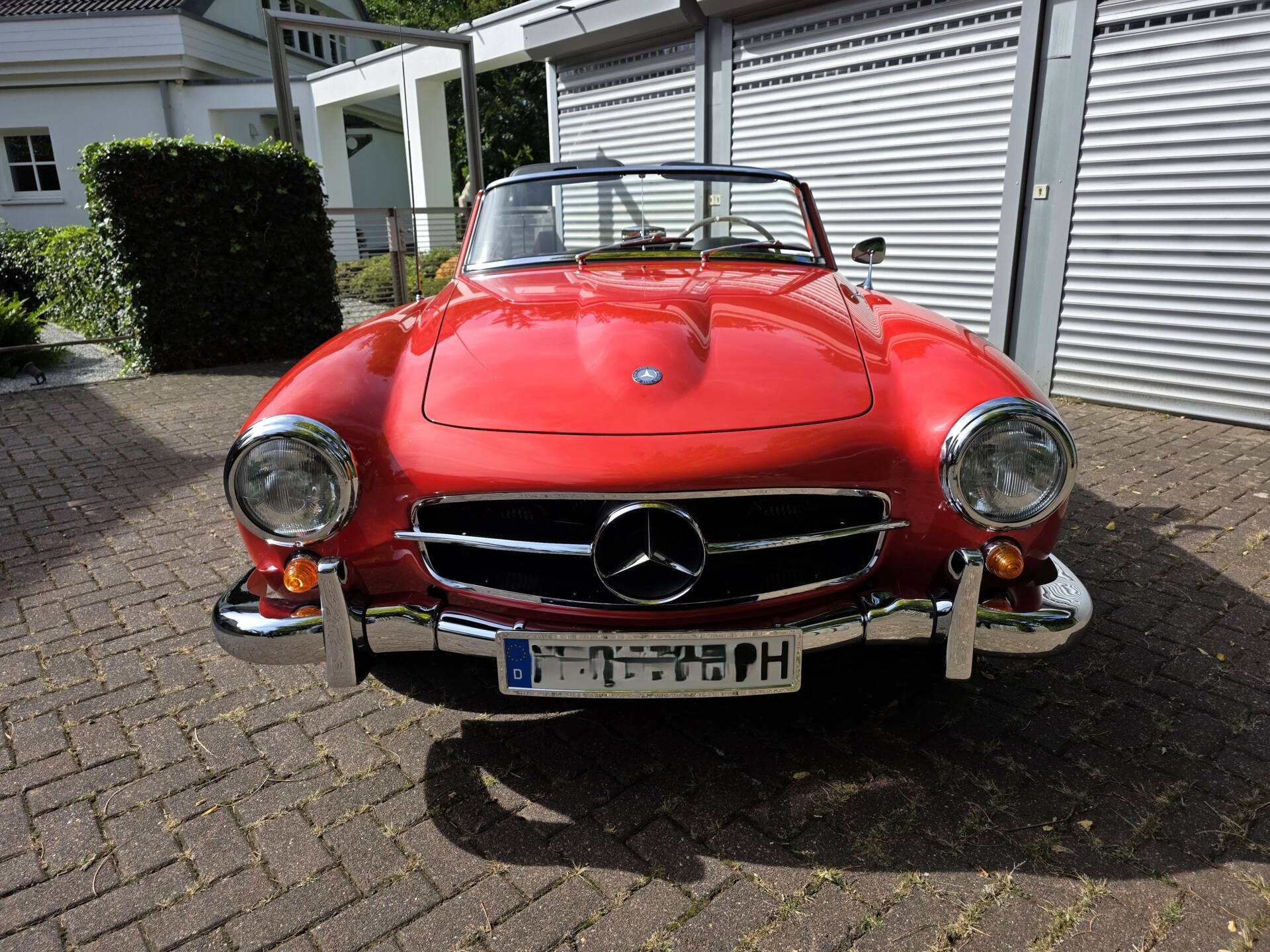 Im Kundenauftrag verkaufen wir diesen perfekt "Nut and Bolt" restaurierten Mercedes 190 SL. Seit der Restauration in 2010 hat dieser SL keinen Regen gesehen und stand stets in einer klimatisierten Garage. Seit der Restauration wurden nur 6.465 Km nur bei schönstem Wetter schonend gefahren. Trotz der geringen Fahrleistung ist er jährlich von einem Speziallisten gewartet worden. Am Fahrzeug findet sich keinerlei Gebrauchsspuren.