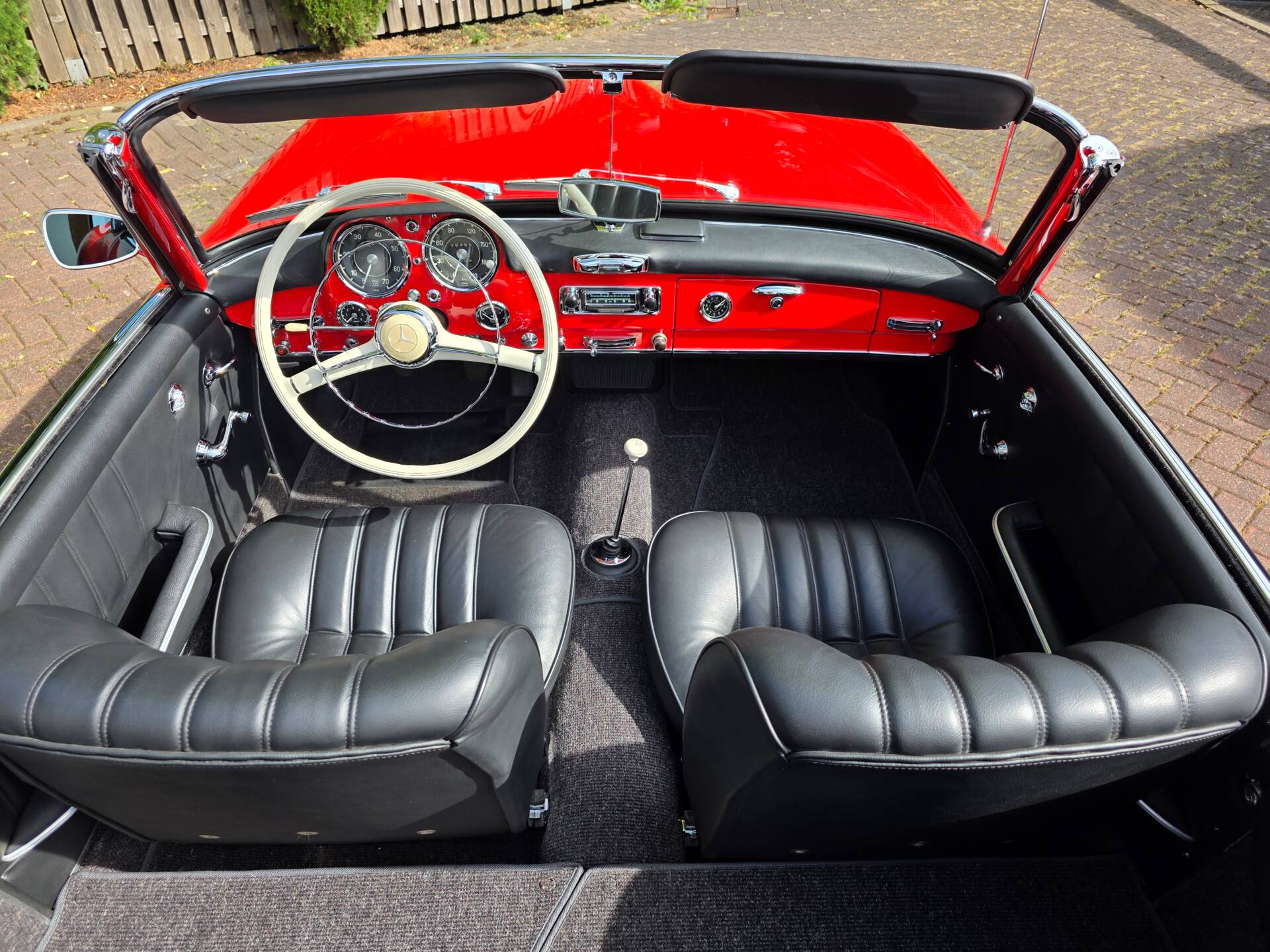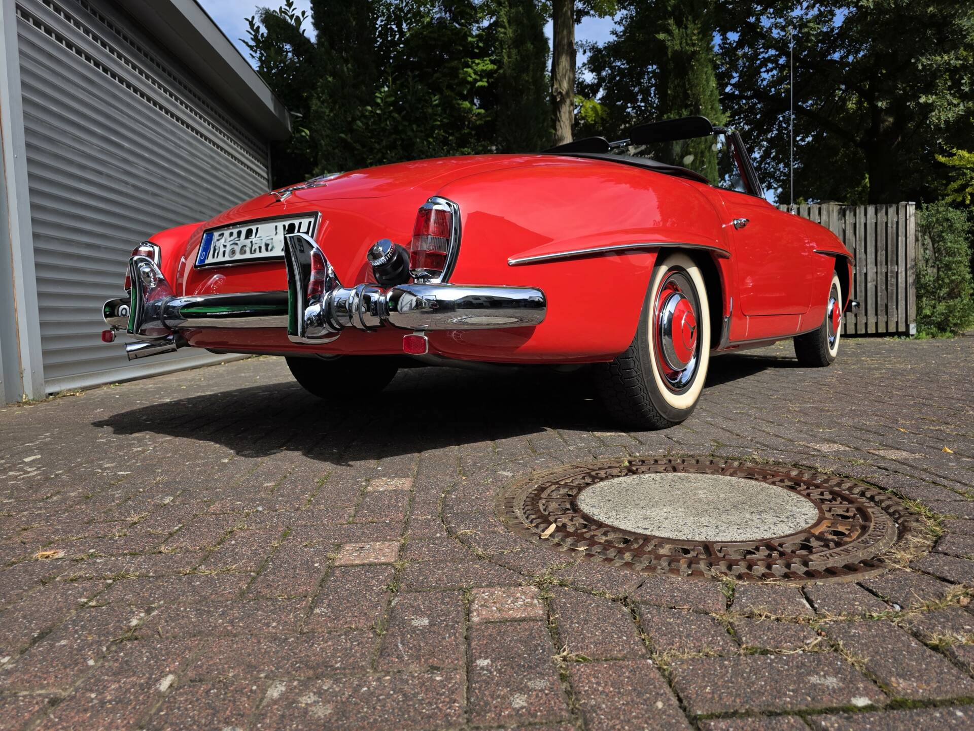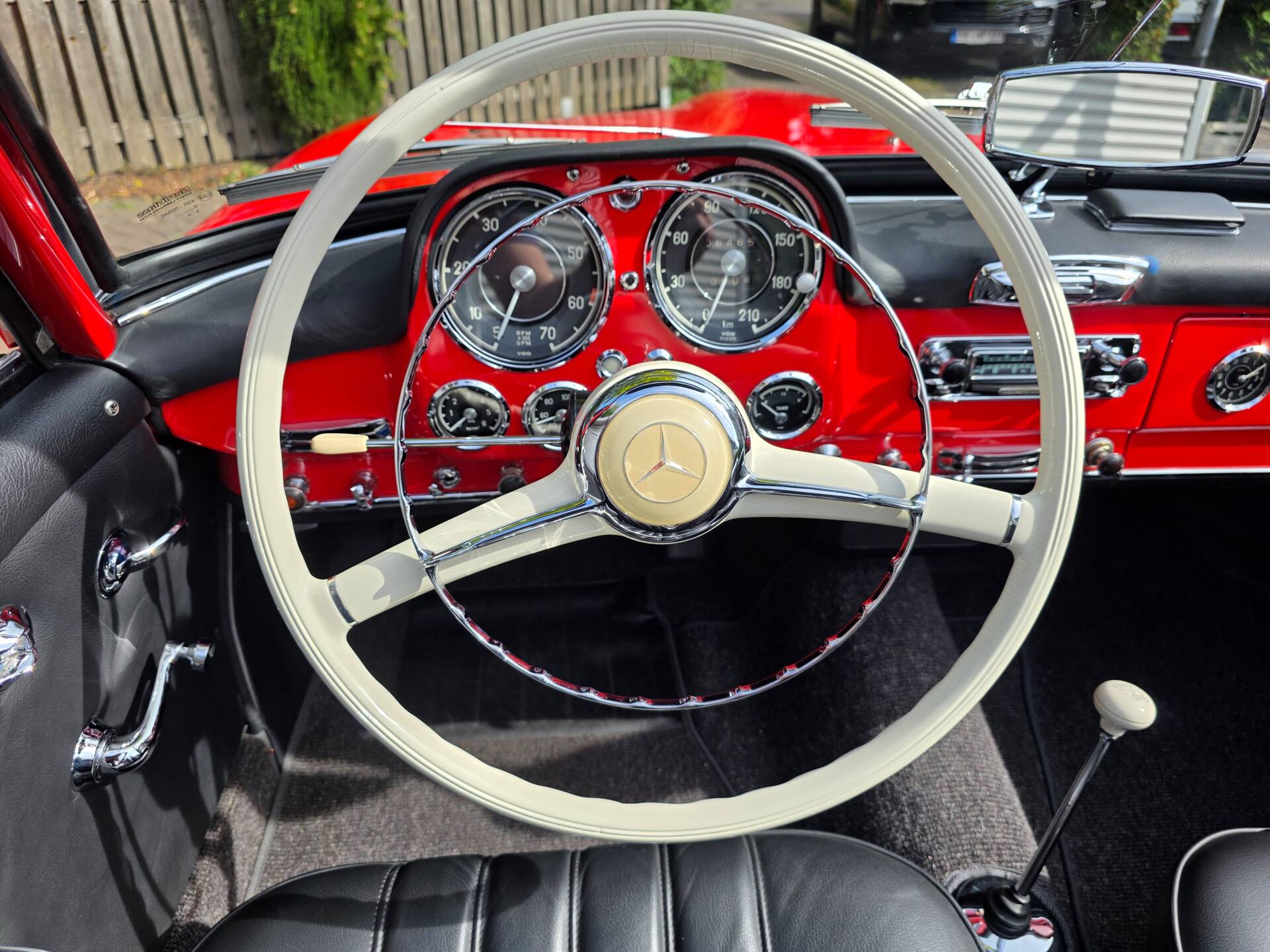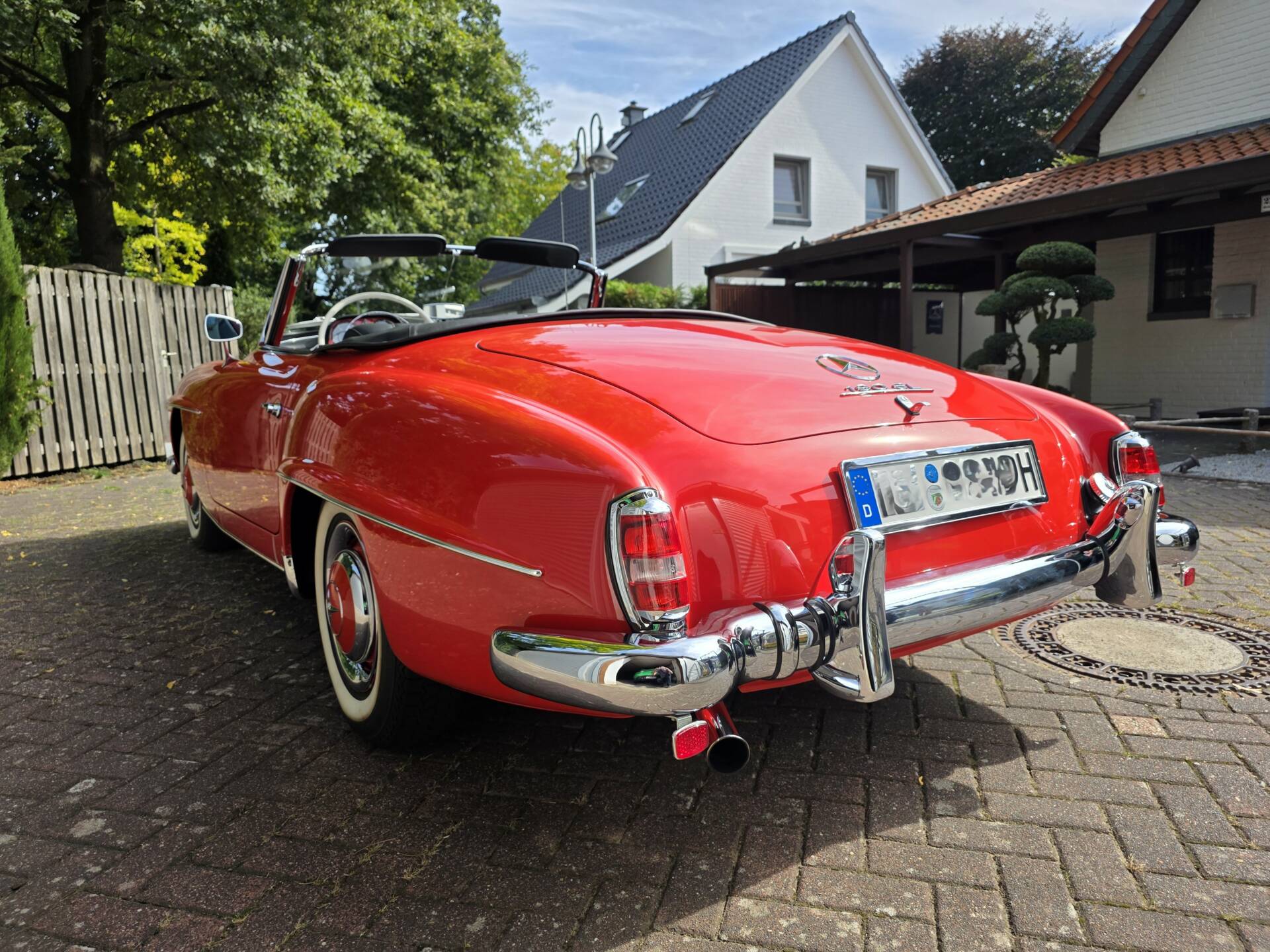 Im Kundenauftrag verkaufen wir diesen perfekt "Nut and Bolt" restaurierten Mercedes 190 SL. Seit der Restauration in 2010 hat dieser SL keinen Regen gesehen und stand stets in einer klimatisierten Garage. Seit der Restauration wurden nur 6.465 Km nur bei schönstem Wetter schonend gefahren. Trotz der geringen Fahrleistung ist er jährlich von einem Speziallisten gewartet worden. Am Fahrzeug findet sich keinerlei Gebrauchsspuren.