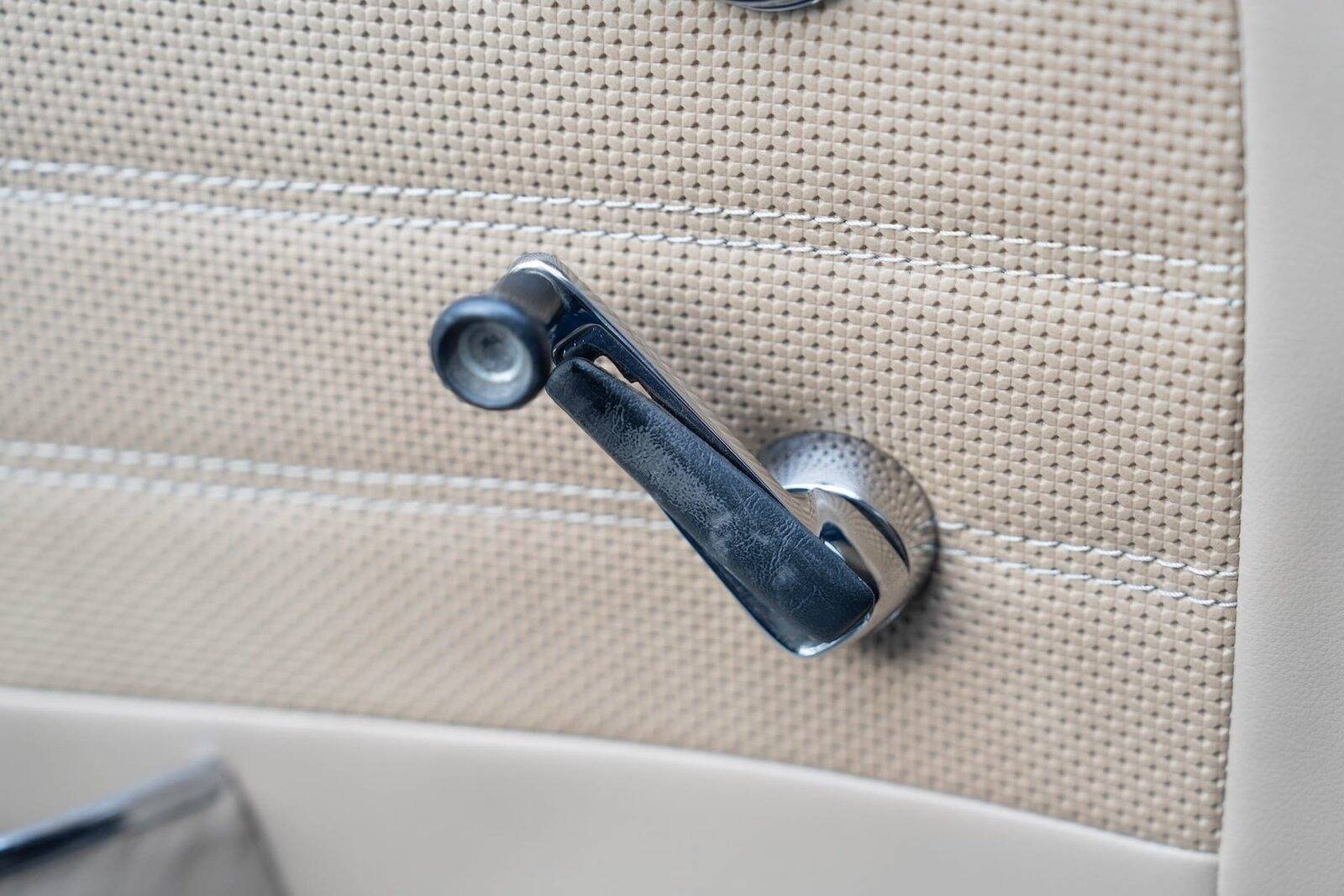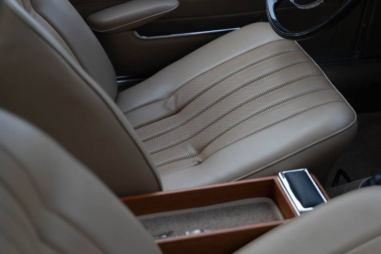 Ook het interieur werd volledig vernieuwd, met een nieuwe set houten afwerkingen, een asbak, een uitschuifbare antenne voor de radio, opnieuw beklede stoelen, tapijten, pedalen en een nieuwe cabriokap.