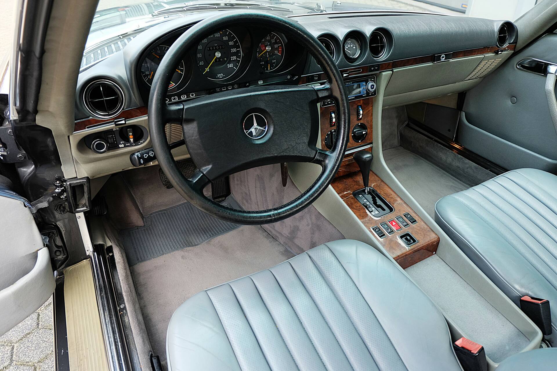 Die SL-Baureihe 107, die 1971 als Nachfolger der sogenannten Pagoden-SL (Baureihe W113) debütierte, begründete mit den Breitband H4-Scheinwerfern und den großen geriffelten Rückleuchten eine neue Designlinie bei Mercedes-Benz. Eine leichte Keilform deutete auf eine verbesserte Aerodynamik hin. Verantwortlicher Designer dieser Serie war erneut Friedrich Geiger, der bereits für die zeitlosen Schöpfungen des 300 SL (einschließlich Roadster) und des vom W111 abgeleiteten Coupés verantwortlich zeichnete. Er wurde bis 1988 gebaut und erhielt im Laufe der Zeit diverse Verbesserungen und unterschiedliche Motoren. Er stellt heute das Bindeglied zwischen dem W113 (Pagode) und dem R129 dar. Ein Sl der Baureihe R107 ist alltagstauglich, zuverlässig, sicher und auch praktisch. Daher auch sein Erfolg. Mit Hardtop ist er in der kalten Jahreszeit ein vollwertiges Coupe, mit Stoffverdeck im Sommer ein reinrassiger Roadster mit Frischluftvergnügen.