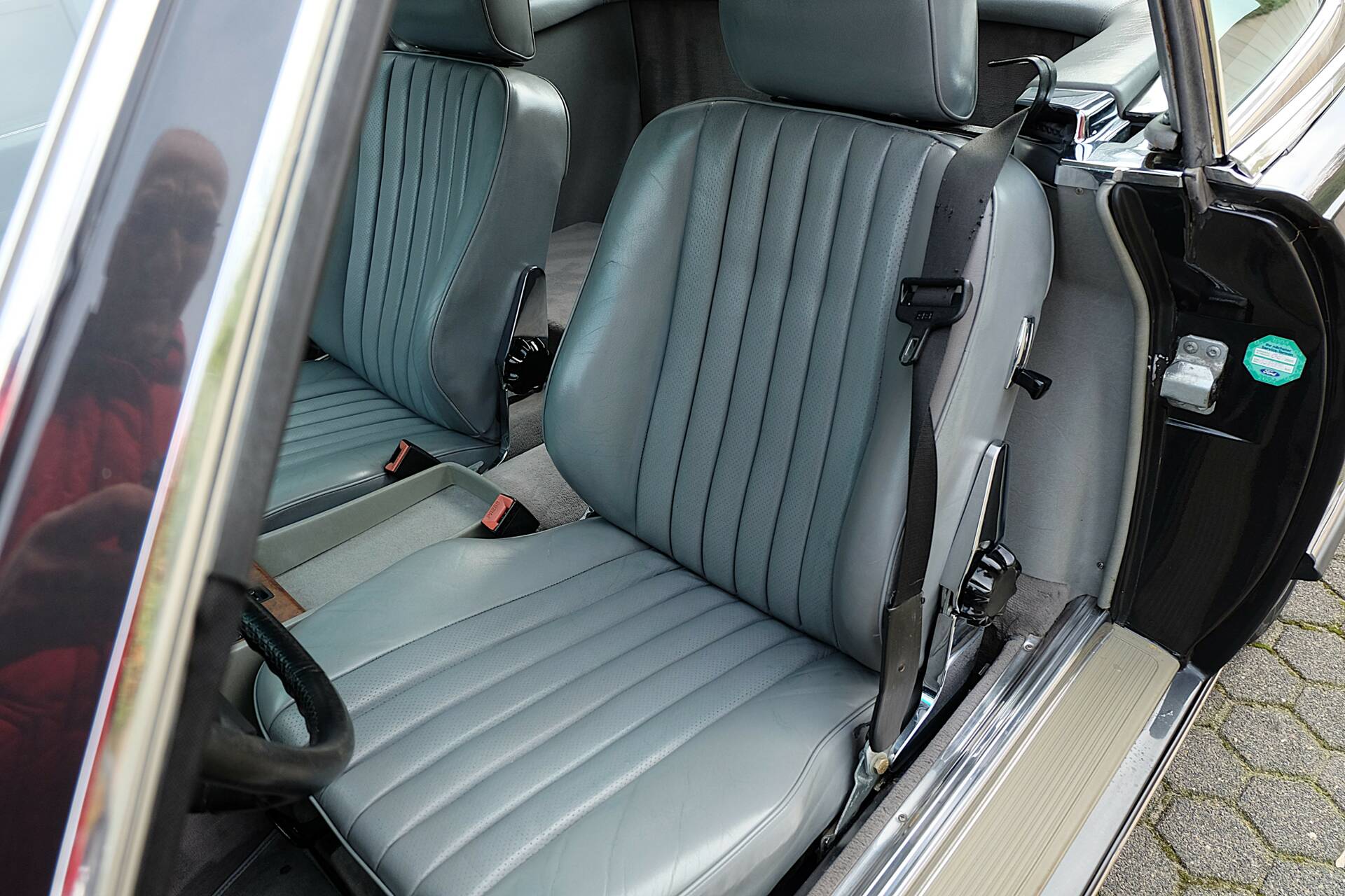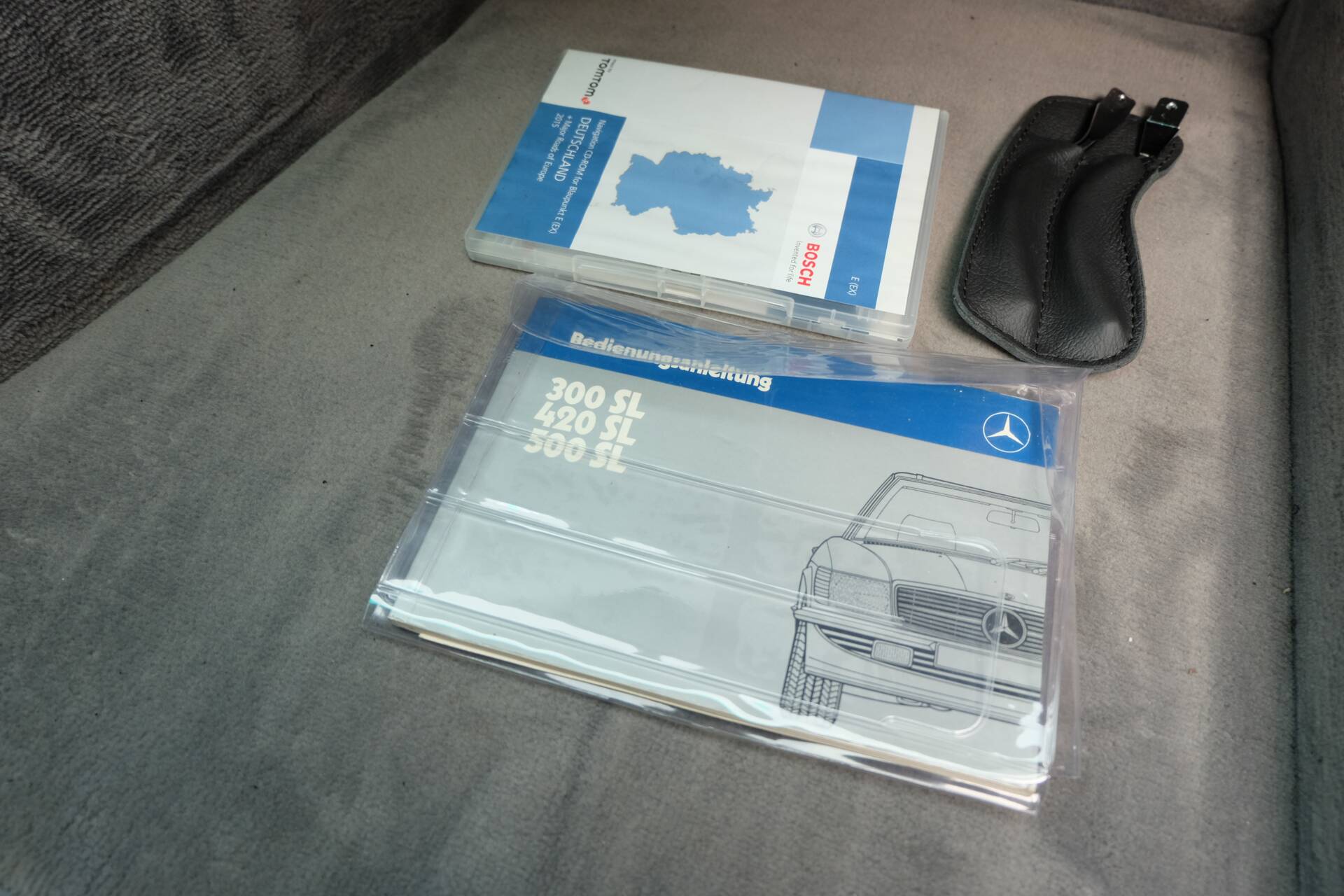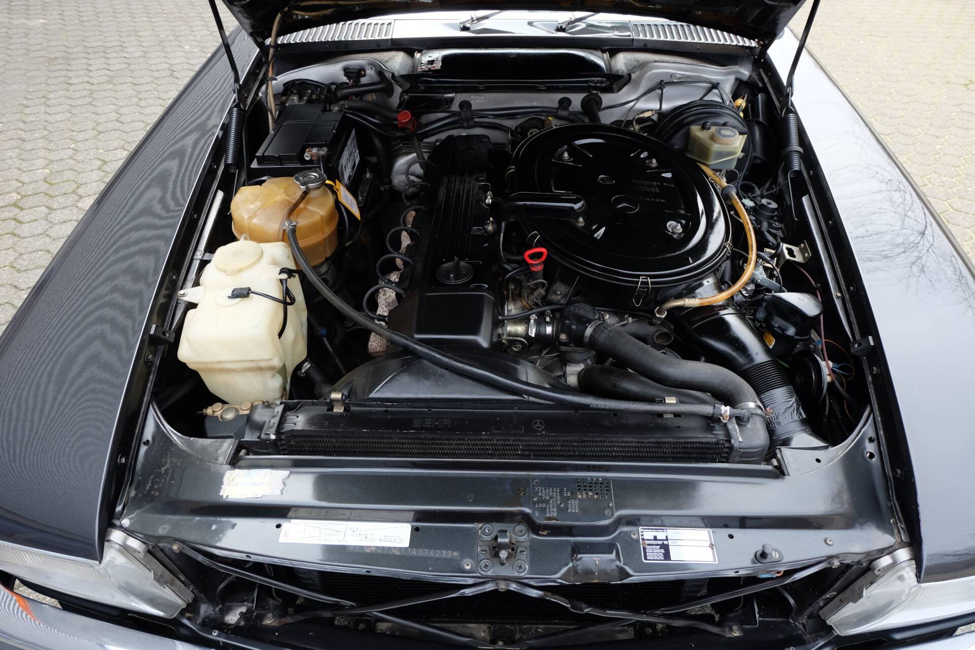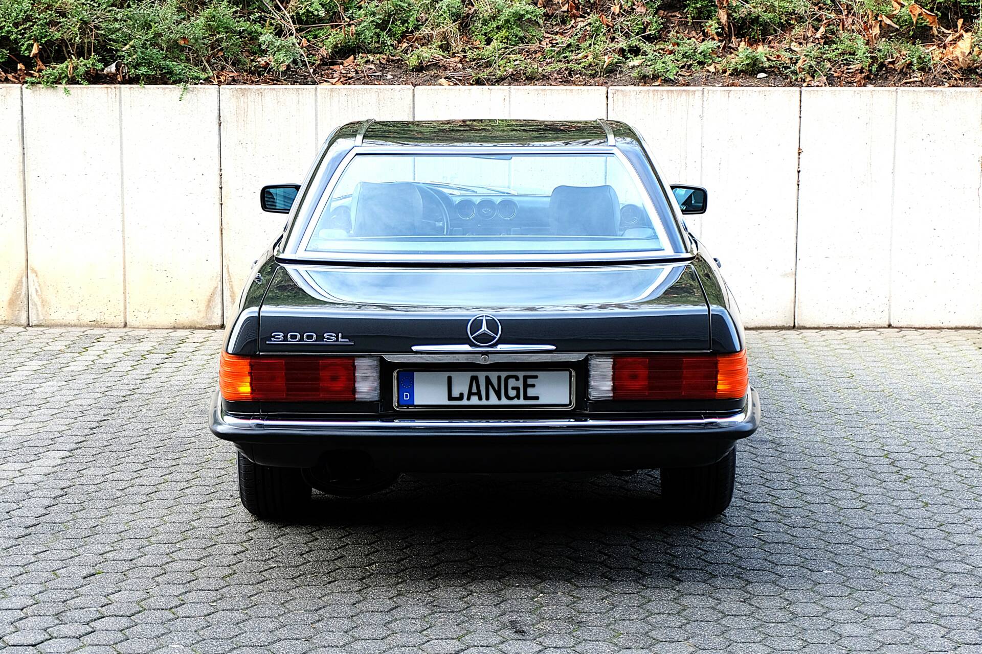 Gerade eingetroffen. Ein schöner Mercedes R107 mit einem 3,0 l Reihensechszylindermotor und 180 PS ( Abgasbereinigt ). Der Wage ist ein deutsches Farzeug und ist sehr gut erhalten. Der 300 SL stellt die letzte Evolutionsstufe der Baureihe 107 dar und hatte alle Modellpflegemaßnahmen erfahren. Er hat einen seidenweich laufenden, kräftigen Motor und ein sicheres und komfortables Fahrwerk. Er ist rost- und unfallfrei. Wir werden vor Auslieferung noch einen großen Kundendienst machen . Er hat schon neue Reifen und eine neue Batterie bekommen. So sollte er seinem neuen Besitzer wieder viel Freude bereiten. Die klassische Farbkombinatio mit der Lackierung in 199 Blauschwarzmetallic und dem grauen Leder bringt die schönen Linien der Karosse mit dem sehr gut erhaltenem Chrom gut zur Geltung. Ein neuwertiges dunkelrotes Verdeck rundet den guten Gesamteindruck ab.