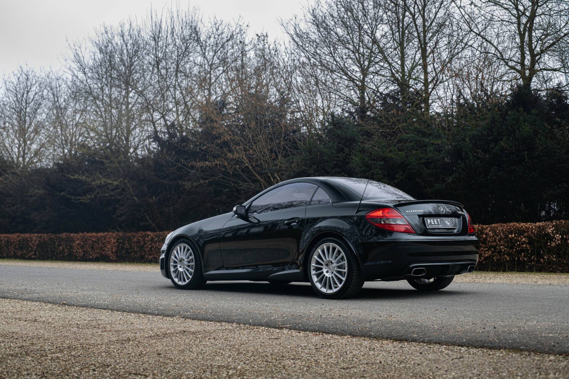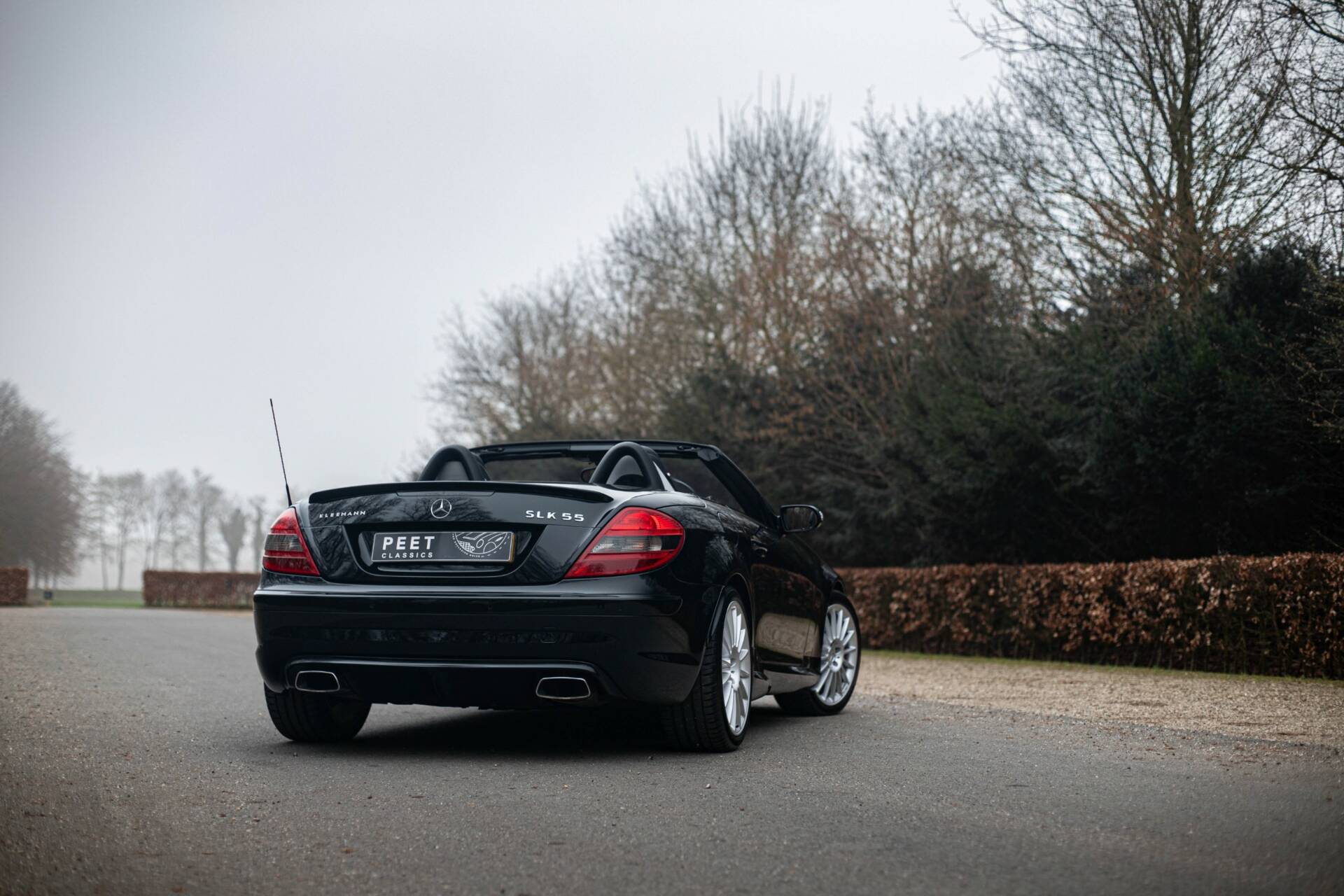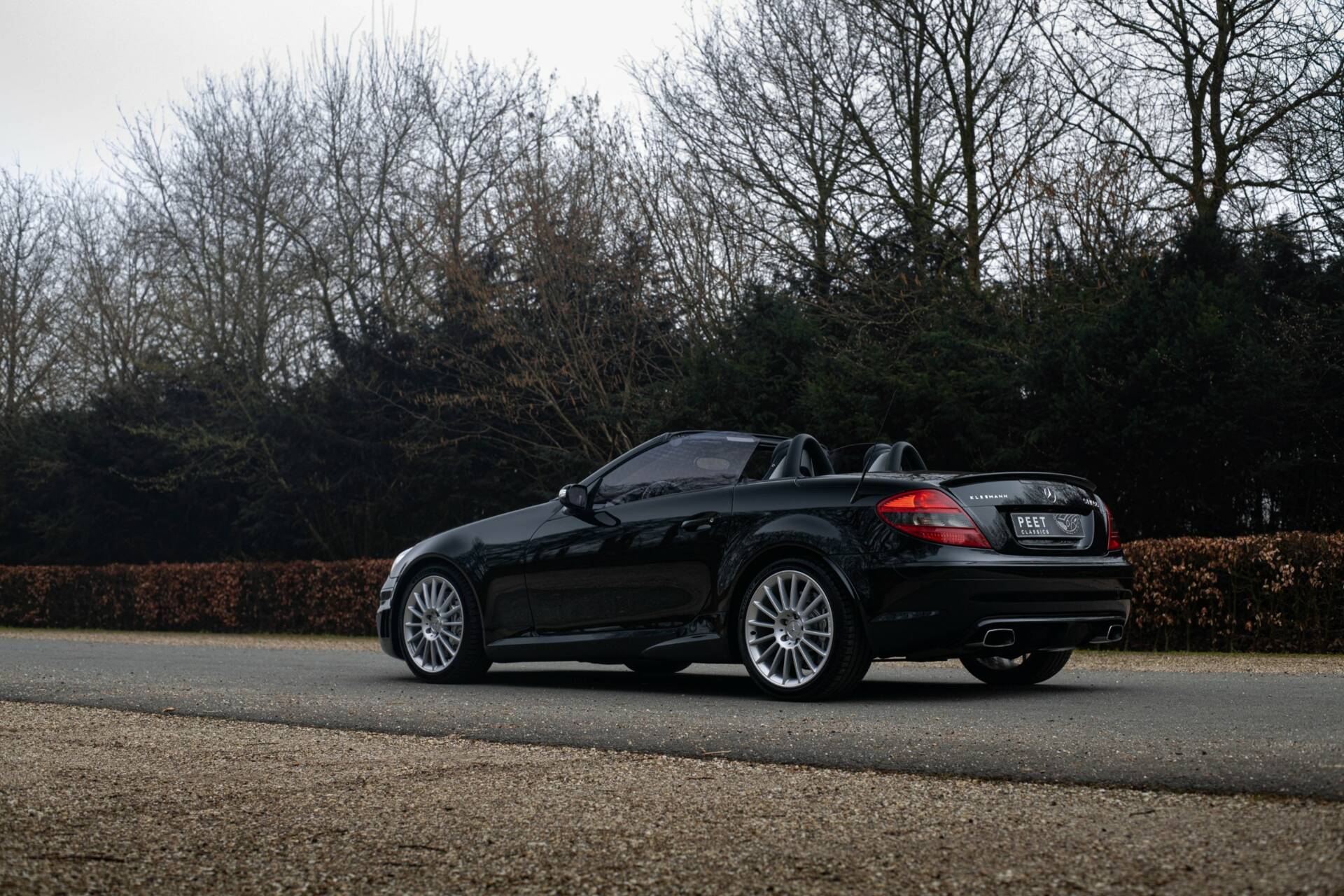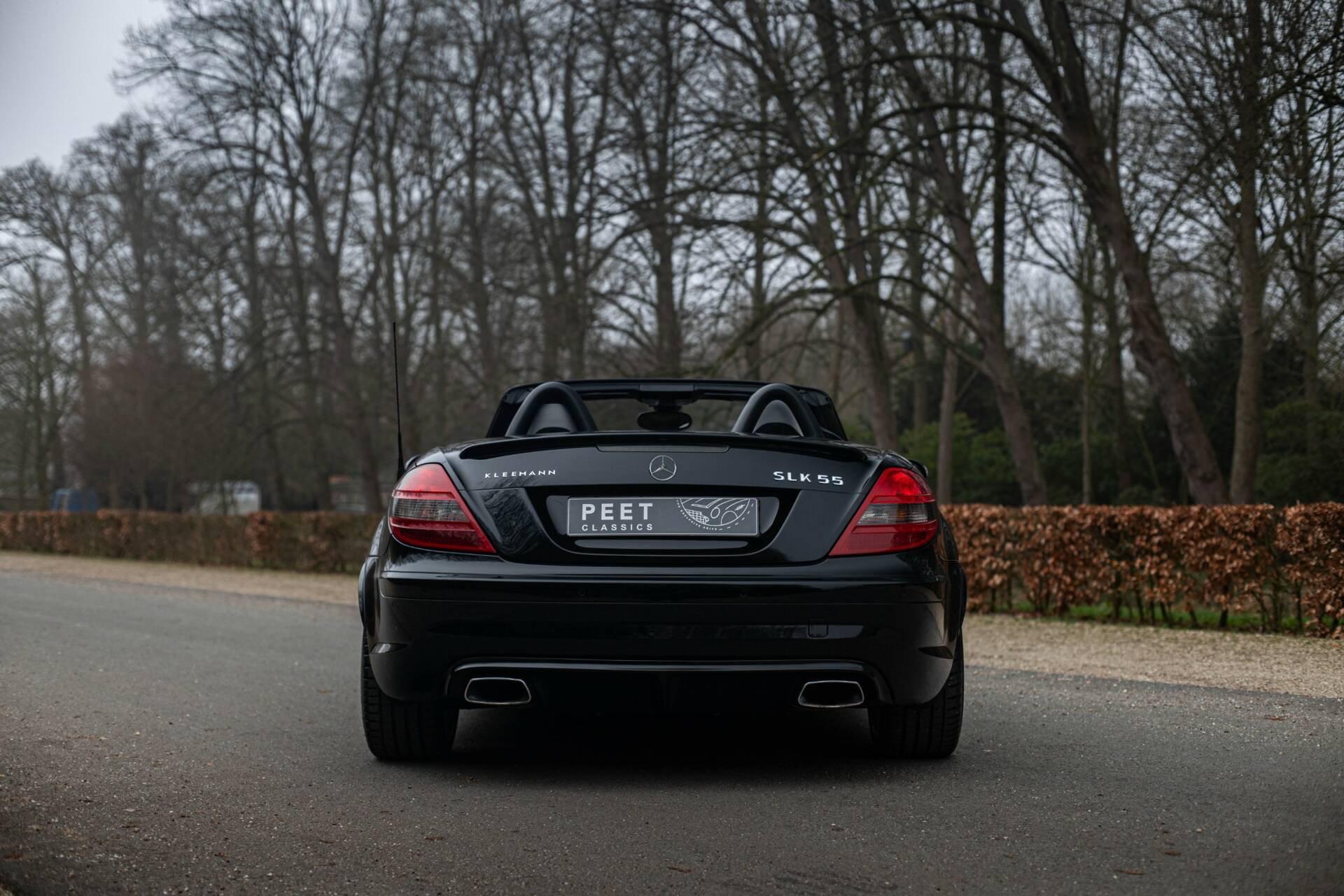 Een kenner zou het kunnen opvallen dat de vier uitlaateinden zoals standaard geleverd voor de 55 AMG, hier vervangen zijn voor rechthoekige uitlaatpijpen, en dat er op de achterklep het woord ‘Kleemann’ geschreven staat. Precies dit laatste onderscheid deze SLK 55 AMG van alle andere te koop staande exemplaren. Lees snel verder waarom…