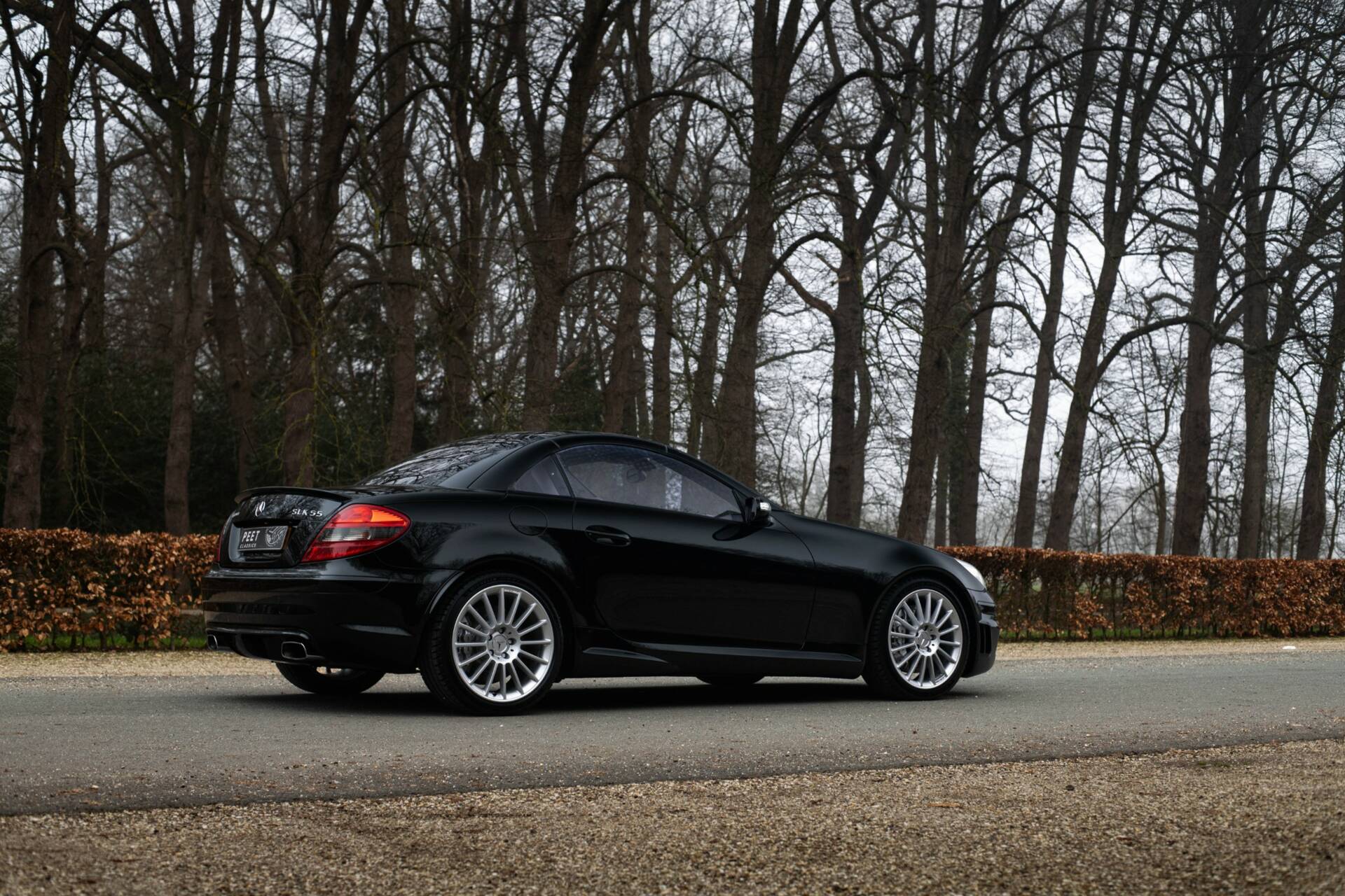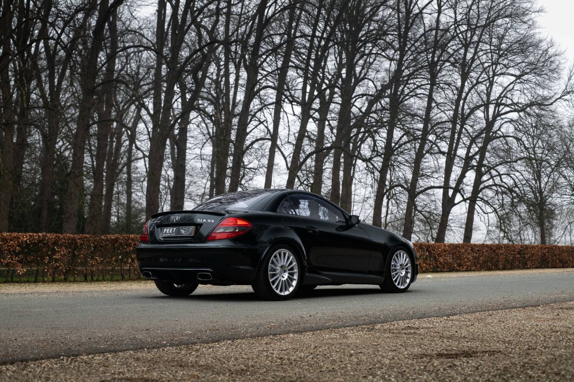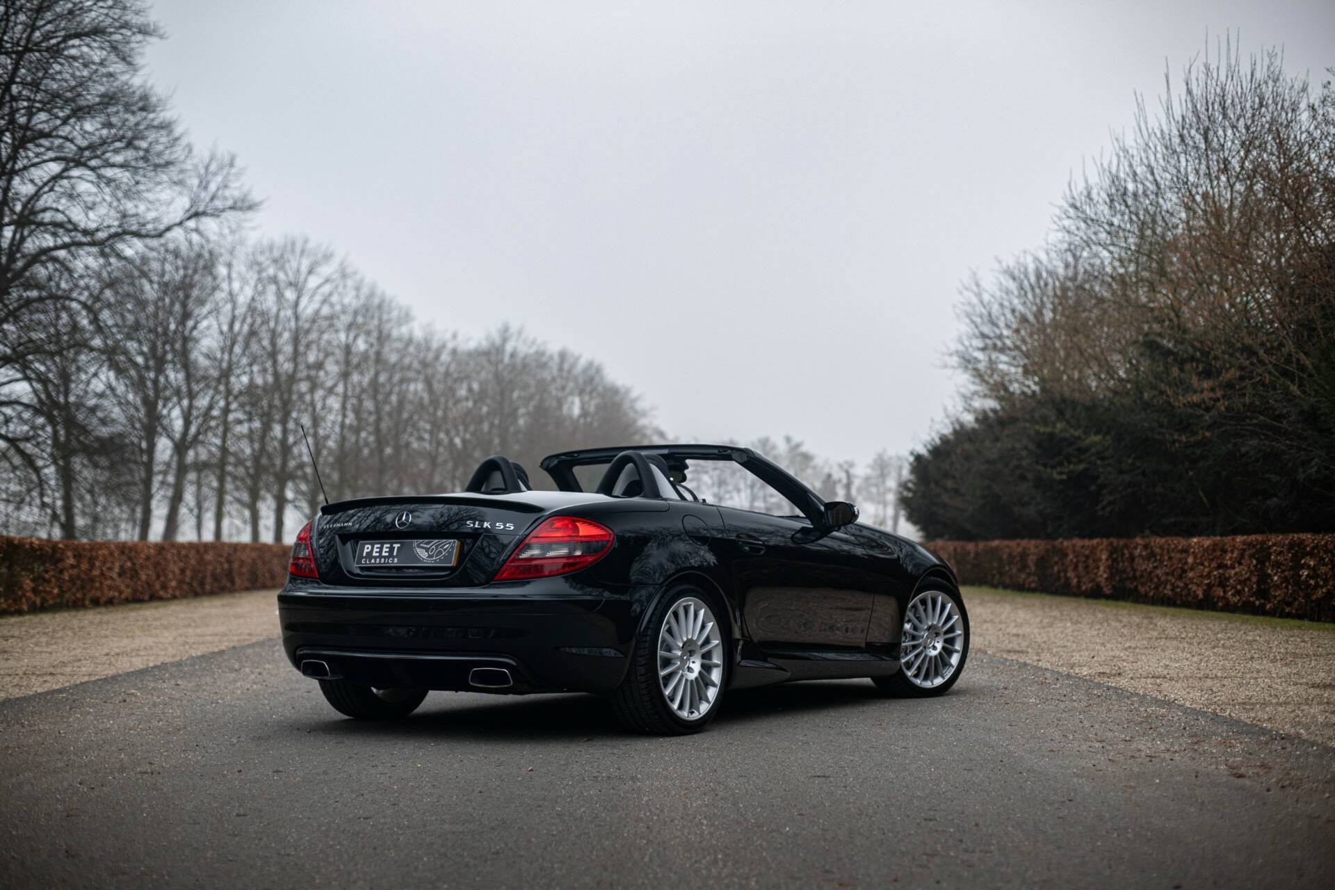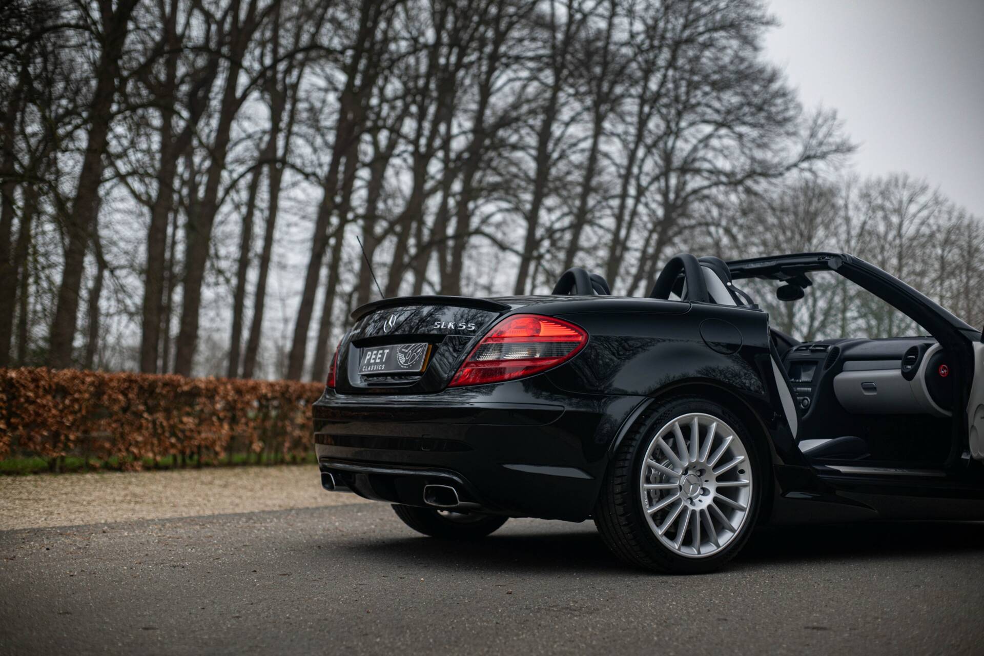 Een kenner zou het kunnen opvallen dat de vier uitlaateinden zoals standaard geleverd voor de 55 AMG, hier vervangen zijn voor rechthoekige uitlaatpijpen, en dat er op de achterklep het woord ‘Kleemann’ geschreven staat. Precies dit laatste onderscheid deze SLK 55 AMG van alle andere te koop staande exemplaren. Lees snel verder waarom…