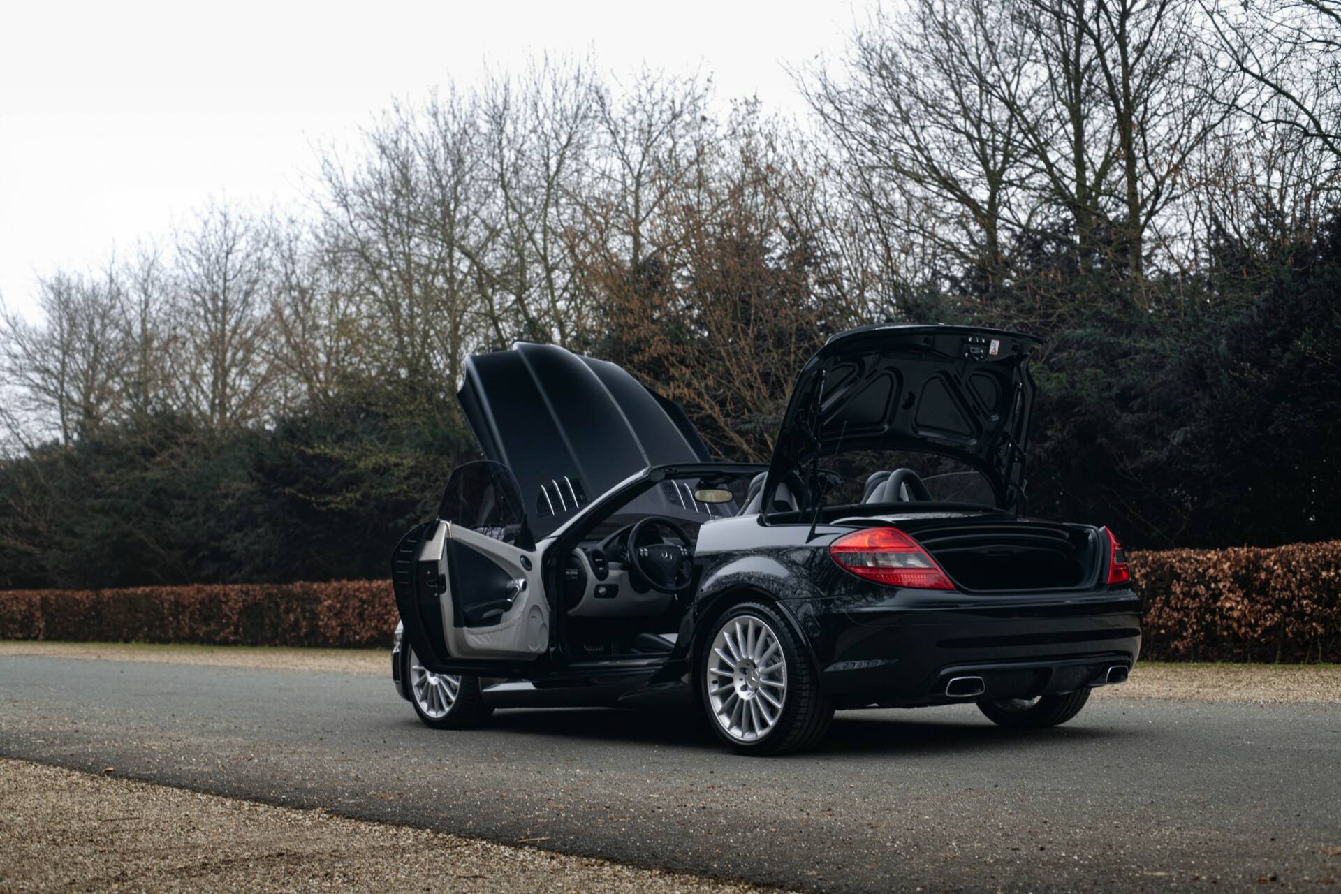 This seemingly completely original-looking SLK 55 AMG was delivered new in June 2007, finished in a beautiful deep black metallic, offset by a two-tone light grey/black leather interior. With just over 112,000 kilometres on the clock, the bodywork looks like new, with beautifully even paintwork, correct seams, matching alloy wheels and a leather interior that looks and feels like it did at the time of delivery.