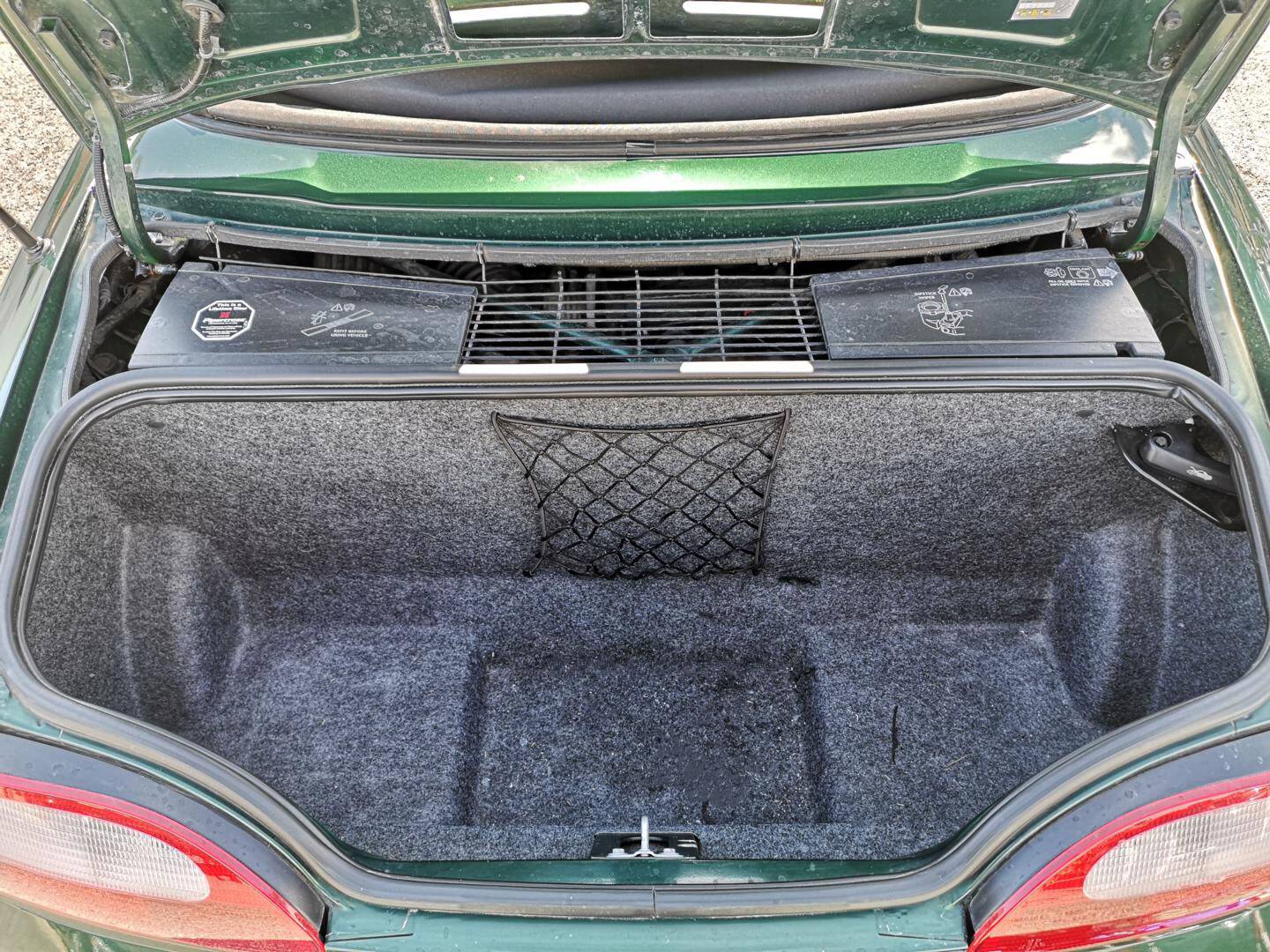 Con: Motore a 4 cilindri, cambio manuale a 5 rapporti, trazione posteriore, impianto stereo, Antifurto, climatizzatore, servosterzo, vernice metallizzata, Capote nera impermeabilizzata con finestrino posteriore, cerchi in lega da 15” + ruota di scorta.