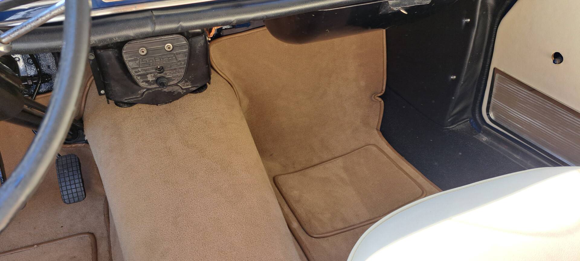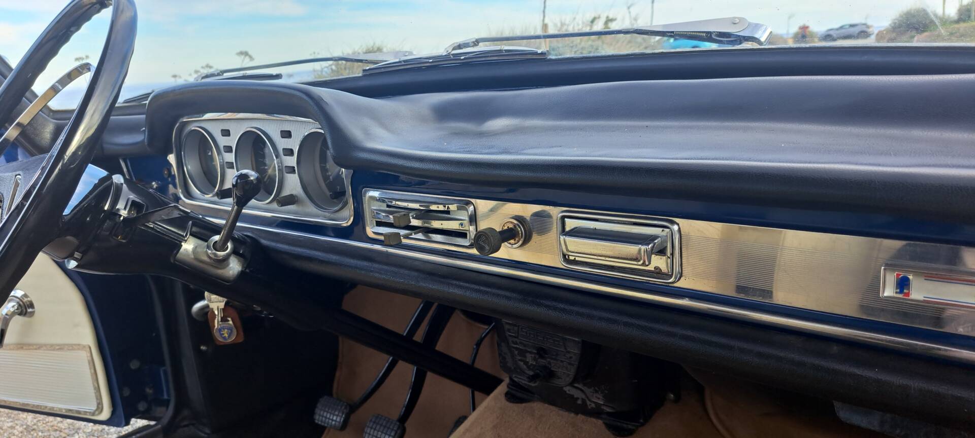 Le pommeau de vitesse bakélite présente une légère patine d’usure.