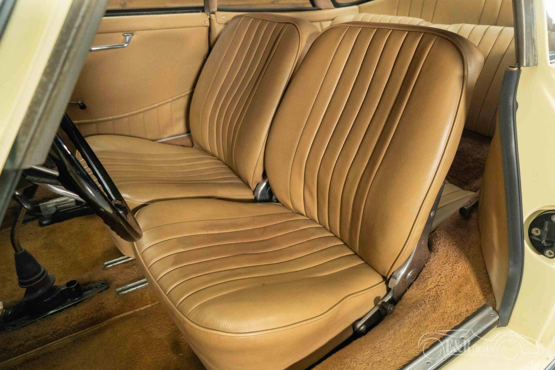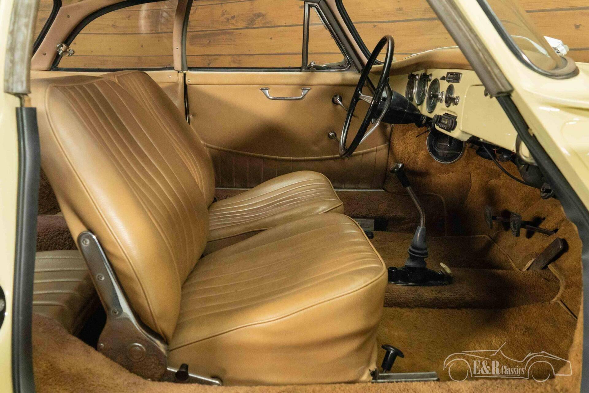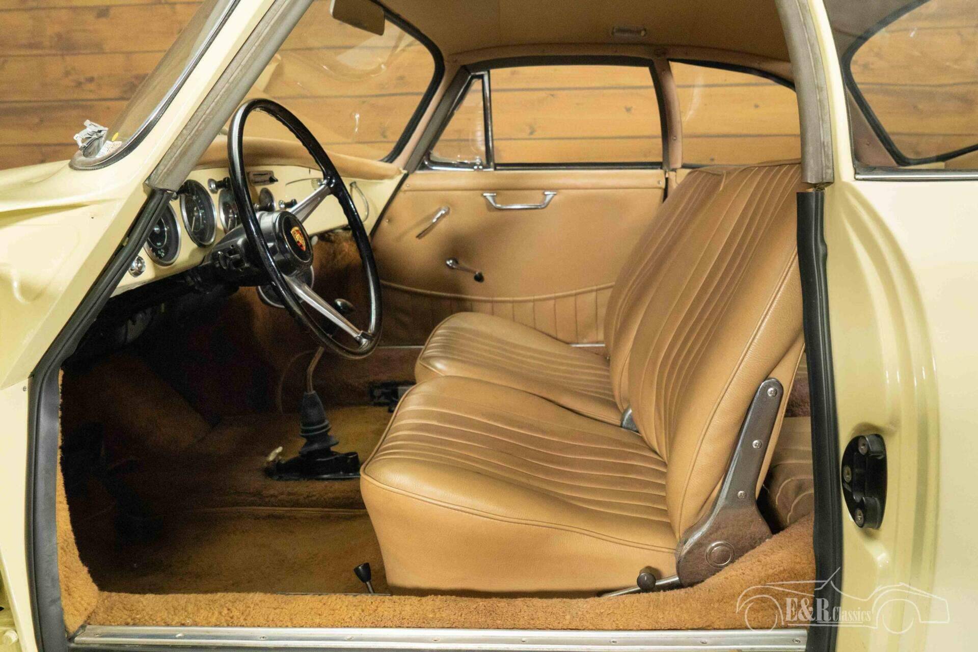 This particular example was restored in the past and presents itself today in a well-maintained and harmonious condition. The presence of a period-correct 1600cc 4-cylinder boxer engine underscores the car's authentic character. The beige paintwork accentuates the flowing lines of the bodywork, while the chrome details lend the whole a restrained elegance. The interior, finished in brown leather, exudes the same timeless class and forms a fitting whole with the exterior.