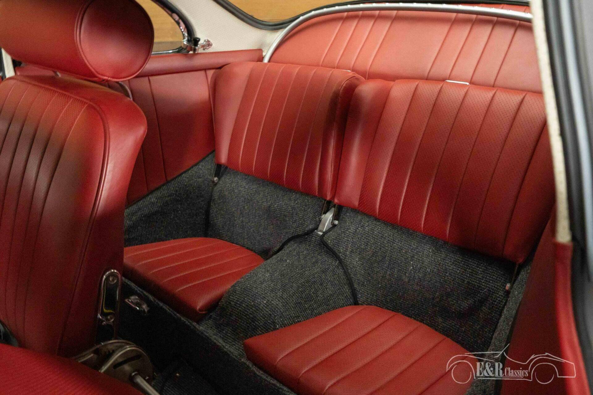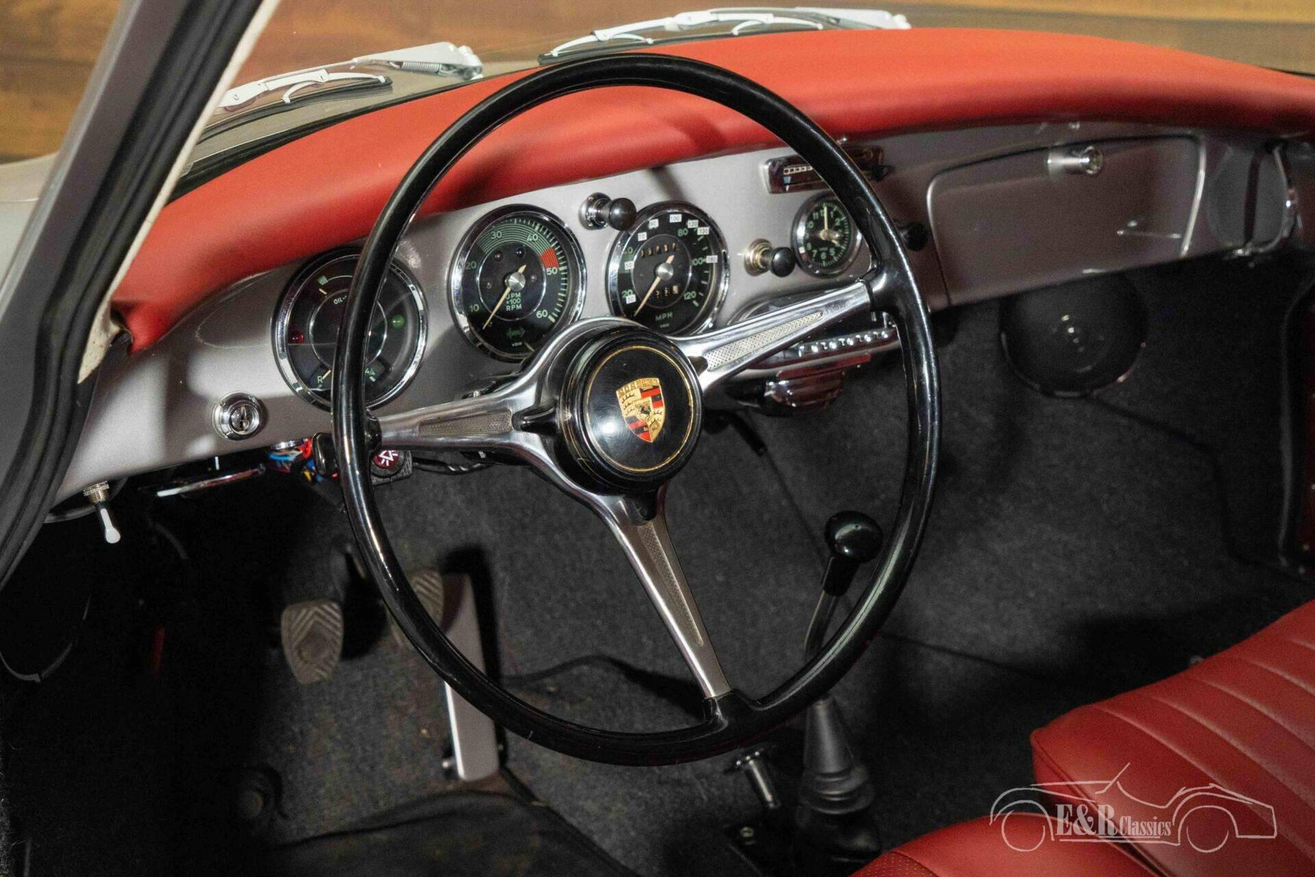 The exterior is finished in stylish silver-grey metallic paintwork that perfectly highlights the timeless lines of the 356. The classic chrome details, original wheels, and subtle finish create an elegant and authentic appearance. The interior provides a beautiful contrast with its burgundy red leather upholstery, which harmoniously combines luxury and sportiness. The dashboard with its characteristic gauges, the slim steering wheel, and the minimalist finish immediately transport you back to the sixties, while the high-quality restoration ensures a fresh and well-maintained impression. Everything about this Porsche exudes class, originality, and driving pleasure.