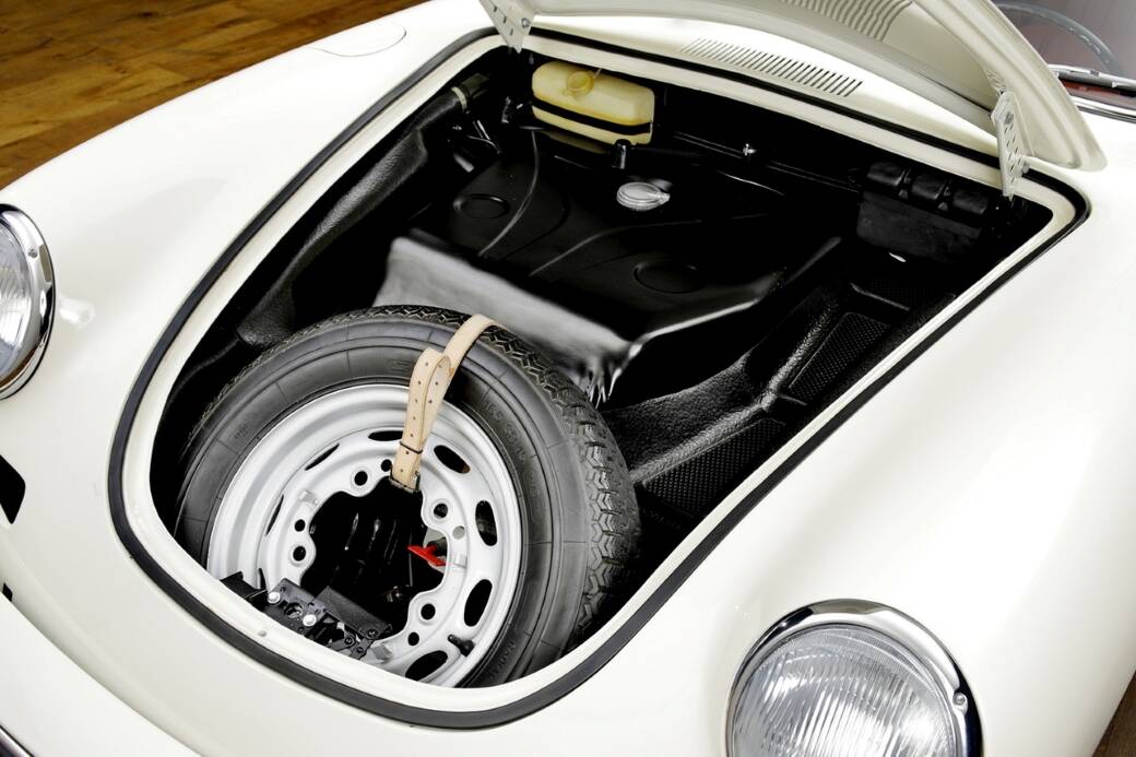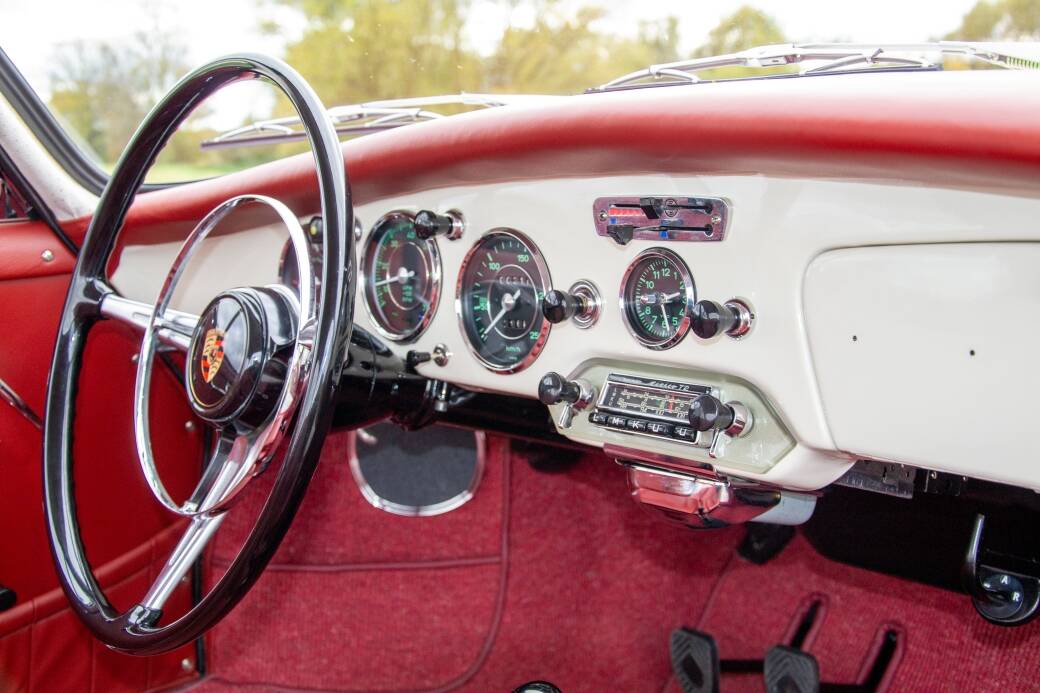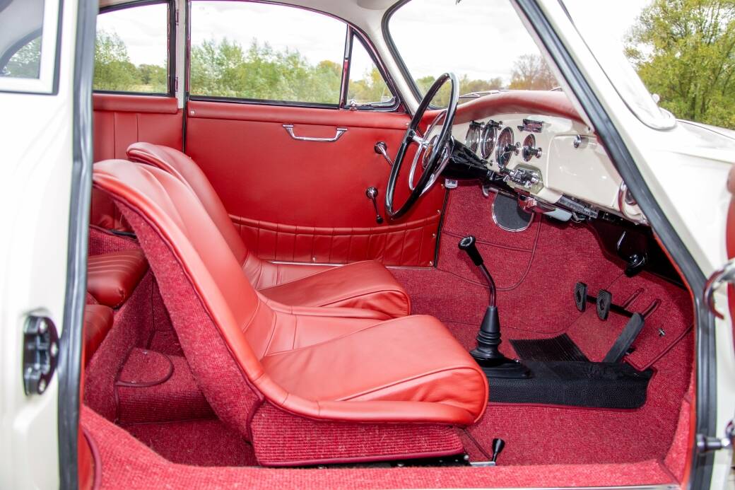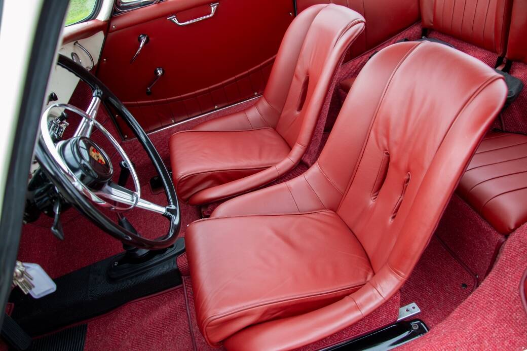 Der Porsche ist außen in Elfenbein und innen in rot wie zur Auslieferung.