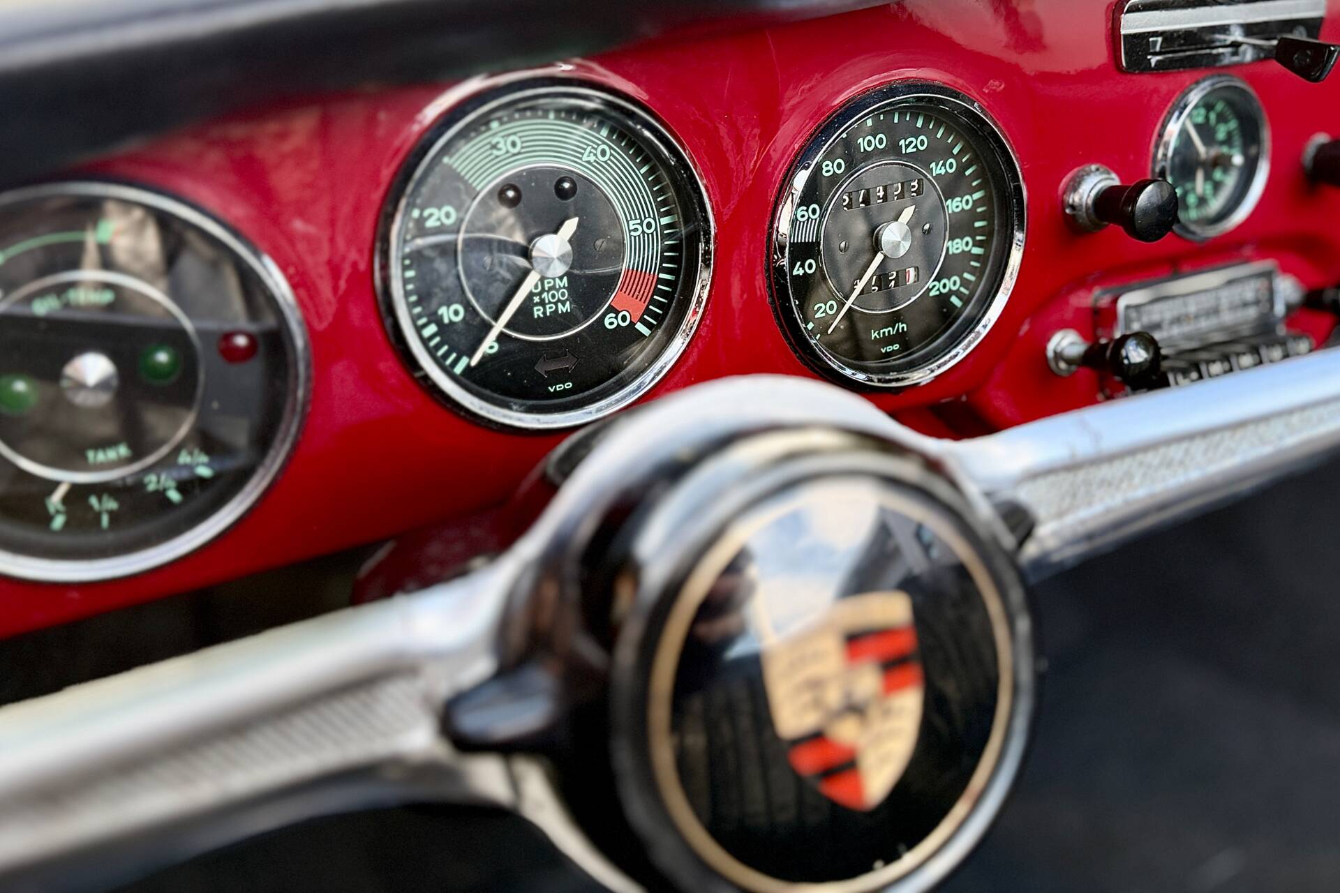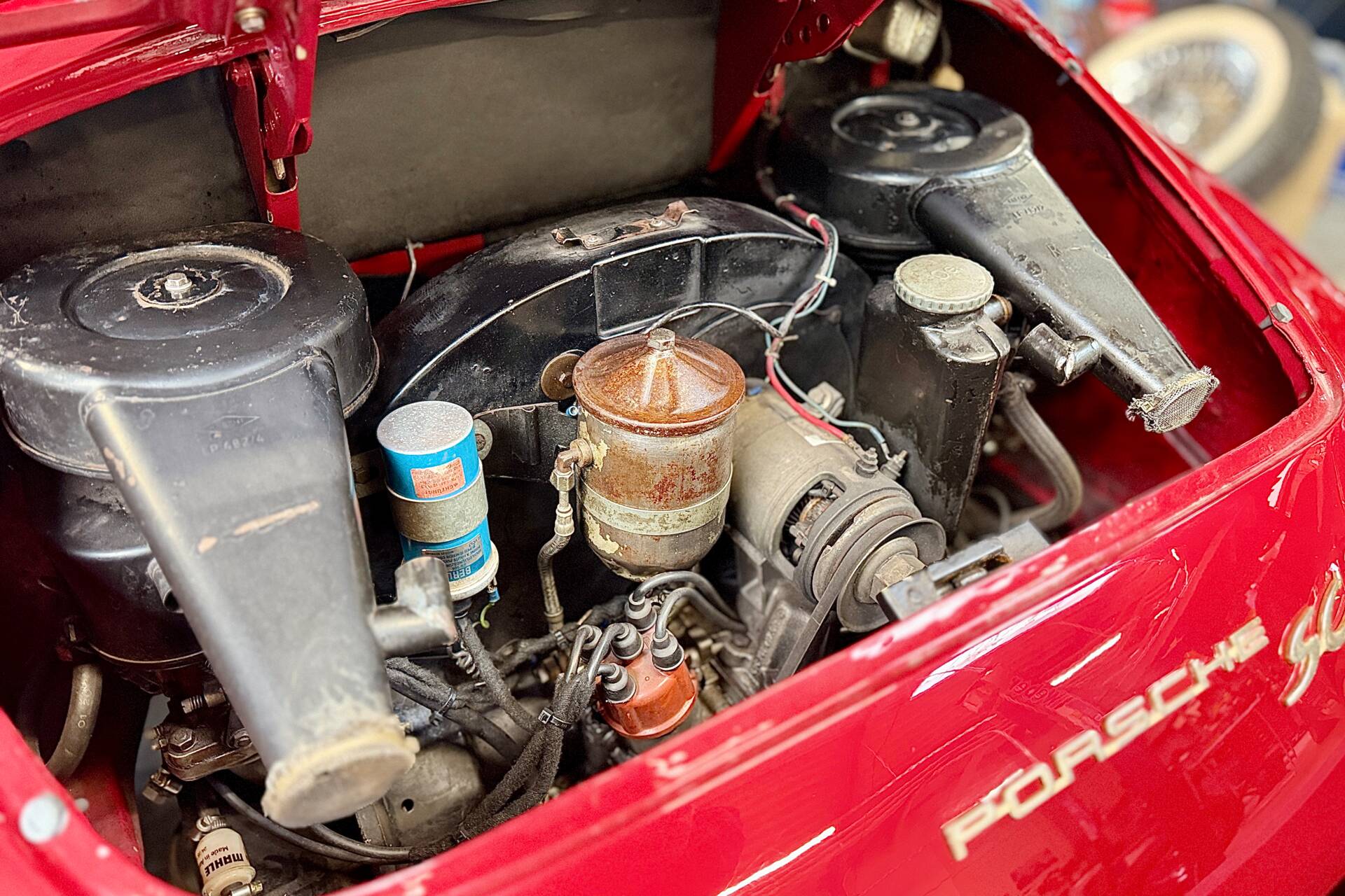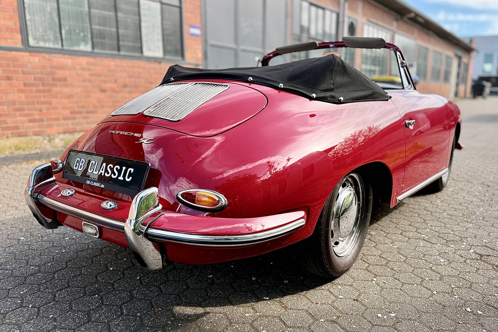 Dieser Porsche 356 ist seit 1998 im Familienbesitz. Zahlreiche Dokumente erzählen von der Lebensgeschichte der letzten 28 Jahre. Die Auslieferungsbestätigung der Porsche Werke bestätigt den 356er als 1964 ausgeliefertes Cabriolet 1600 SC mit 95 PS und 1600 ccm Hubraum. Heute befindet sich ein etwas späterer Motor aus einem Porsche 912 im Fahrzeug. Optisch steht der Porsche schön dar und auch bei einem Blick unter das Auto beunruhigt uns die Substanz nicht. Der Innenraum ist gepflegt, die Sitze haben eine ordentliche Patina, das Verdeck ist in einem schönen Zustand.