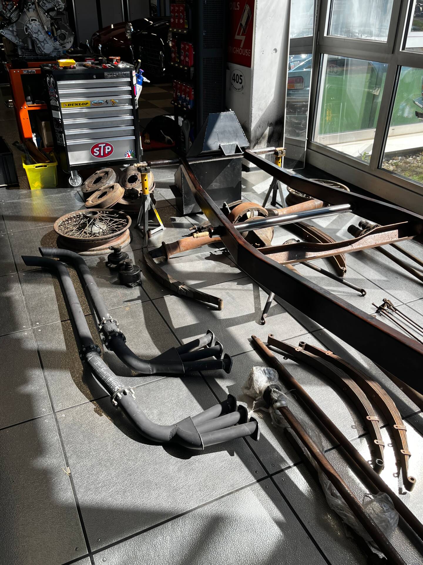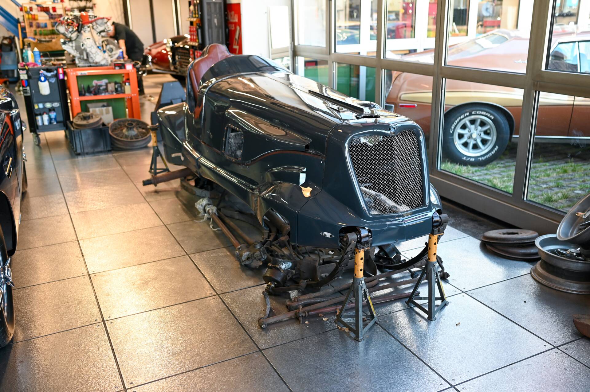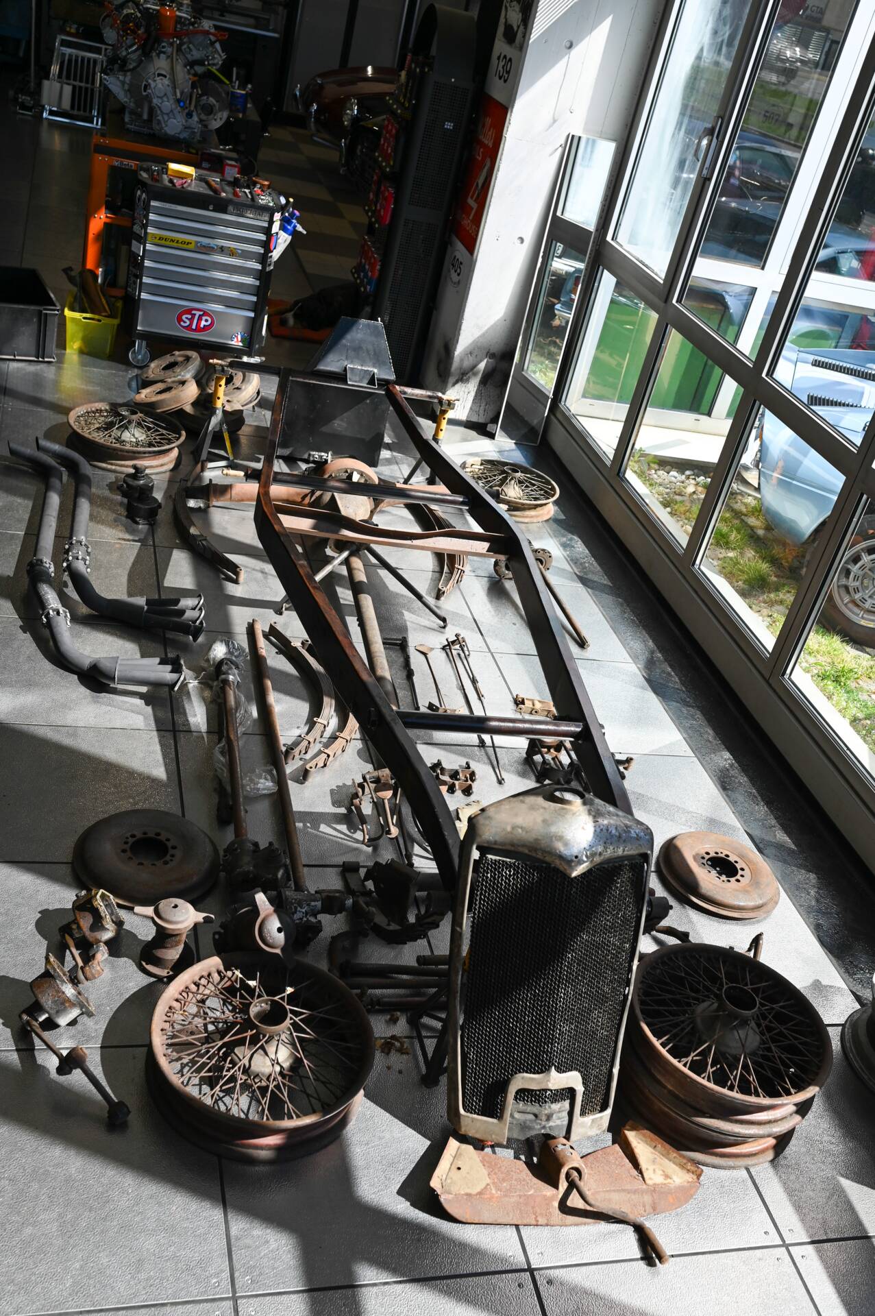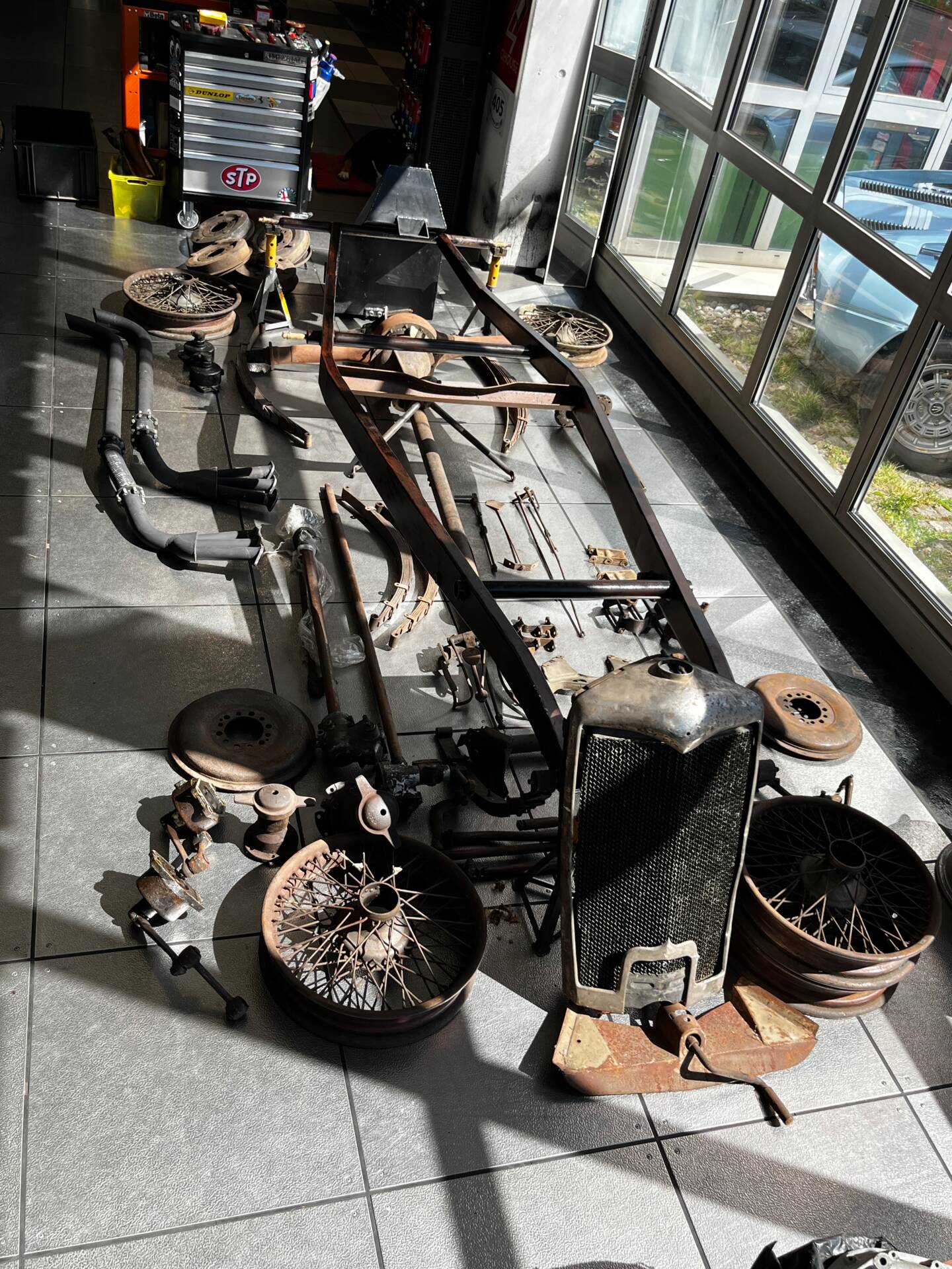 Riley Special Projekt zum Fertigstellen. Rohes Chassis von 1937 mit diversen Teilen und 2. 5 „Big Four“ Motor inklusive korrektem 4-Gang Getriebe. Die Aluminium Carrosserie ist komplett und wurde in der Schweiz für ca. CHF 150‘000.- angefertigt und war bereits auf einem identischen Chassis mit 2. 5 L im Einsatz (komplettes Fahrzeug auf erstem Foto). Alle Teile auf den Fotos gehören zu dem Fahrzeug, zur Komplettierung fehlen jedoch Komponenten wie Vorderachse, Auspuff, Lenkrad oder Instrumente. Eine sehr interessante Basis für einen 1-sitzigen Vorkriegsrennwagen mit Spielraum für Individualisierungen.