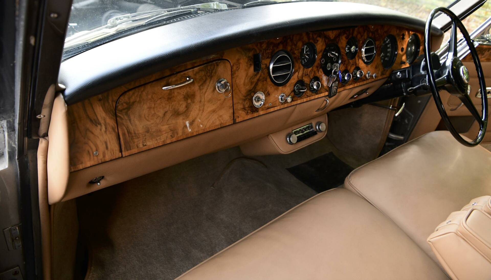 This car is finished in Silver over metallic black giving it a real air of gravitas. To the interior is brand new tan leather throughout along with beige carpeting. The boot is of course done in black. This car sports particularly fine burr walnut which has all been removed & french polished to a mirror like shine.