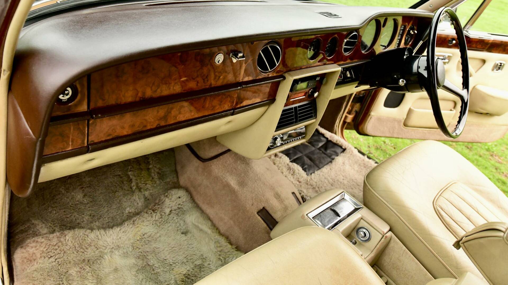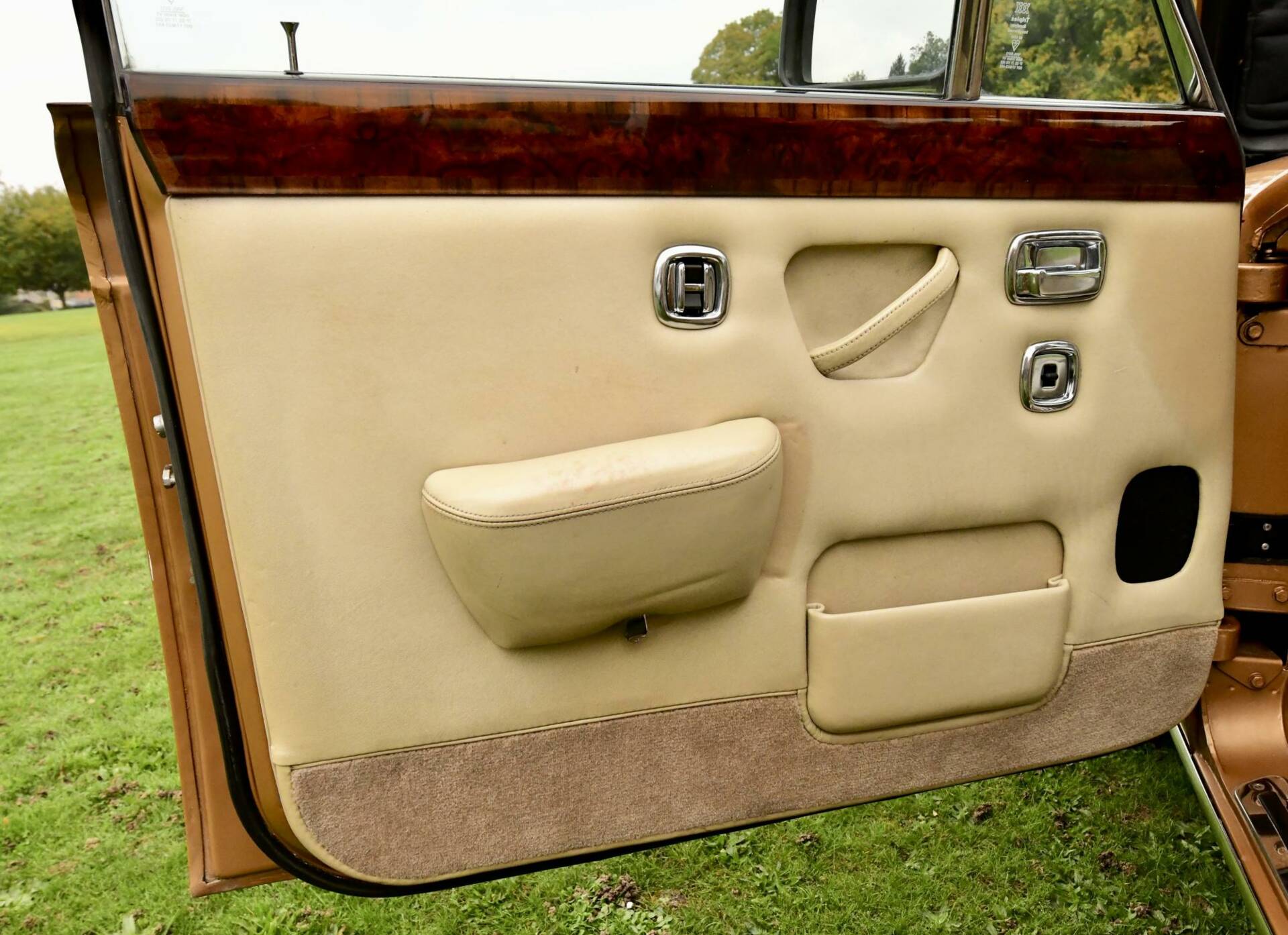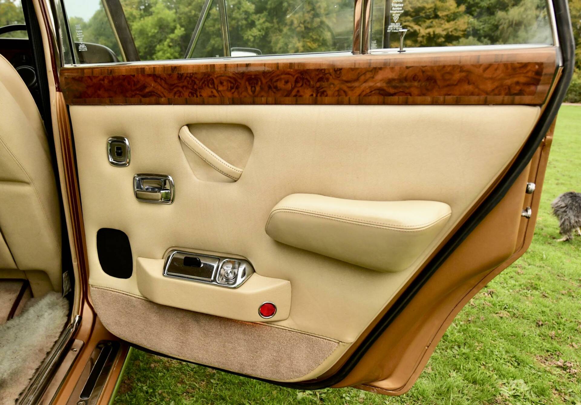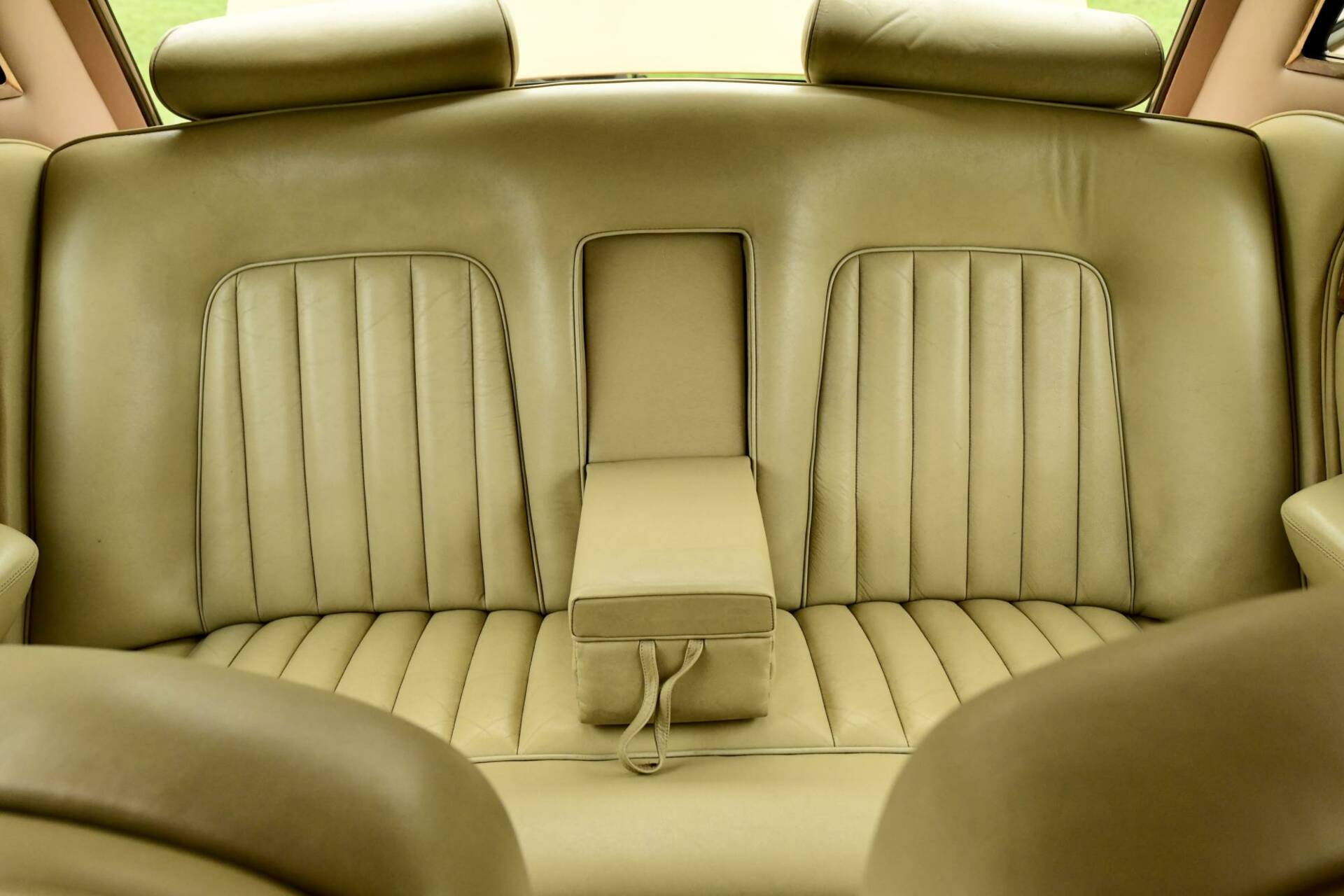 This example is finished in honey gold over walnut with the paintowrk being in very nice conditon thoughout. The stone coloured interior leather is also in fine condition commensurate with the very low mileage covered. The original lambswool overmats are found under foot as are the indiviual footreasts for the rear passengers.