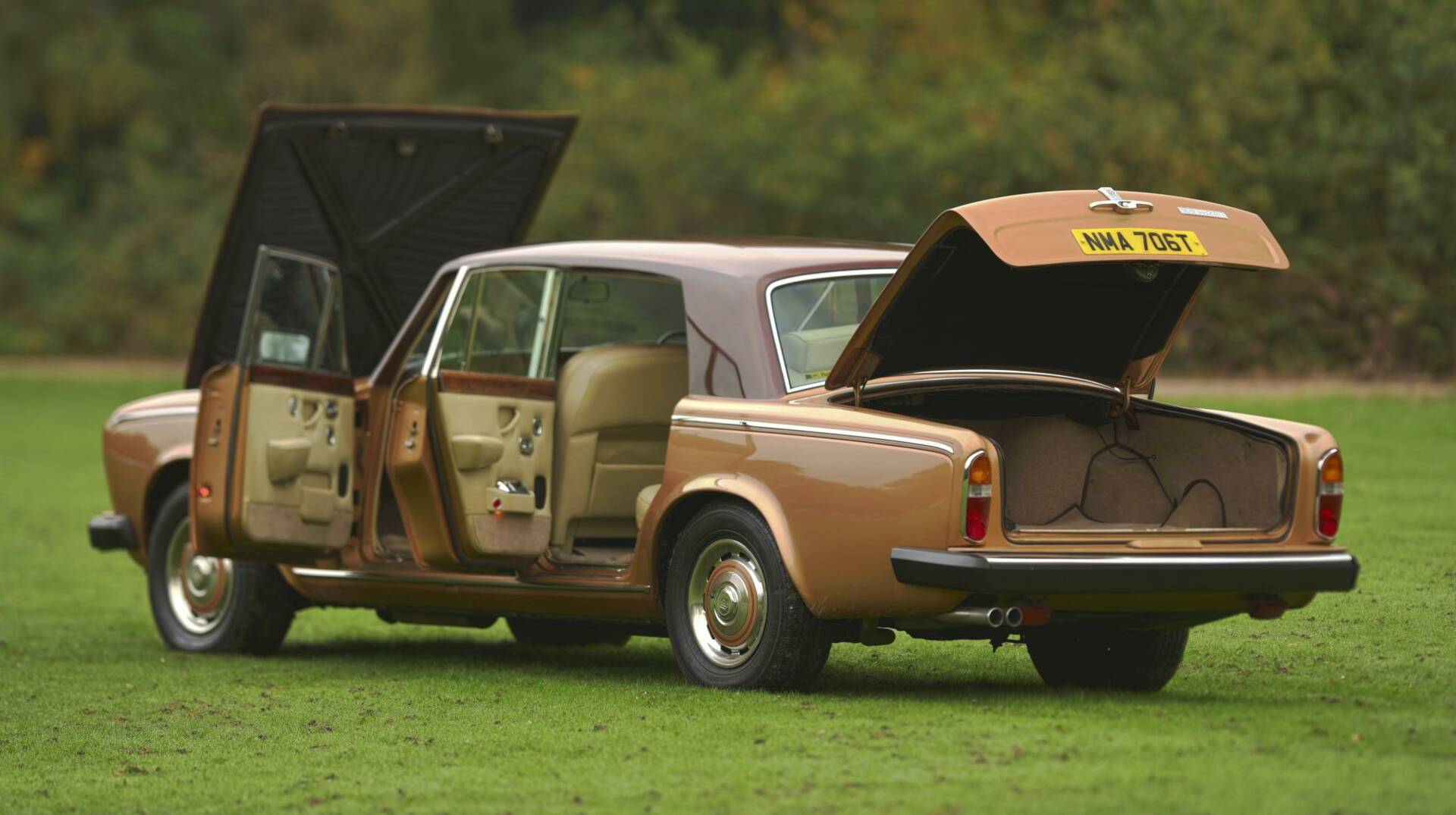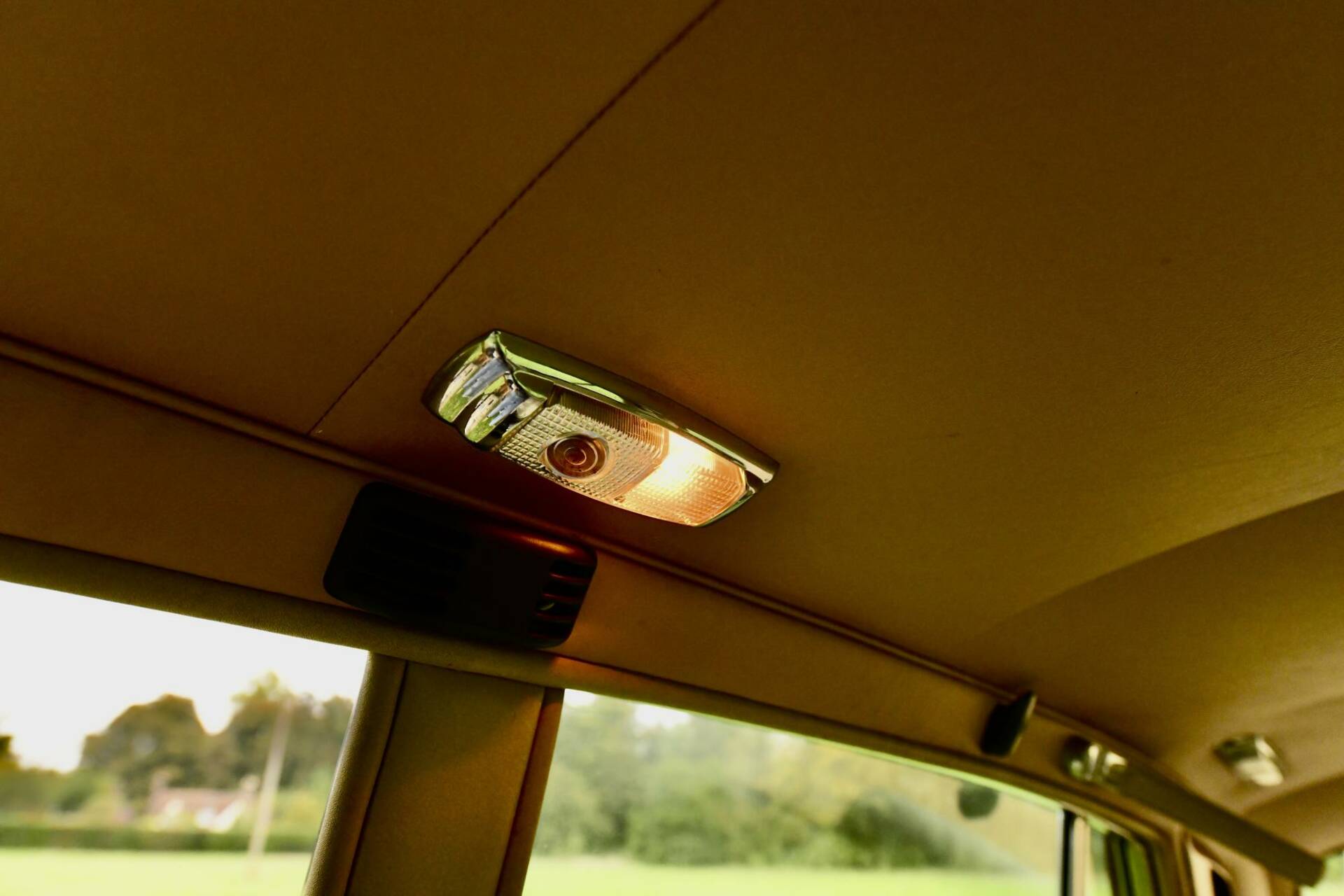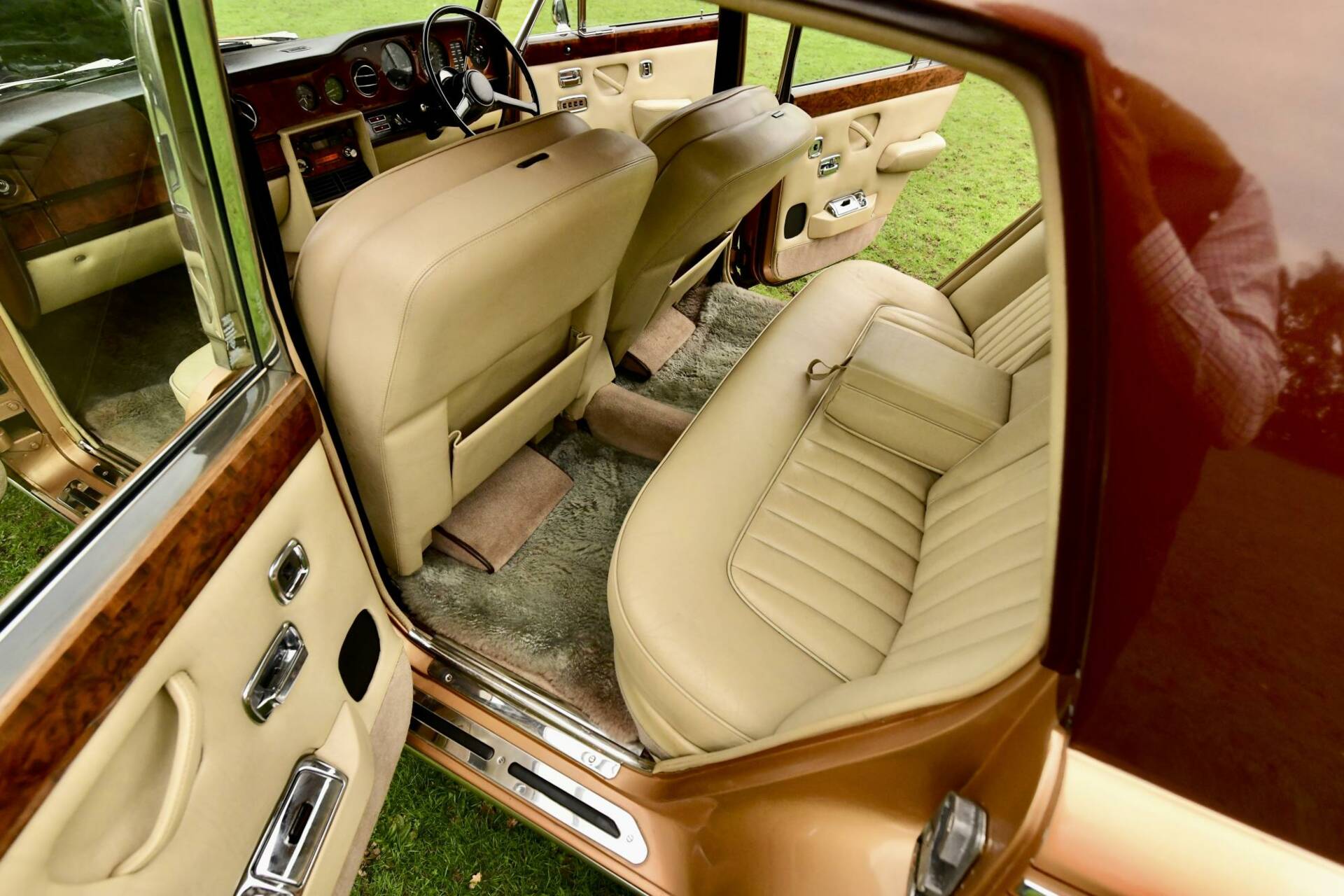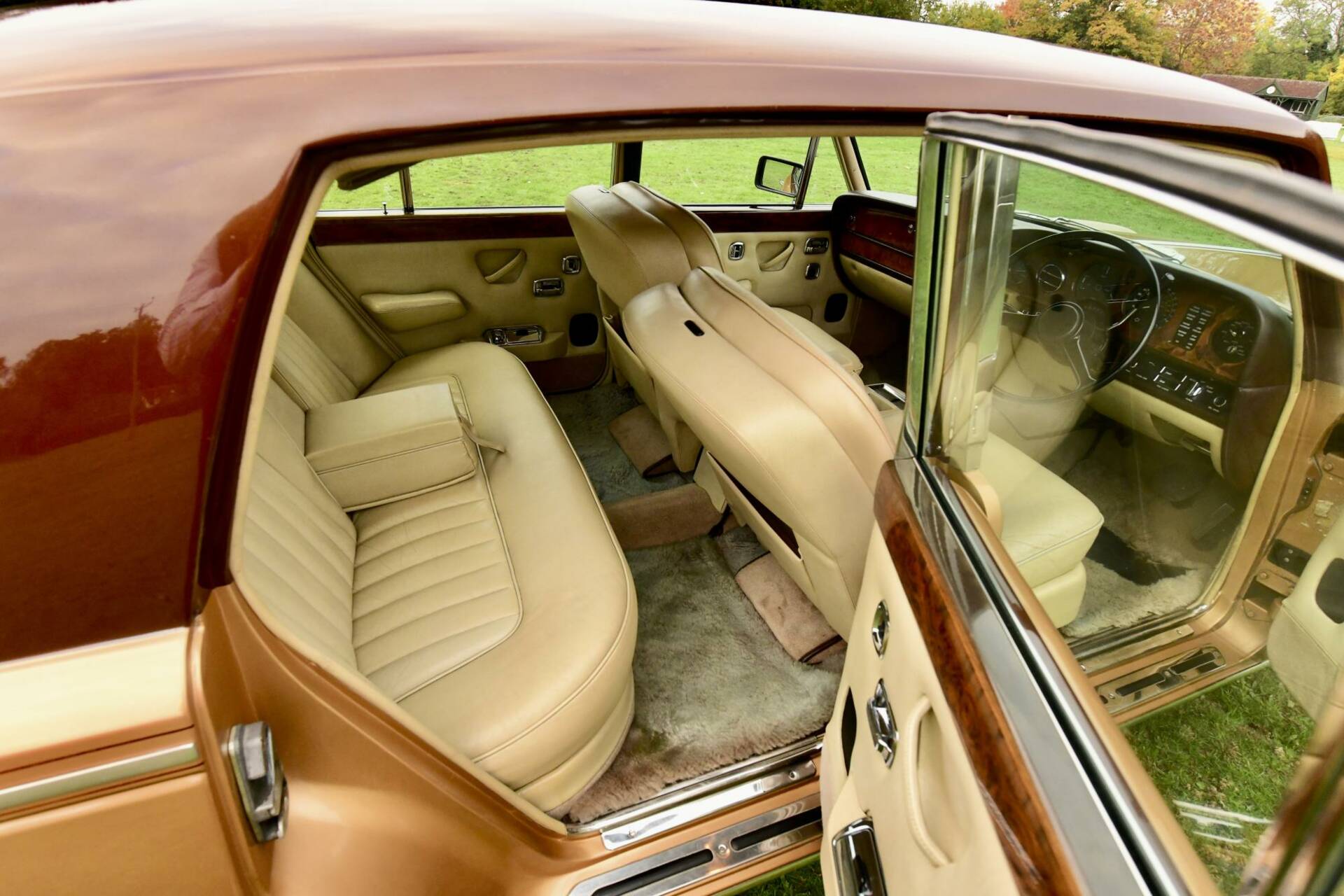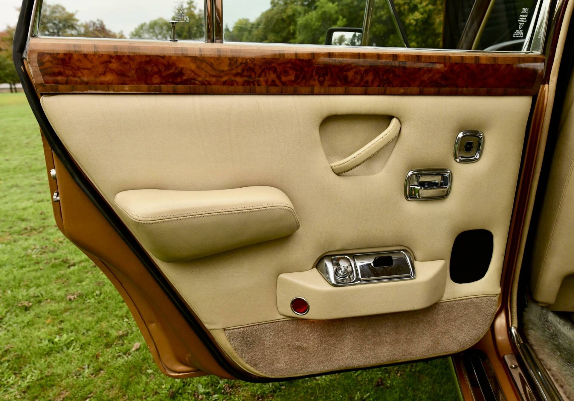 This example is finished in honey gold over walnut with the paintowrk being in very nice conditon thoughout. The stone coloured interior leather is also in fine condition commensurate with the very low mileage covered. The original lambswool overmats are found under foot as are the indiviual footreasts for the rear passengers.