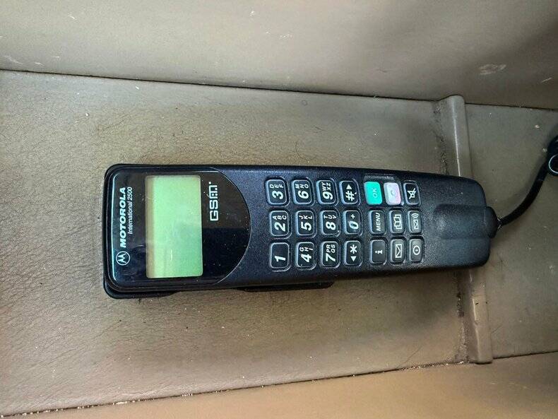 The original Motorola car phone still sits in the cubby between the front seats, so it could be used from either front seat, and more over from the rear seat should the Chauffeur be driving them