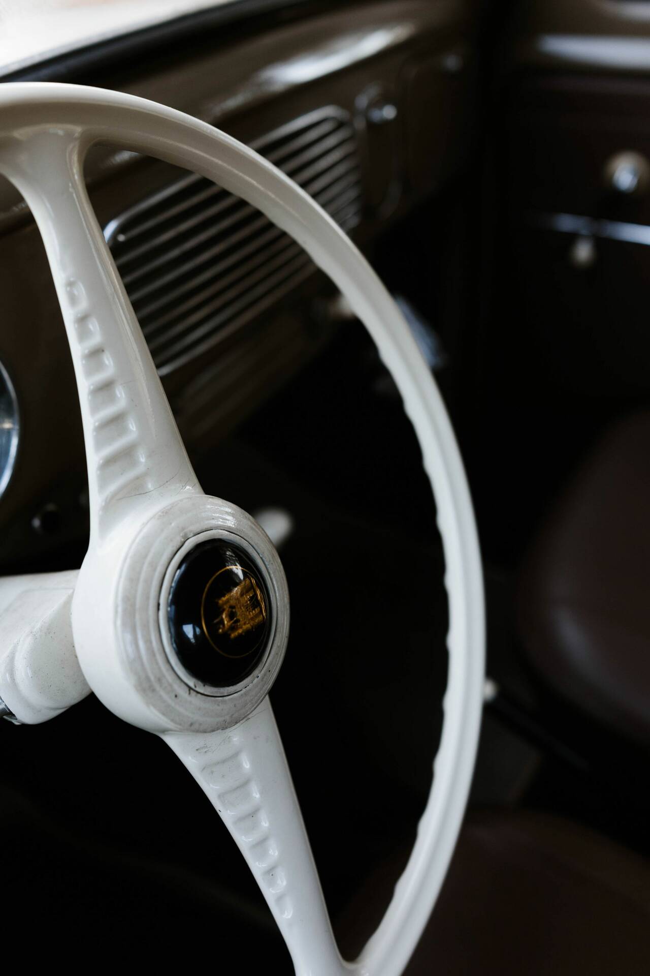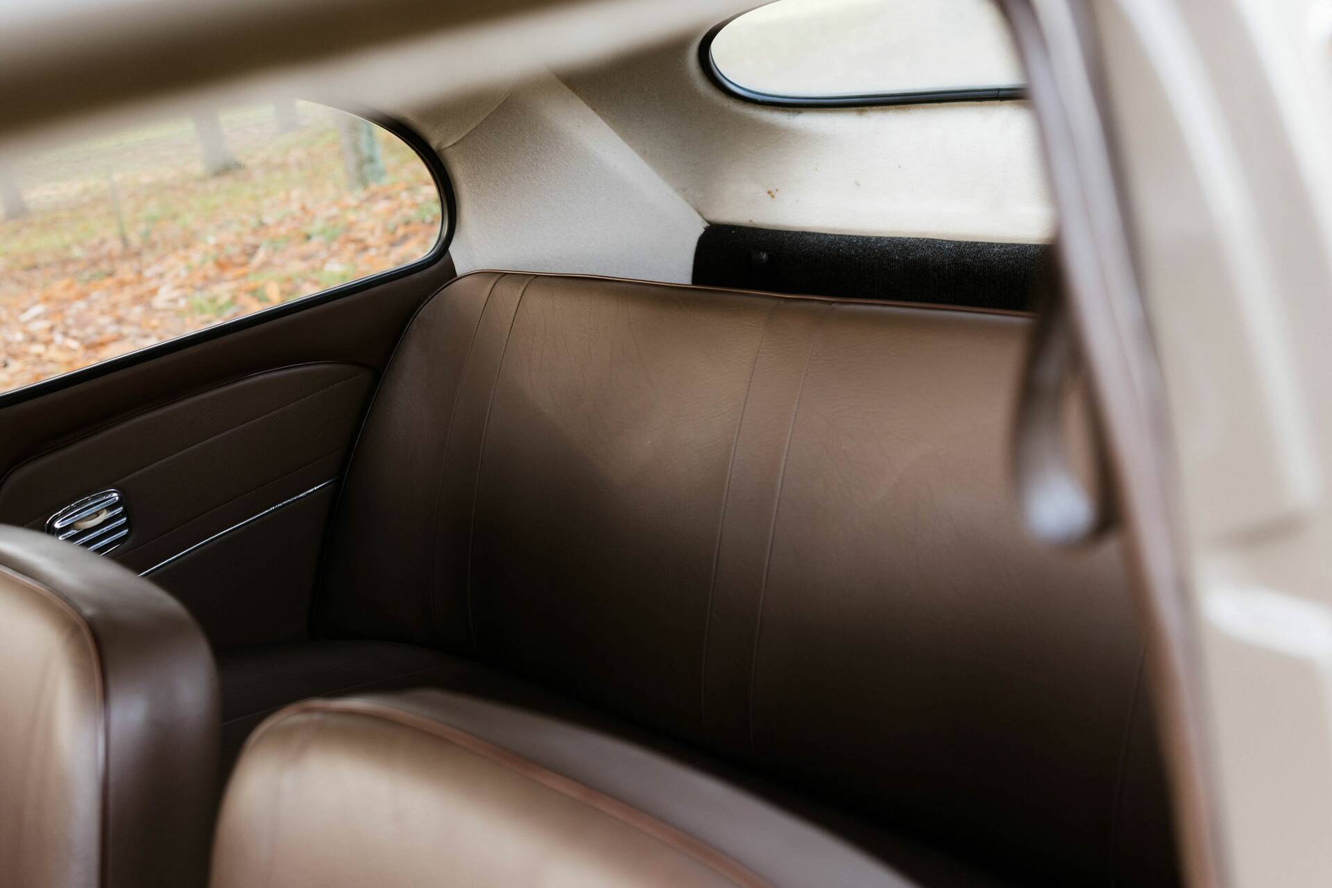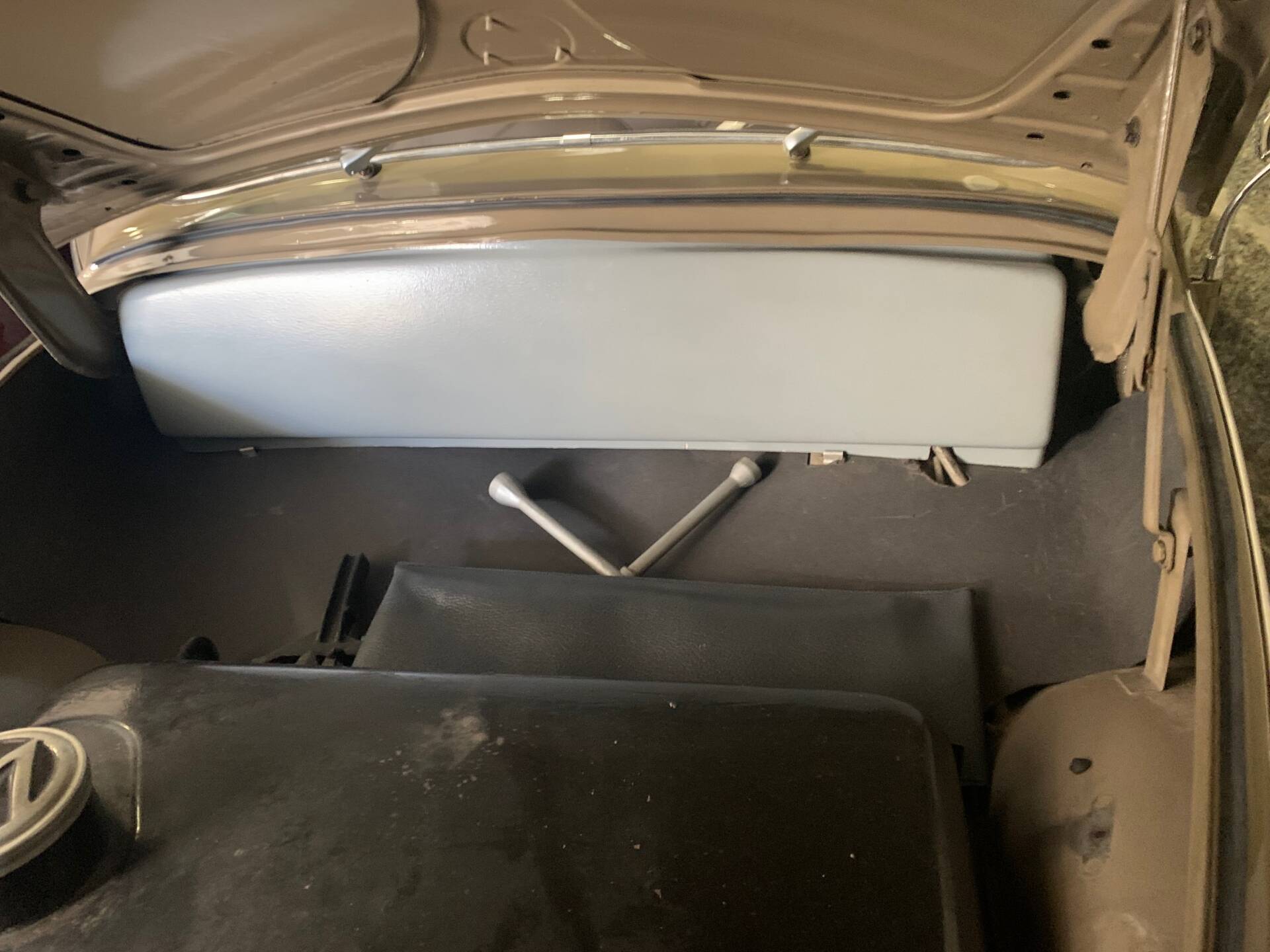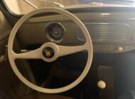 The coherent impression continues in the cabin: upholstery, dashboard, and controls appear largely original, with minor signs of wear bearing witness to a long automotive life. No final information is available regarding color codes or restoration work.