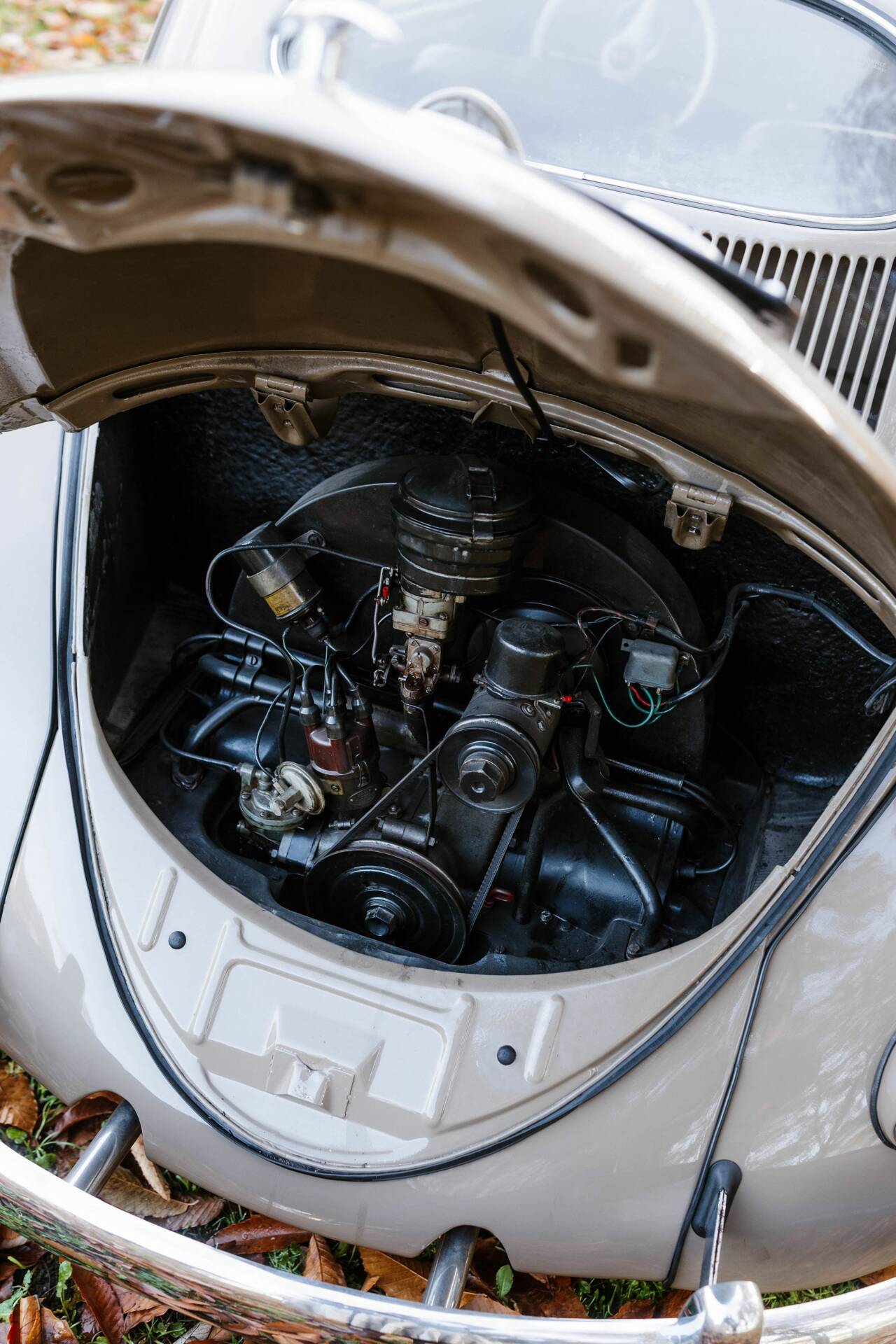 This Beetle presents in a remarkably authentic condition, clearly reflecting decades of careful use. The bodywork, the iconic oval rear window, and many original details remain true to period and display a harmonious patina. Complete documentation regarding any possible repainting is not currently available.