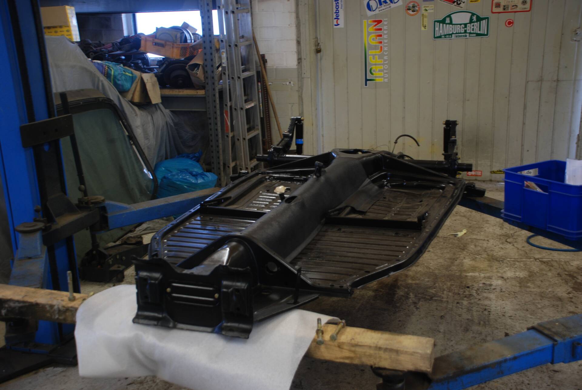 Ich erspare mir die Auflistung der Neuteile etc. die Technik ist bis hierher NEU! Die original Farbe wurde fachgerecht 2011 lackiert. Seitdem steht das Fahrzeug montiert und rollfähig in meiner trockenen Halle. Alle demontierten Teile sind vorhanden und werden bei Kauf mit gegeben. Elektrik, Innenausstattung und Motor müssen zur Komplettierung fertiggestellt werden.