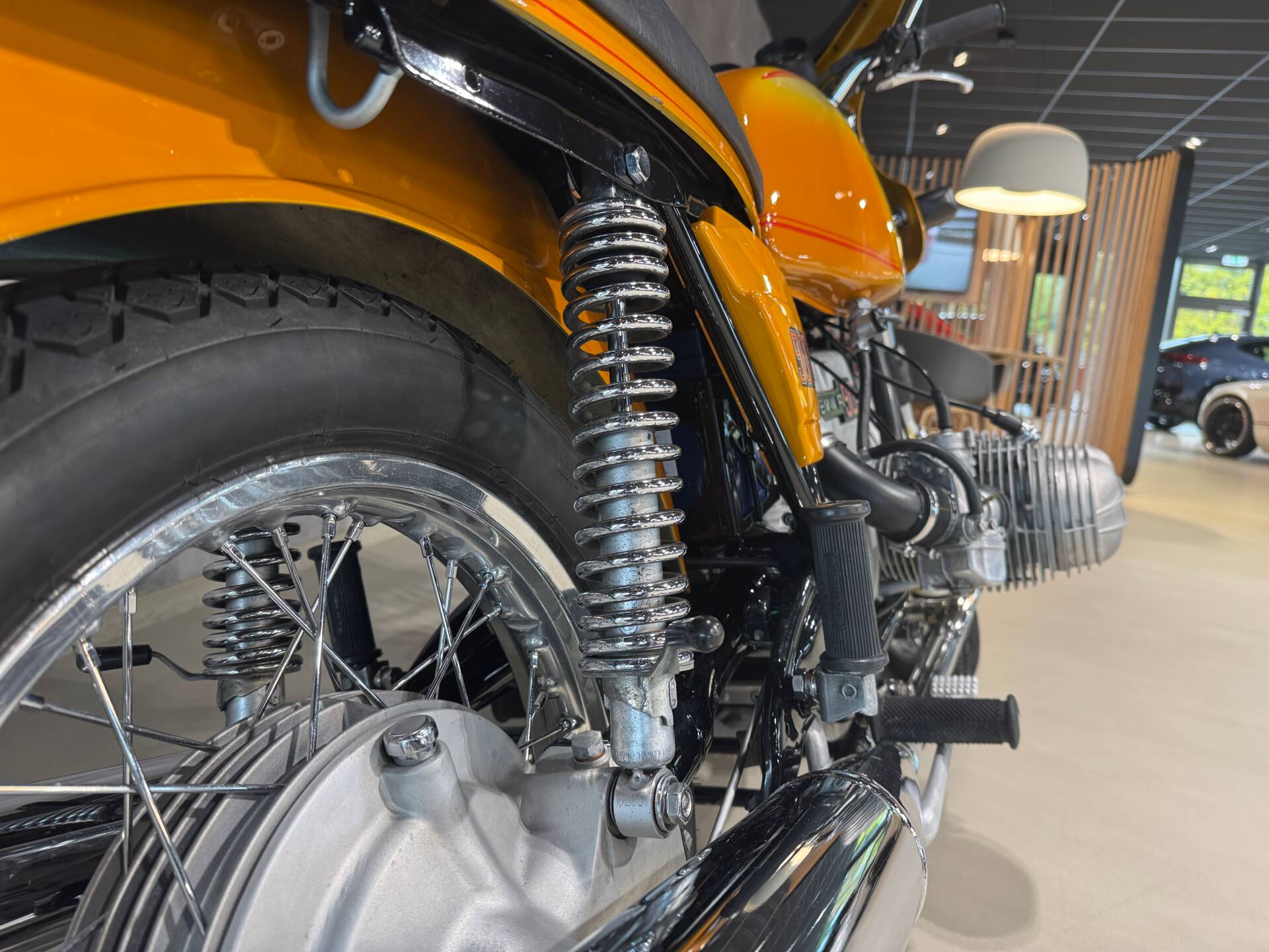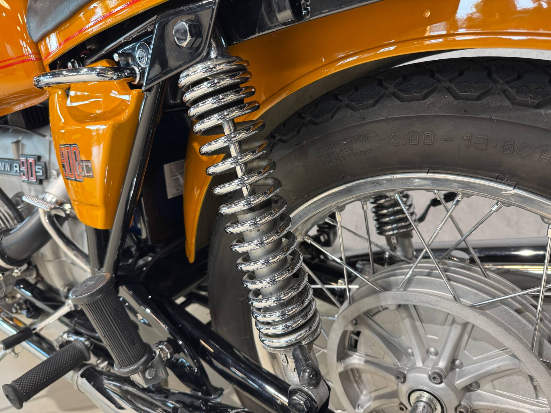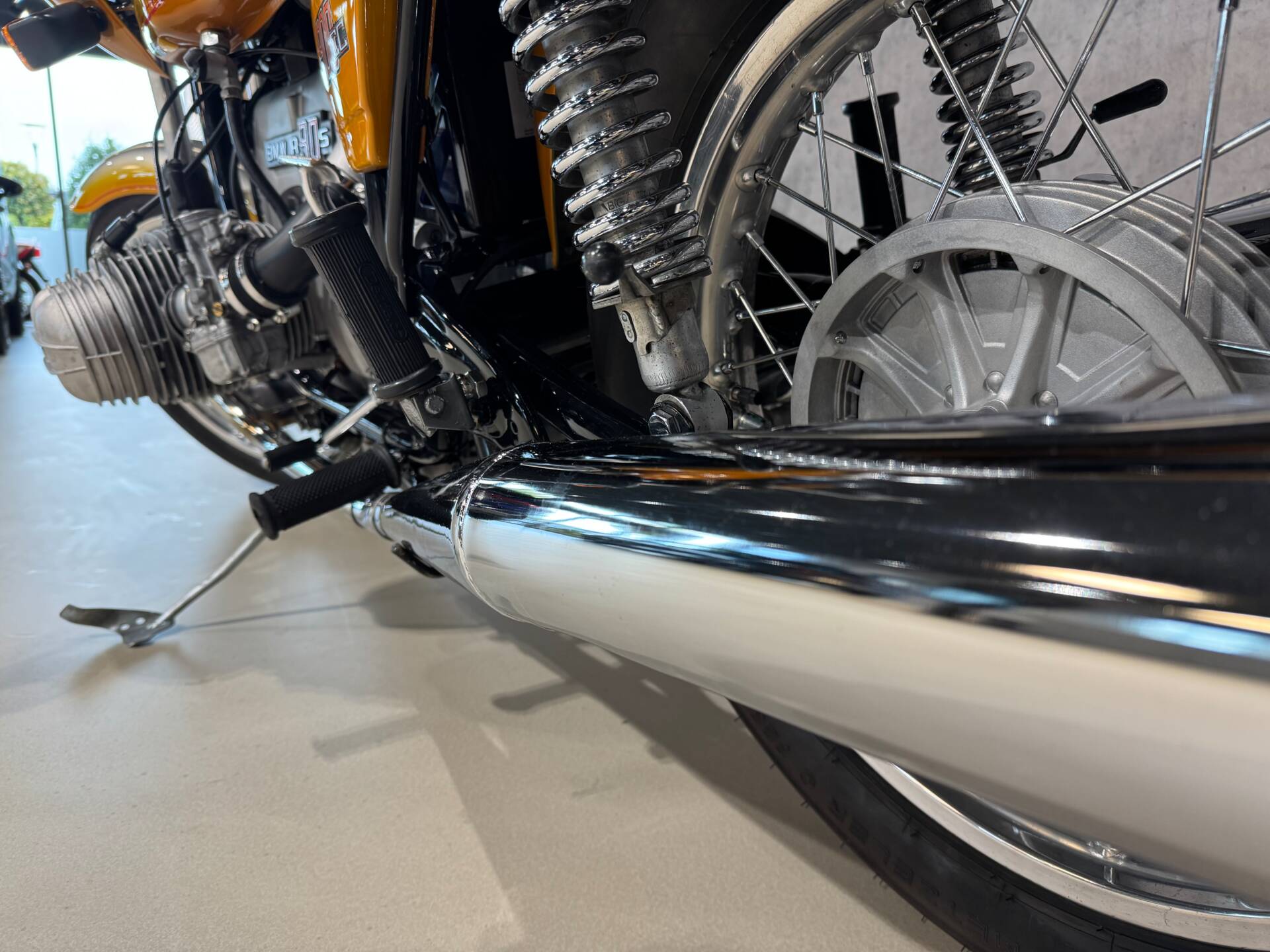 Dieses hier angebotene Exemplar aus dem Jahr 1975 präsentiert sich in außergewöhnlich schönem Zustand. Nach einer sorgfältigen Restauration wurde die Maschine nur noch behutsam bewegt – der Tacho zeigt gerade einmal 9 321 Kilometer. Technisch wie optisch überzeugt sie mit Perfektion bis ins Detail – vom sehr guten Lack über die satten Chromteile bis zum charakteristischen Klang des Boxers, der schon beim ersten Zündfunken Gänsehaut verursacht.