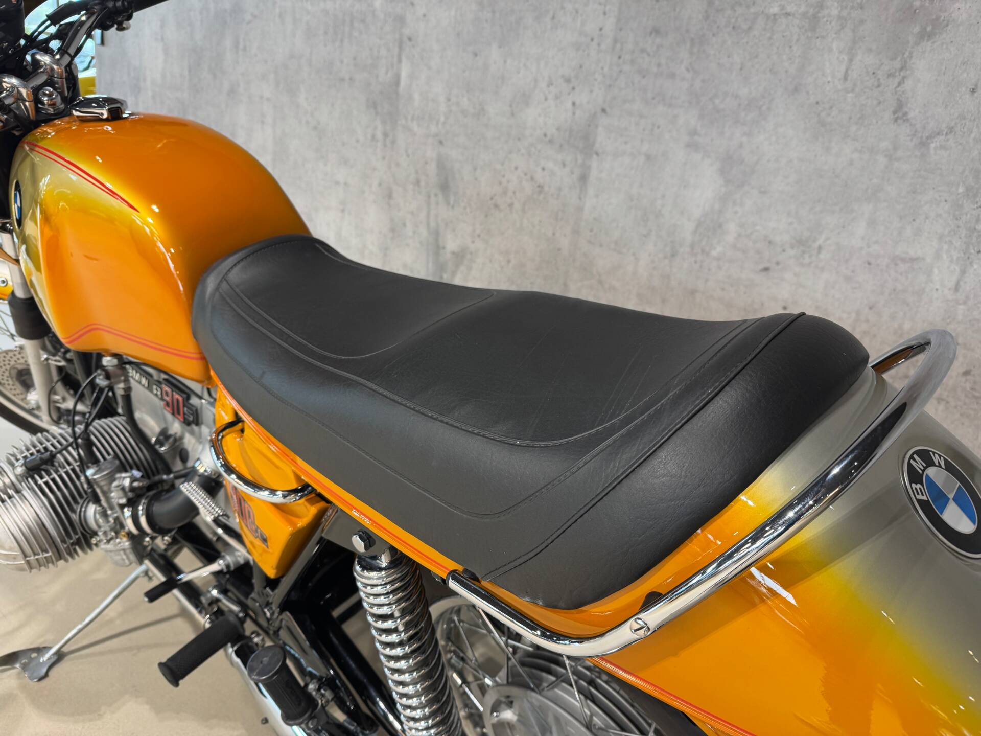 Die R90 S war mehr als nur ein Motorrad, sie war eine Stilikone. Das gold-orangefarbene Lackkleid – in feinster Handarbeit im sogenannten „Smoke-Design“ lackiert – machte sie sofort erkennbar. Es war die Ära von Schlaghosen, Röhrenradios und Rennsporthelden – und die R90 S passte perfekt in dieses Bild: elegant, rebellisch, technisch brillant.