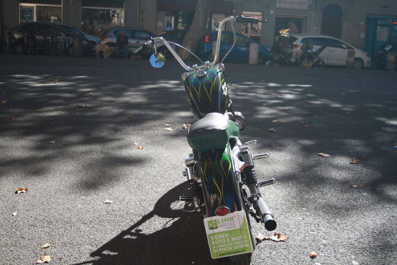 Note: La moto, interamente customizzata, presenta il serbatoio rivestito con una foglia di argento, su cui è stata realizzata l'attuale aerografia. Moto pluripremiata. Ultimo riconoscimento ricevuto all'EXPO Moto di Padova nel 2024. Disponibili 3 selle in totale, tra cui una originale monoposto, una due posti, leggermente rialzata, e la terza, realizzata in produzione artigianale dal maestro pellettista Gabriele Urzi.