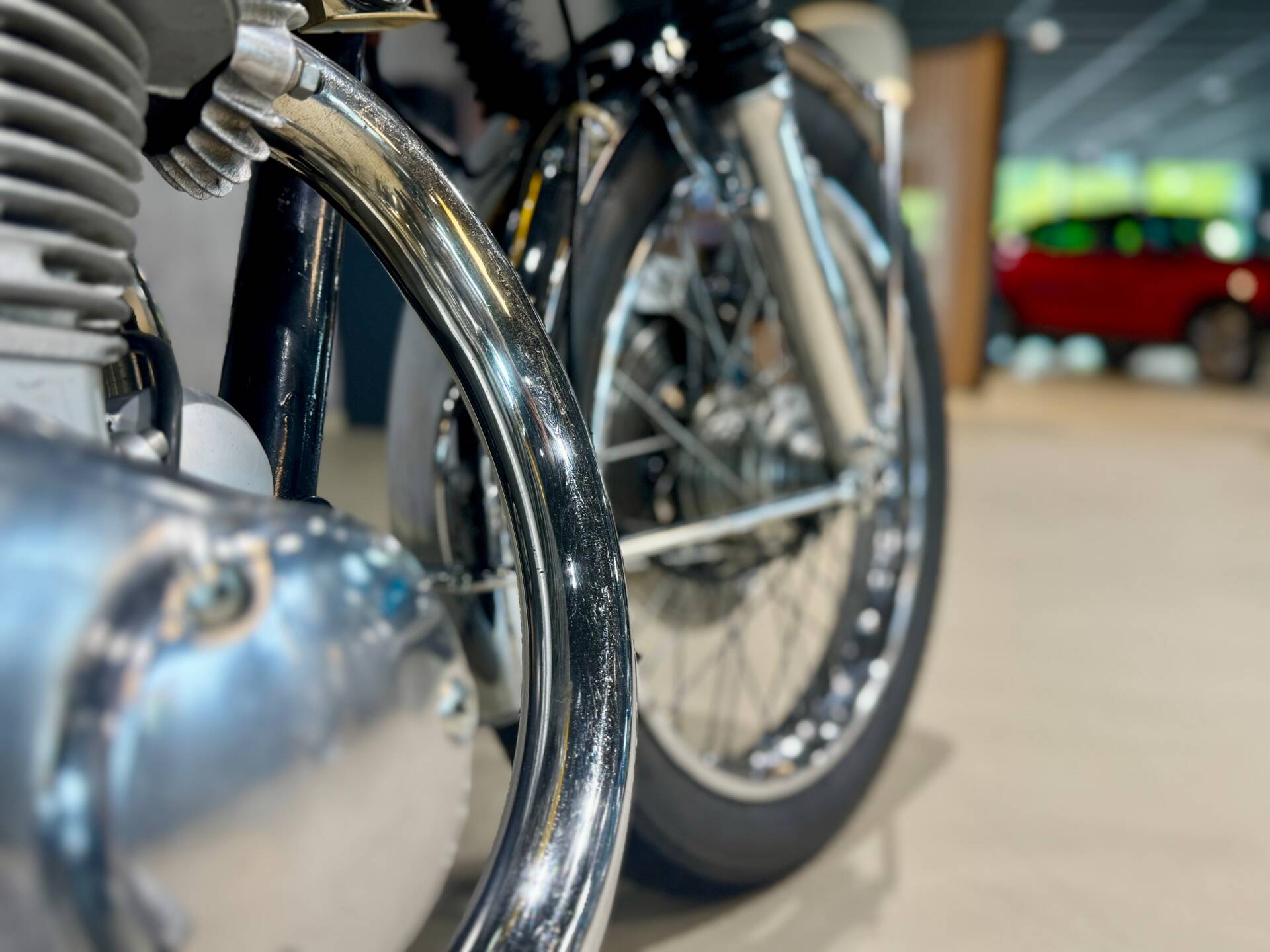 Das hier angebotene Exemplar stammt aus dem Jahr 1972 und zeigt sich in der typischen Lackierung dieser Epoche, die schon auf den ersten Blick das Flair der frühen Siebziger heraufbeschwört. Technisch wie optisch befindet sich die Maschine in Top-Zustand – pur, unverfälscht und so authentisch, wie man es sich nur wünschen kann.