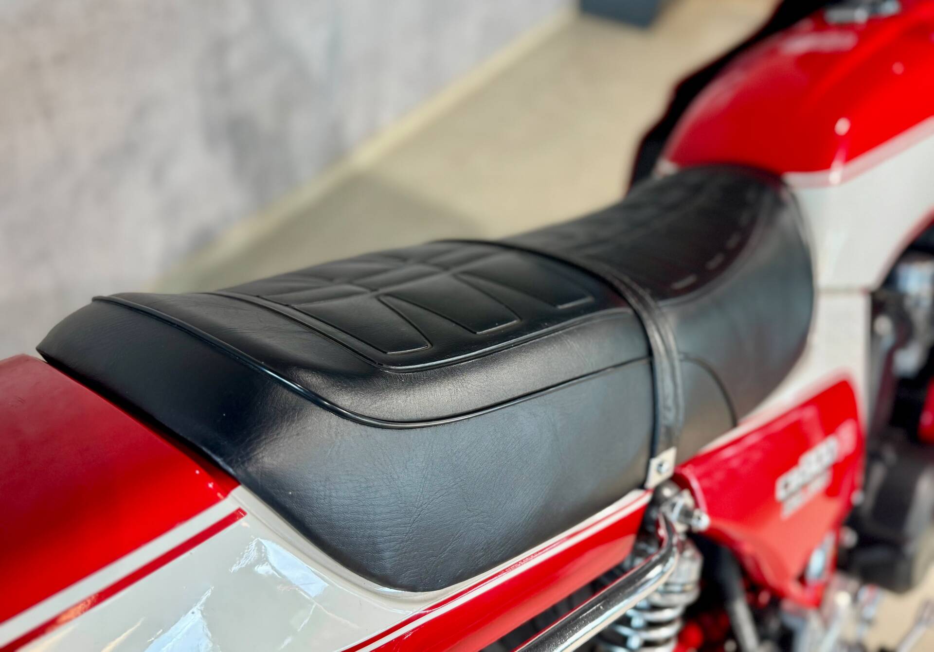 Das hier angebotene Exemplar stammt aus dem Jahr 1982 (Erstzulassung 08/1982) und präsentiert sich in der klassischen rot-weißen Lackierung, die perfekt zu dieser Ära passt und den sportlichen Charakter des Motorrads unterstreicht. Optisch wie technisch befindet sich die Maschine in einem sehr guten Zustand – gepflegt, authentisch und jederzeit fahrbereit.
