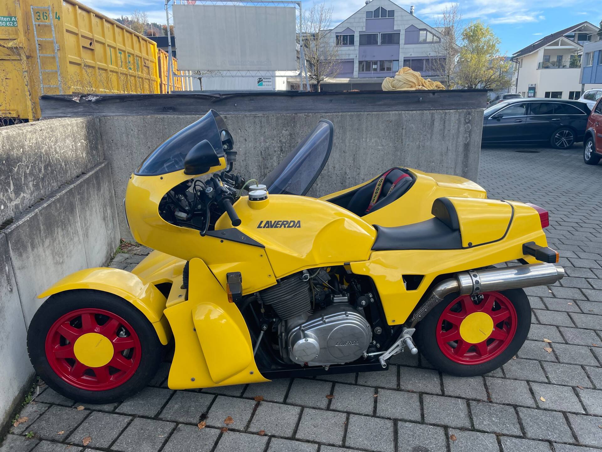 Ein rares Einzelstück,nach Kundenauftrag bei Hermeling mit einzigartiger Achsschenkellenkung gefertigt.Einzigartig auch der bärenstarke Laverda 3 Zylindermotor in einem Gespann.Ausführliche Dokumentation ,inclusive der Eignungserklärung werkseitig für Beiwagenbetrieb.Das Fahrzeug hat Schweizerzulassung.