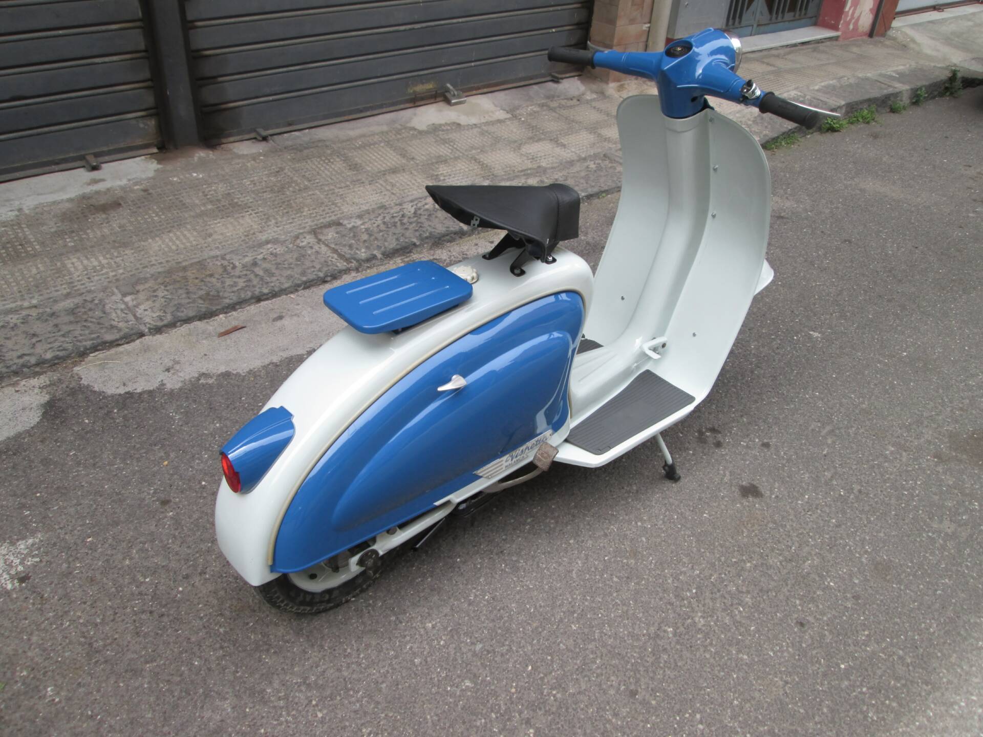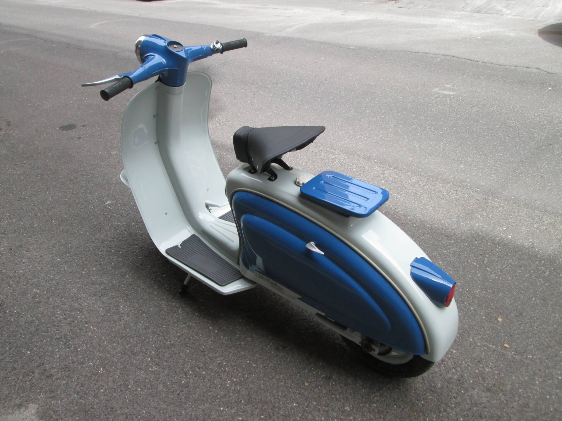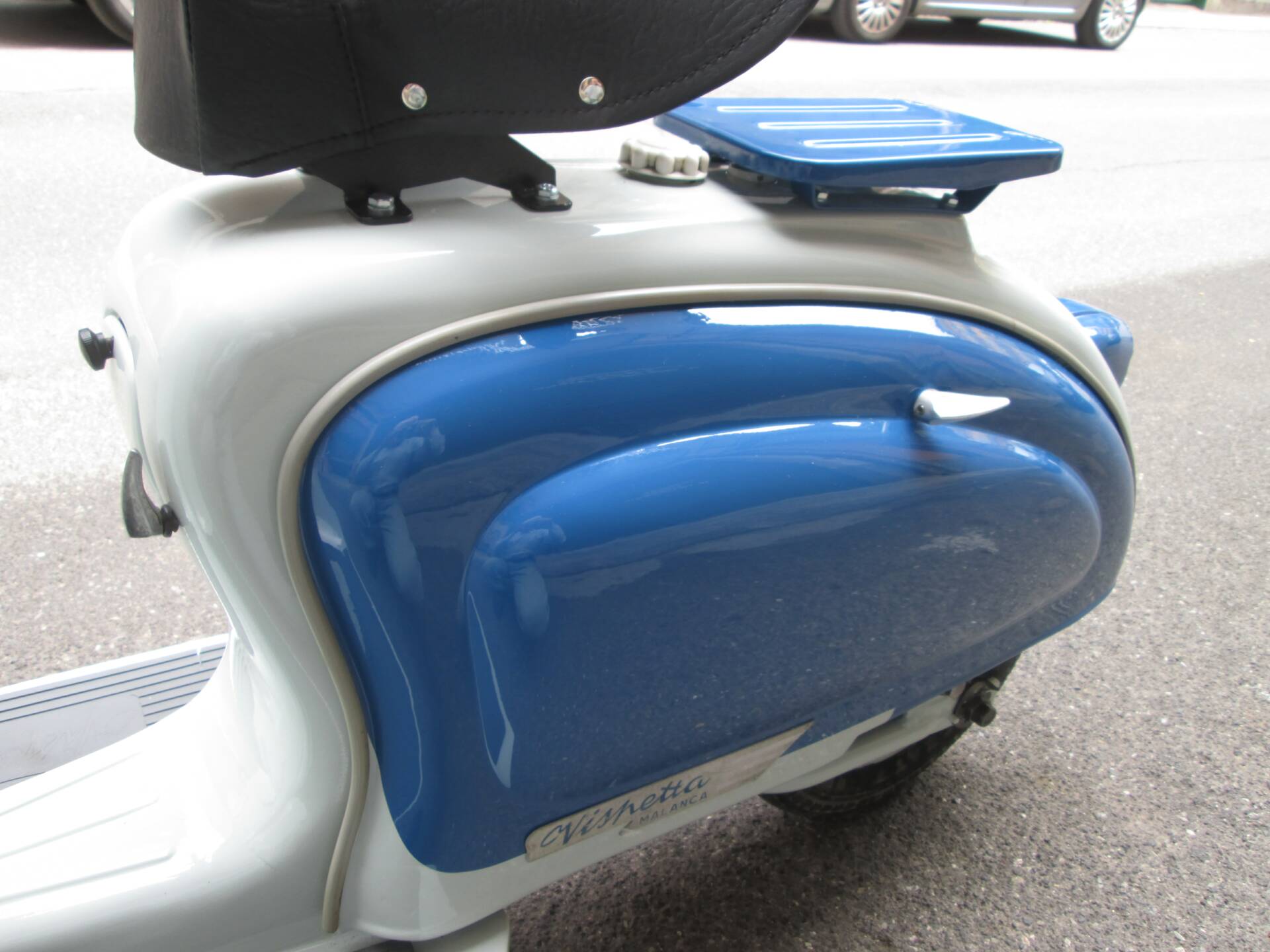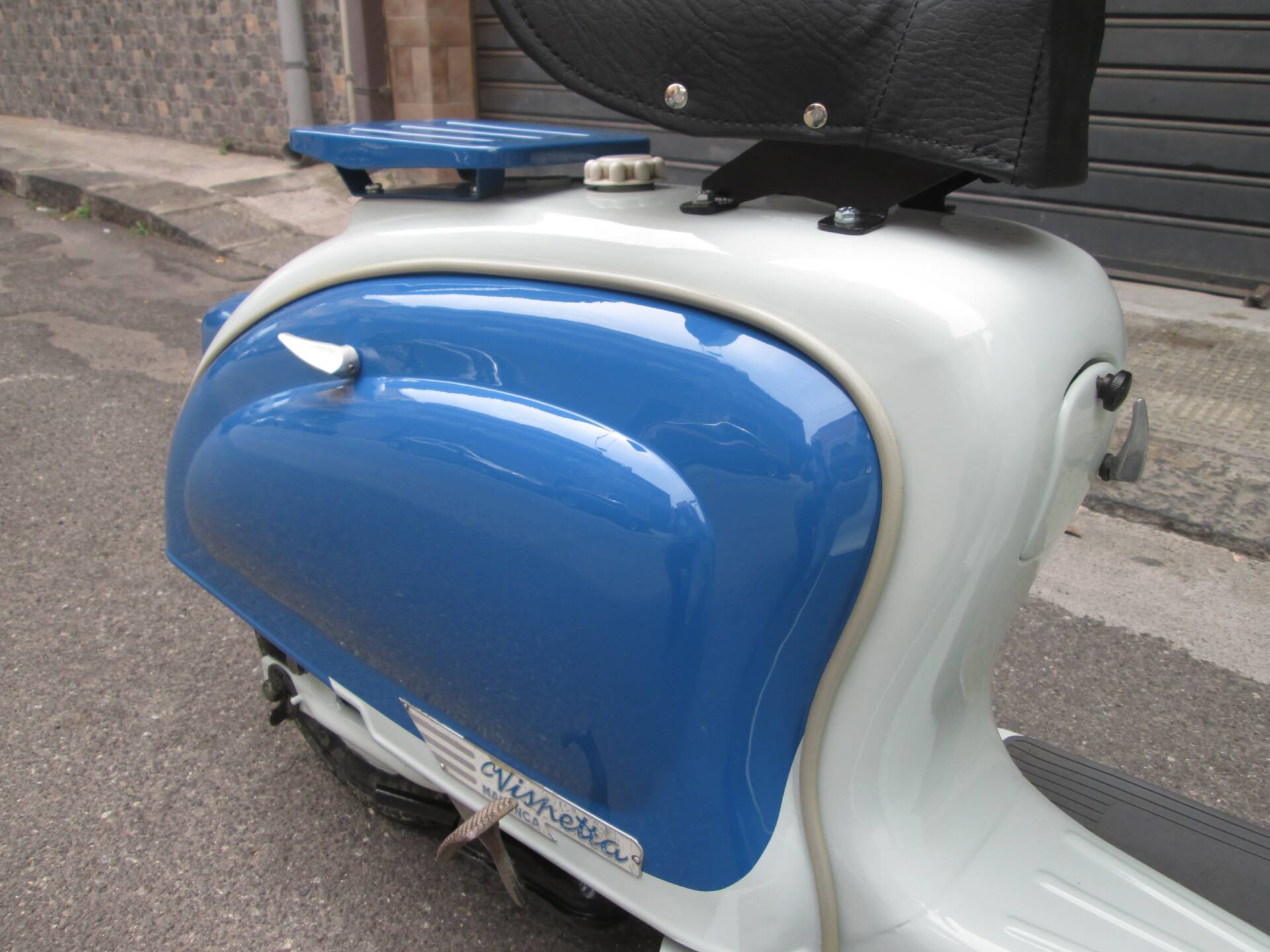 Secondo quanto dichiarato dal venditore, lo scooter è stato completamente smontato e successivamente riverniciato nelle tinte originali. L’obiettivo non era realizzare un mezzo sovra-restaurato, bensì preservare il carattere autentico e il sapore d’epoca della Vispetta. La carrozzeria si presenta oggi coerente e credibile, con un aspetto complessivamente armonioso. Non sono disponibili ulteriori dettagli su cromature, fregi o eventuali parti rifatte.