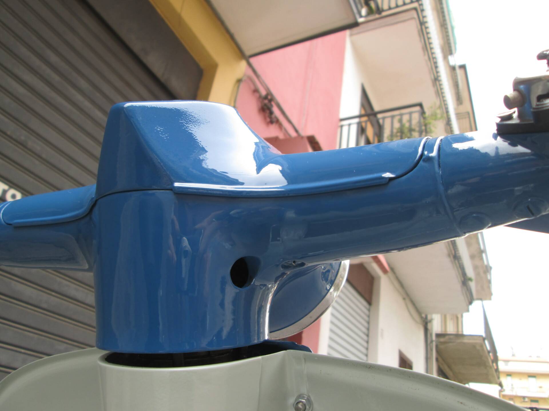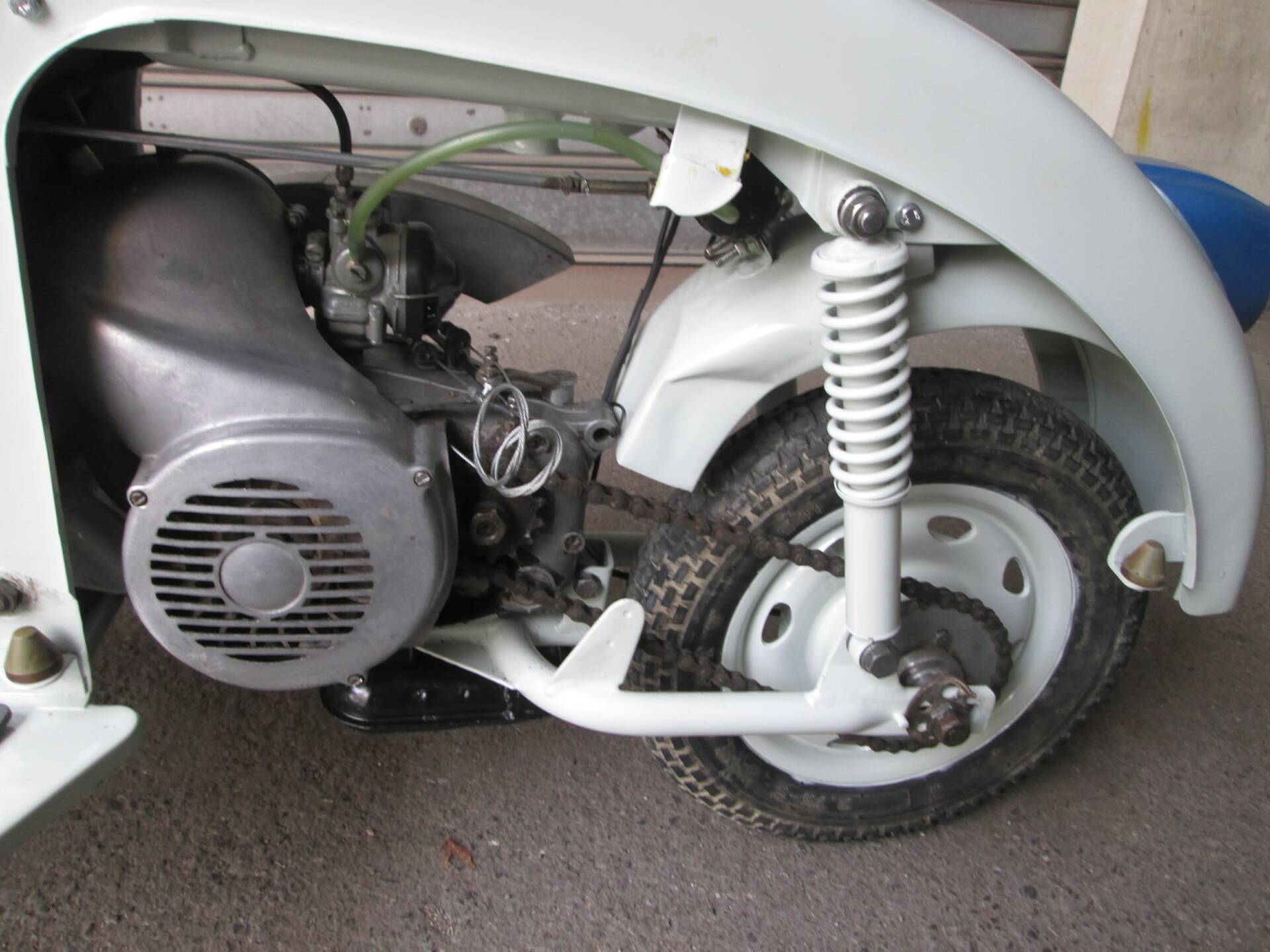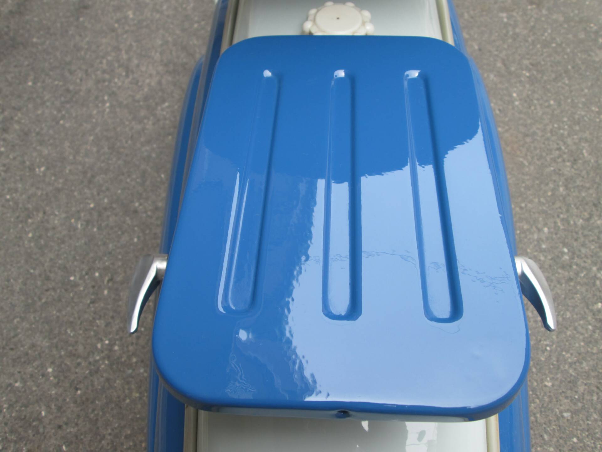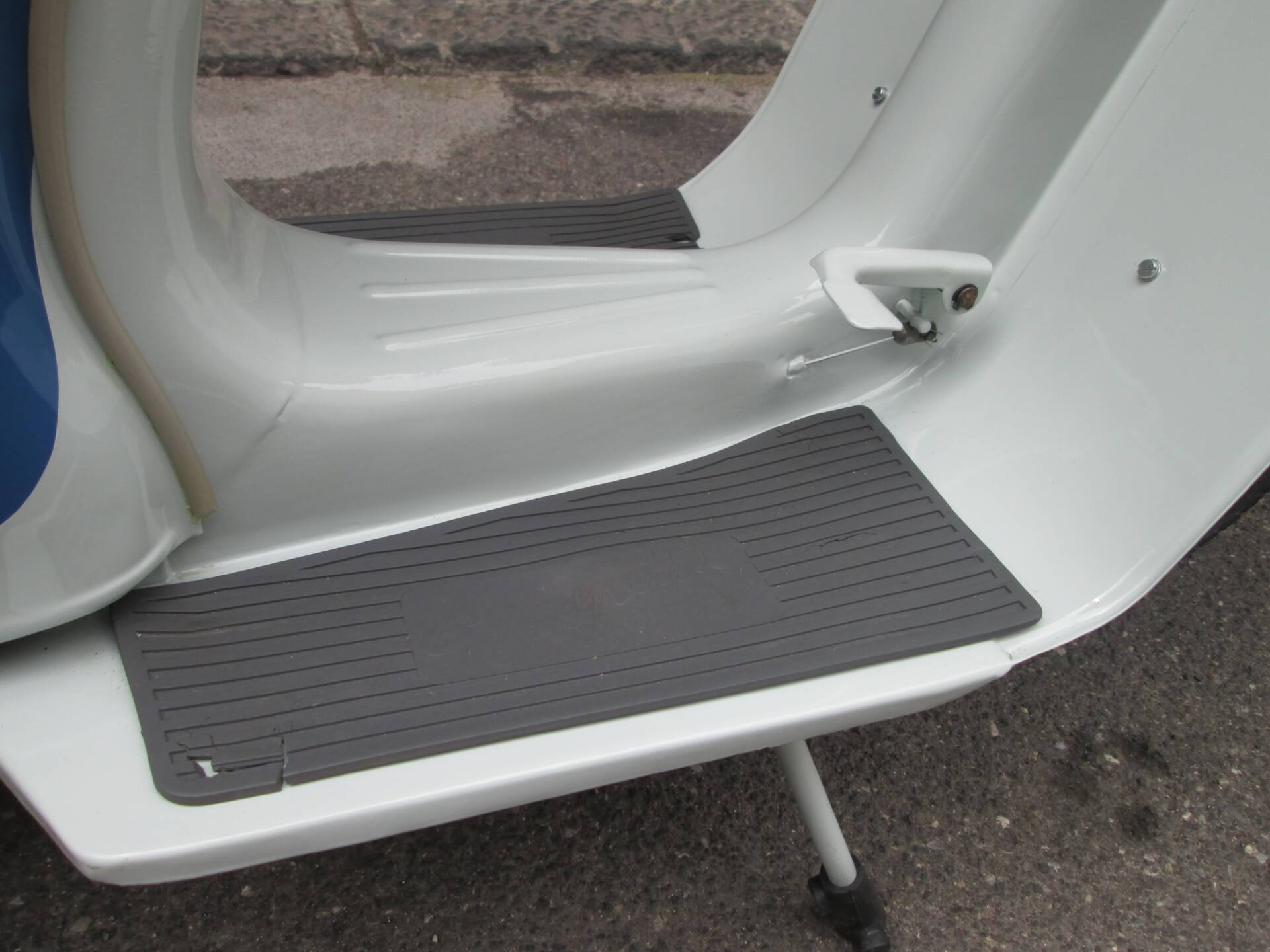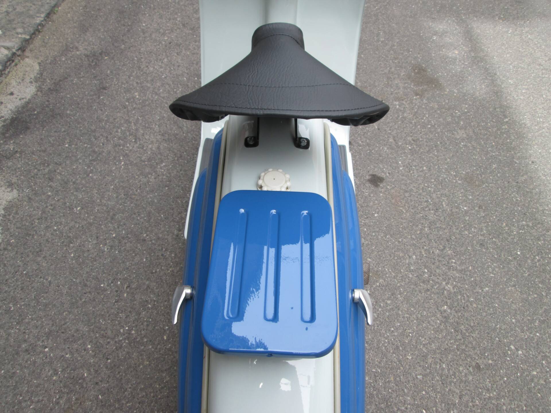Secondo quanto dichiarato dal venditore, lo scooter è stato completamente smontato e successivamente riverniciato nelle tinte originali. L’obiettivo non era realizzare un mezzo sovra-restaurato, bensì preservare il carattere autentico e il sapore d’epoca della Vispetta. La carrozzeria si presenta oggi coerente e credibile, con un aspetto complessivamente armonioso. Non sono disponibili ulteriori dettagli su cromature, fregi o eventuali parti rifatte.
