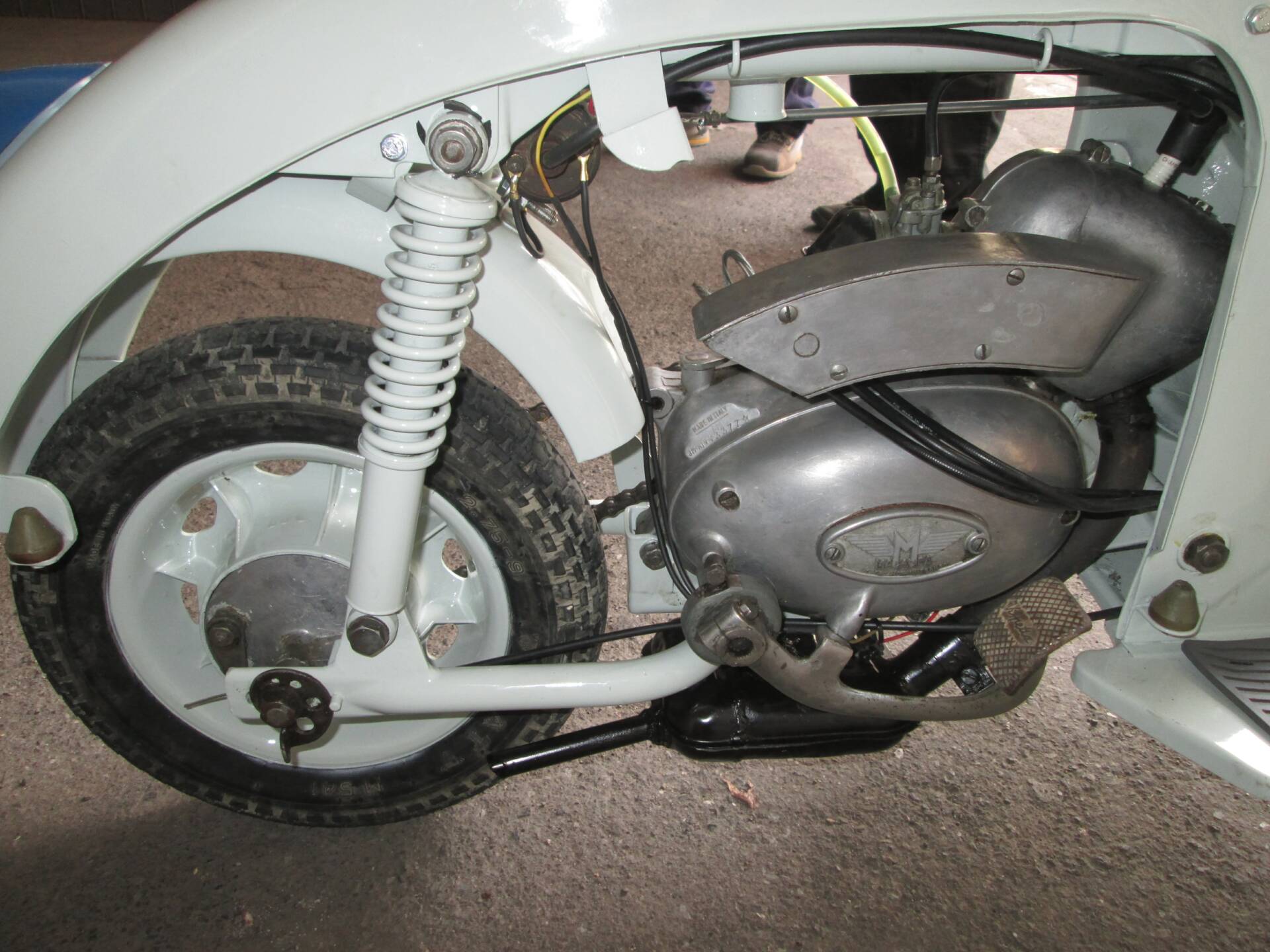 Il motore Morini due tempi da 50 cm³ con cambio a tre marce è stato riavviato dopo un lungo periodo di fermo. Nel corso degli interventi sono stati sostituiti cavi e guaine di freni e frizione, pulito il carburatore e rinnovati candela e lampadine. Dopo queste operazioni lo scooter non è stato utilizzato regolarmente su strada, ma è rimasto all’interno della collezione. Non viene indicata una revisione completa del motore, bensì una messa in funzione mirata.