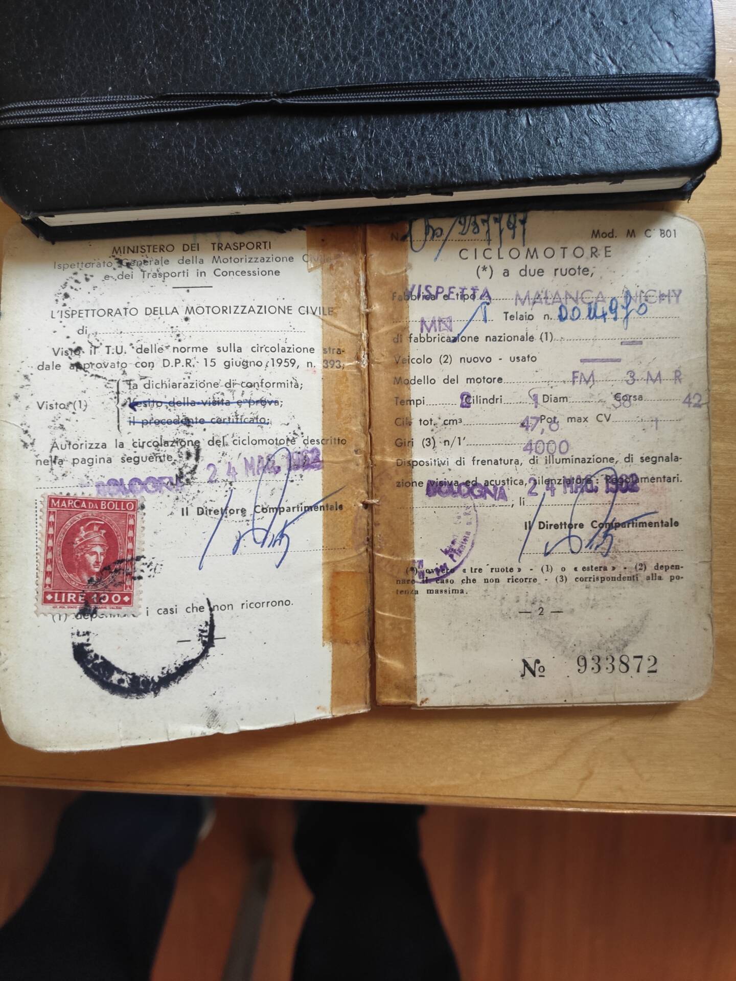 Di grande rilievo è la presenza del libretto di circolazione originale italiano. Il veicolo non è mai stato targato, aspetto coerente con il periodo di produzione, quando in Italia per questa categoria non era richiesta l’immatricolazione. Per l’acquirente odierno ciò rappresenta una documentazione autentica, ma implica anche la necessità di valutare le modalità di eventuale immatricolazione nel Paese di destinazione.