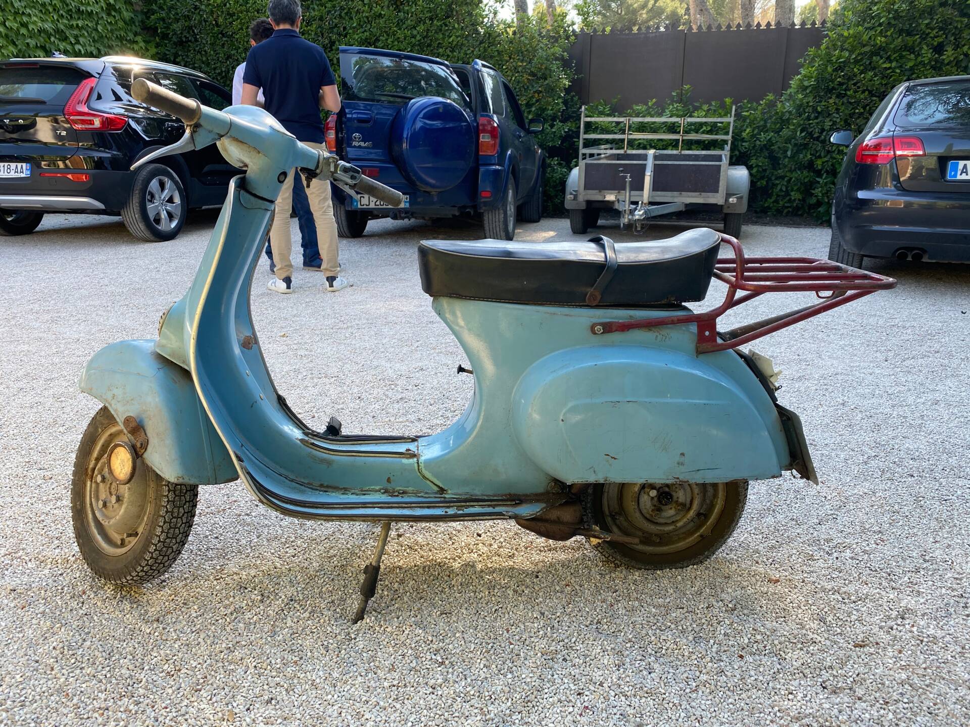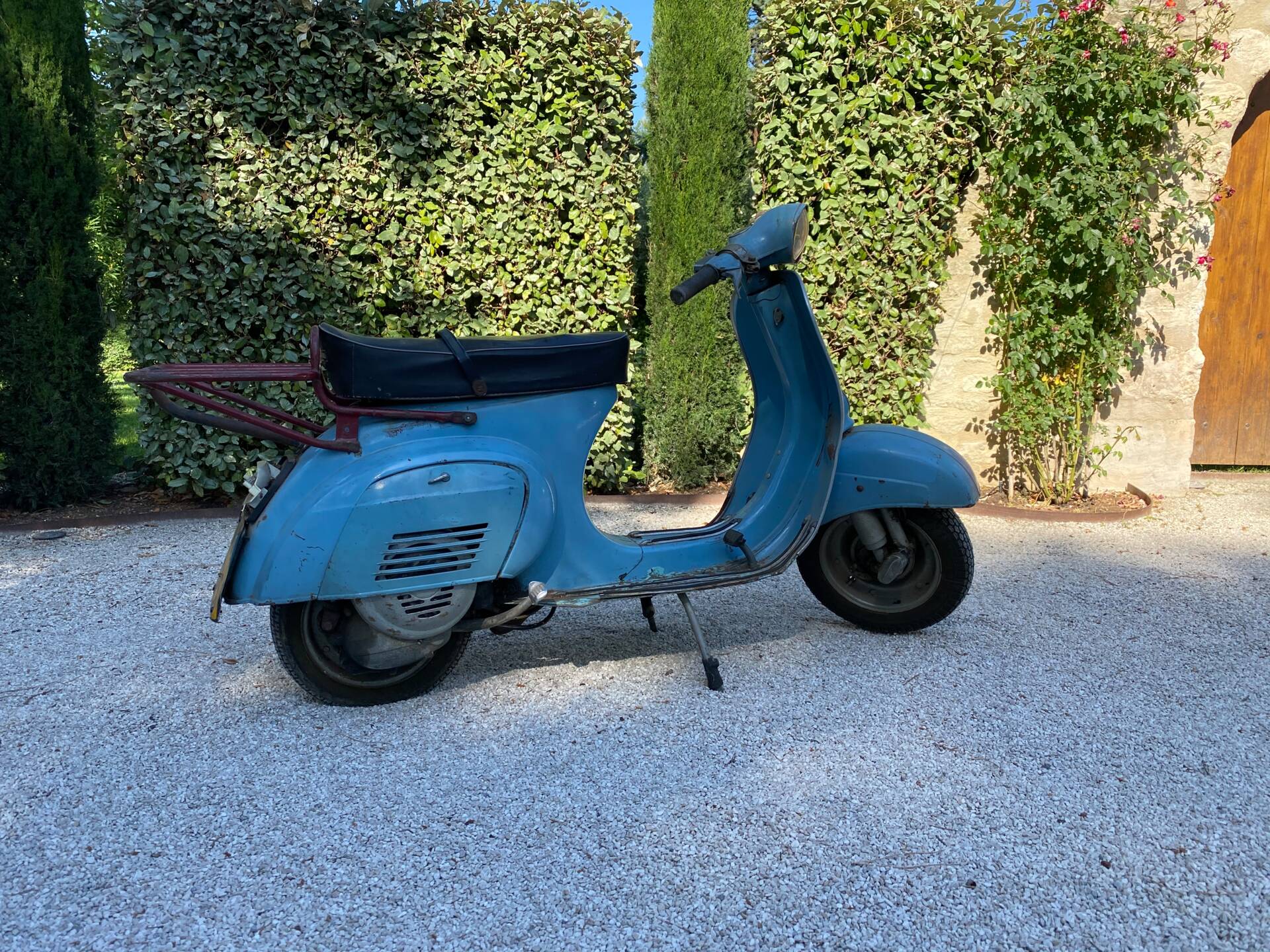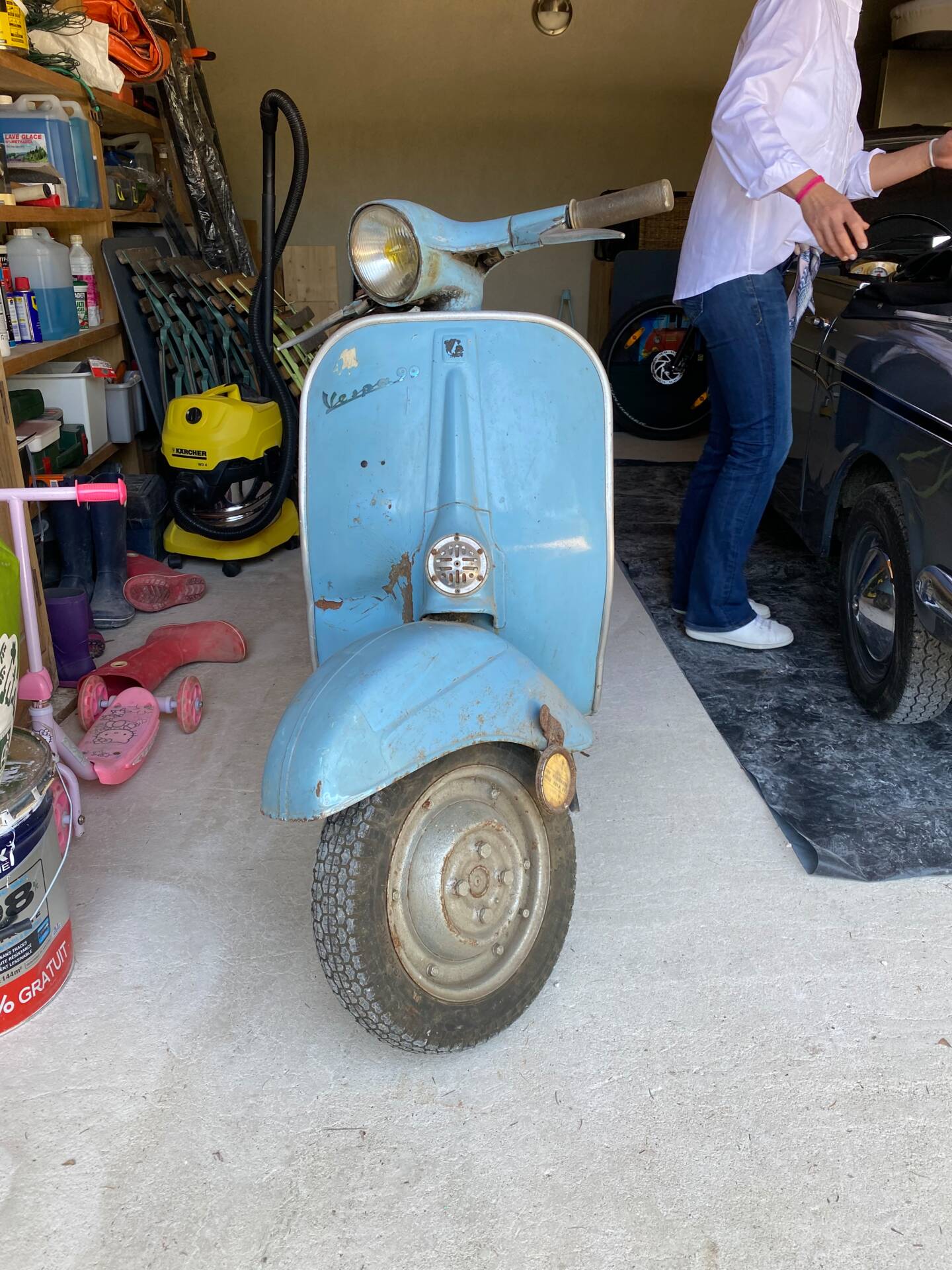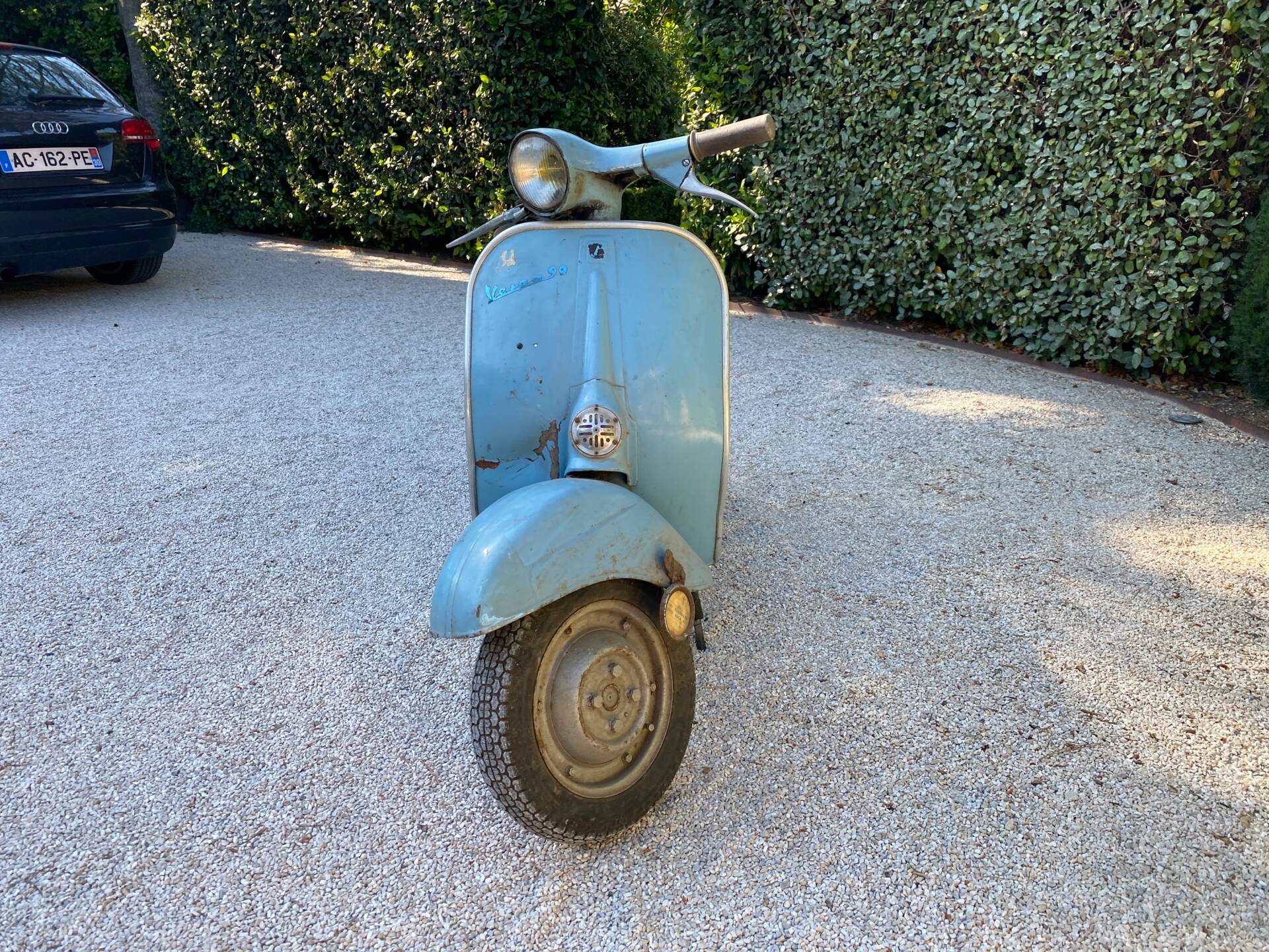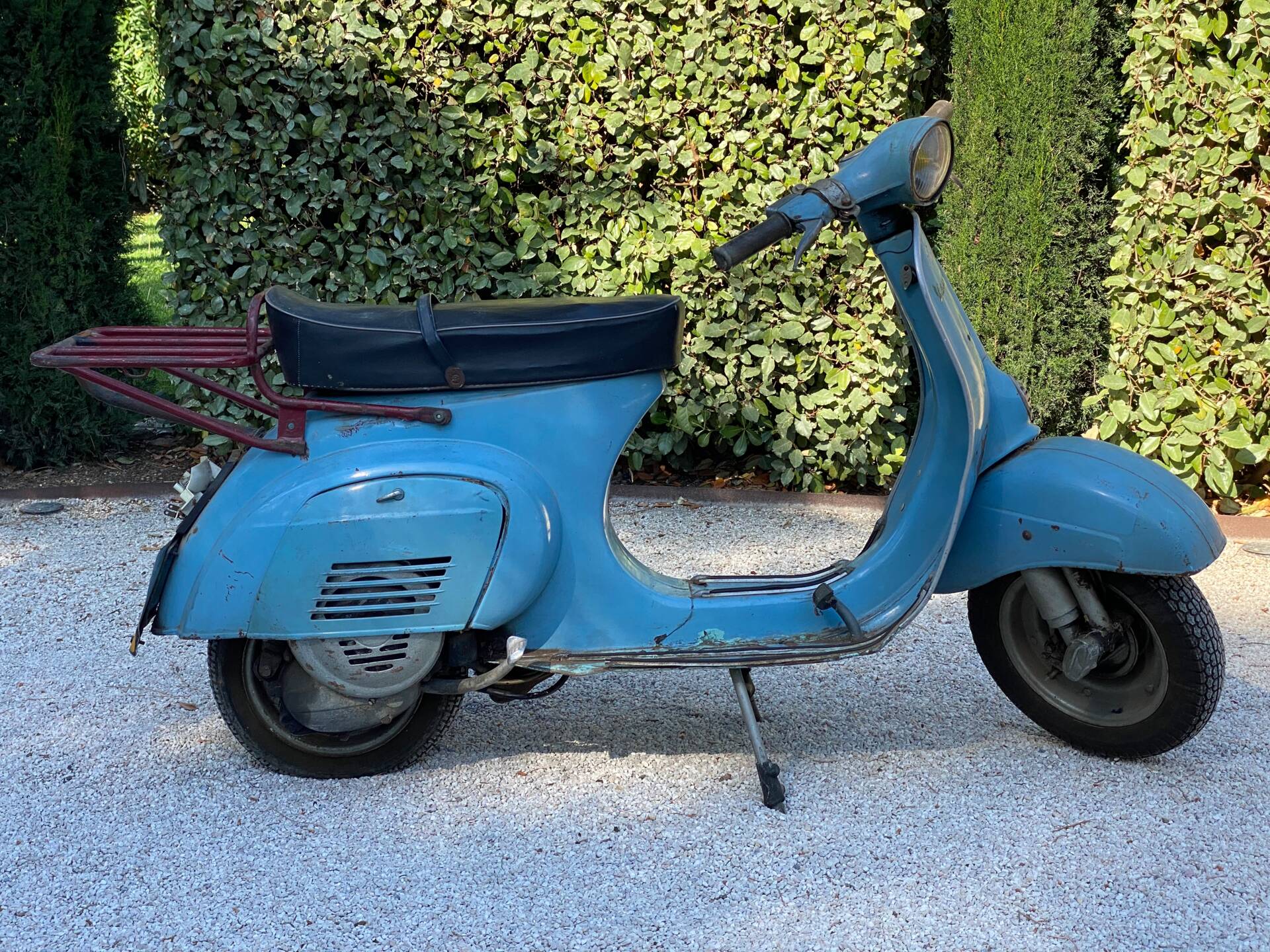 Una rarissima Vespa 90cc (tachimetro in miglia) che veniva offerta solo nel Regno Unito e negli Stati Uniti. Cambio a 3 marce. Terzo proprietario. L'ho comprata 5 anni fa dal secondo proprietario, che l'aveva acquistata a Londra da studente nei primi anni '70 e l'aveva riportata a casa ad Aix-en-Provence, dove è rimasta intatta da allora. Il motore non era bloccato ed è stato persino avviato dopo 40 anni di inattività. Tuttavia, era impossibile guidarla nelle sue condizioni attuali. Una revisione completa del motore, del cablaggio, dell'accensione (convertita a 12V), della parte superiore, della parte inferiore (tutto convertito a 125cc poiché la versione da 90cc non è più prodotta), del carburatore, dello scarico, del cambio, dei cerchi, degli pneumatici, dell'accensione, delle forcelle, dei freni, delle lampadine, del serbatoio e della sella: tutto è stato sostituito o ricondizionato. Solo la carrozzeria ha mantenuto la sua splendida patina originale. Le parti piegate sono state raddrizzate e le aree con leggera corrosione sono state riparate. Viene fornita una fattura di restauro completo (Vintage Scooter a Graveson). Tutti i pezzi originali sono stati conservati in una scatola. Il lavoro su Vintage Scooter è costato quasi 4.000 € tra ricambi e manodopera. Si avvia immediatamente e tutto funziona perfettamente. Un pezzo da collezione molto bello e raro.