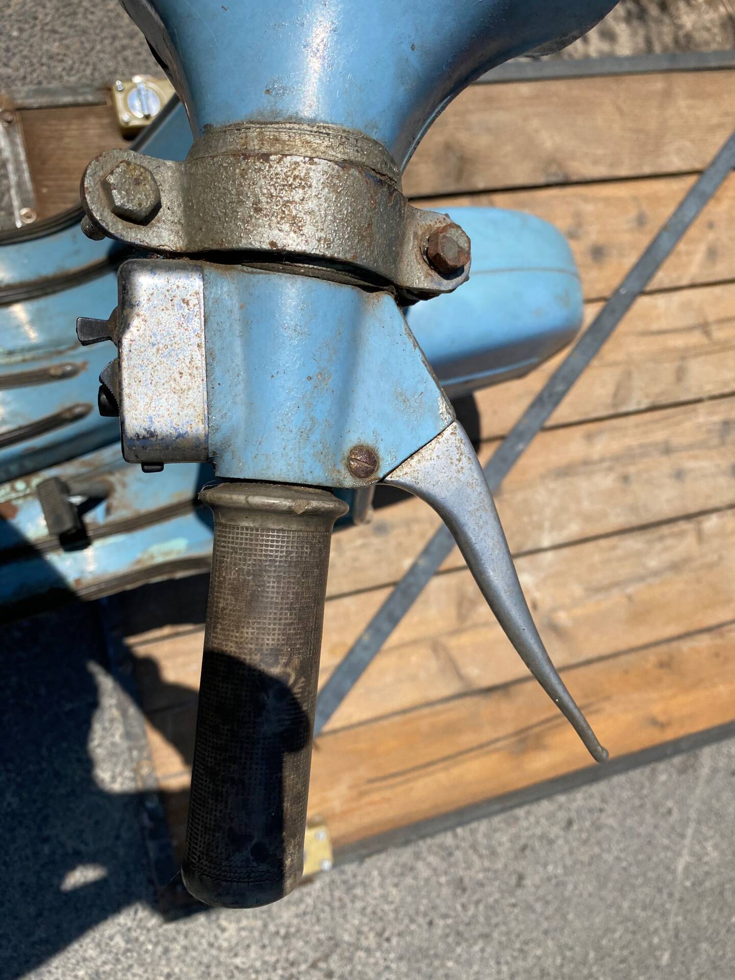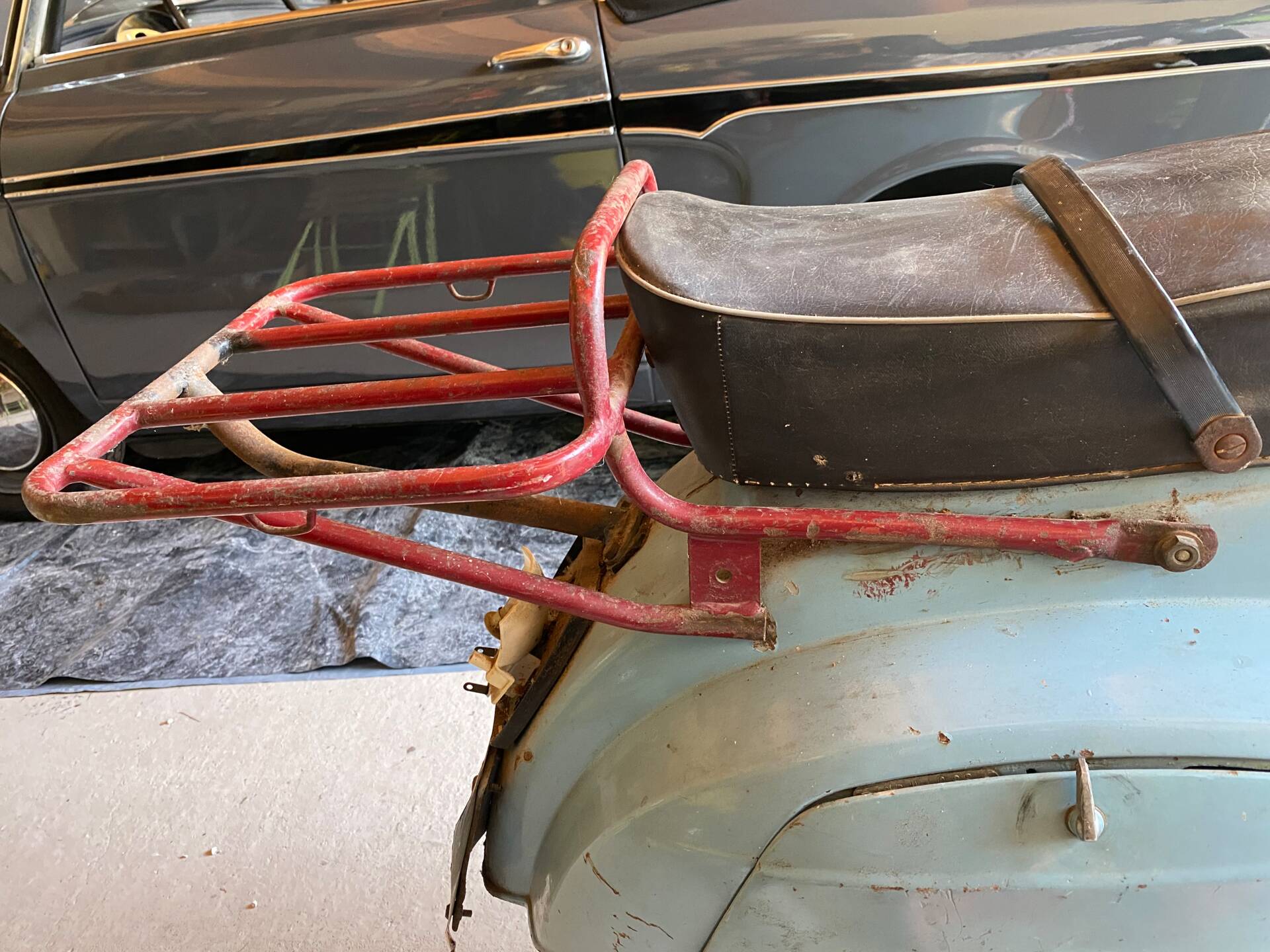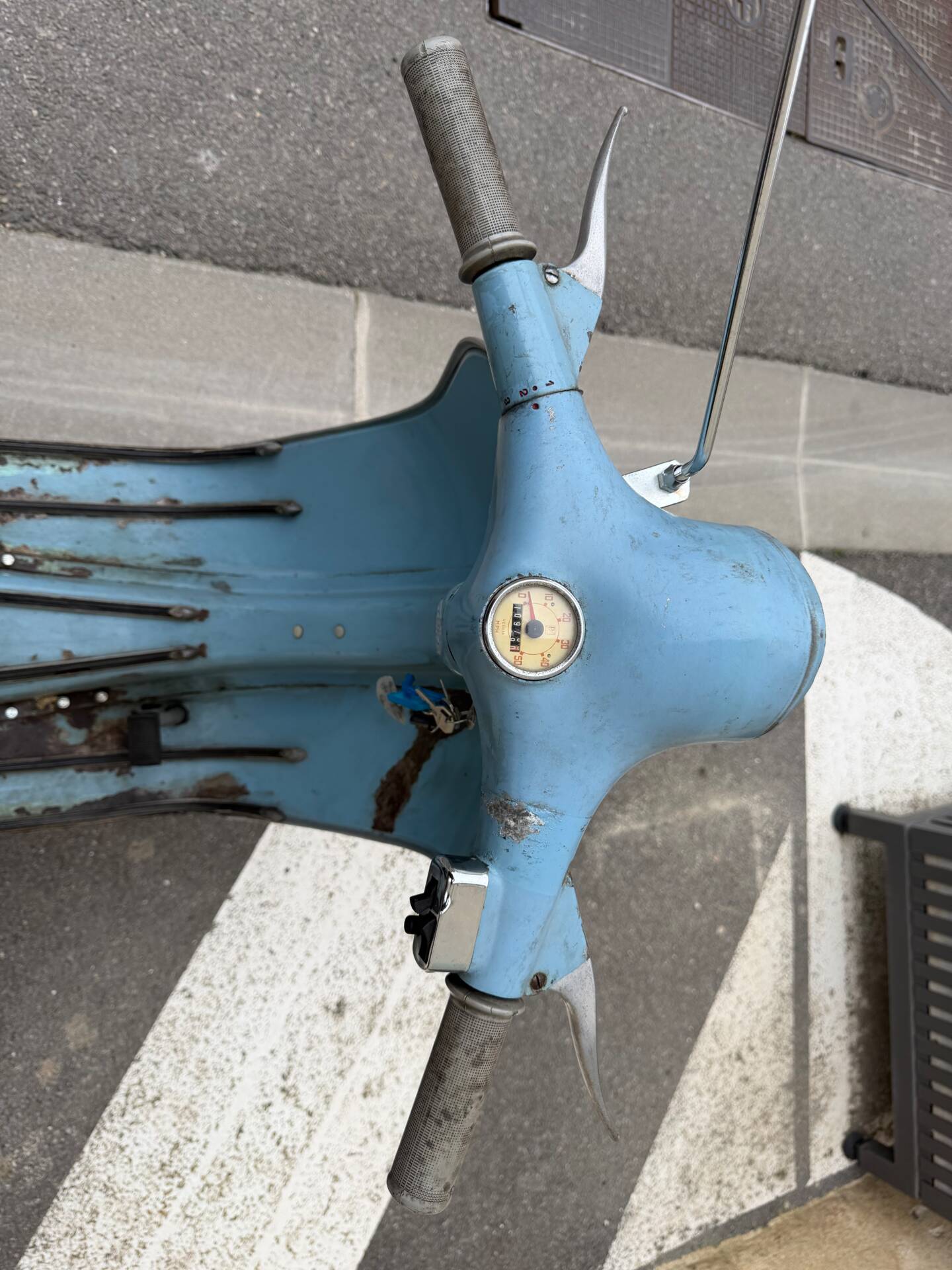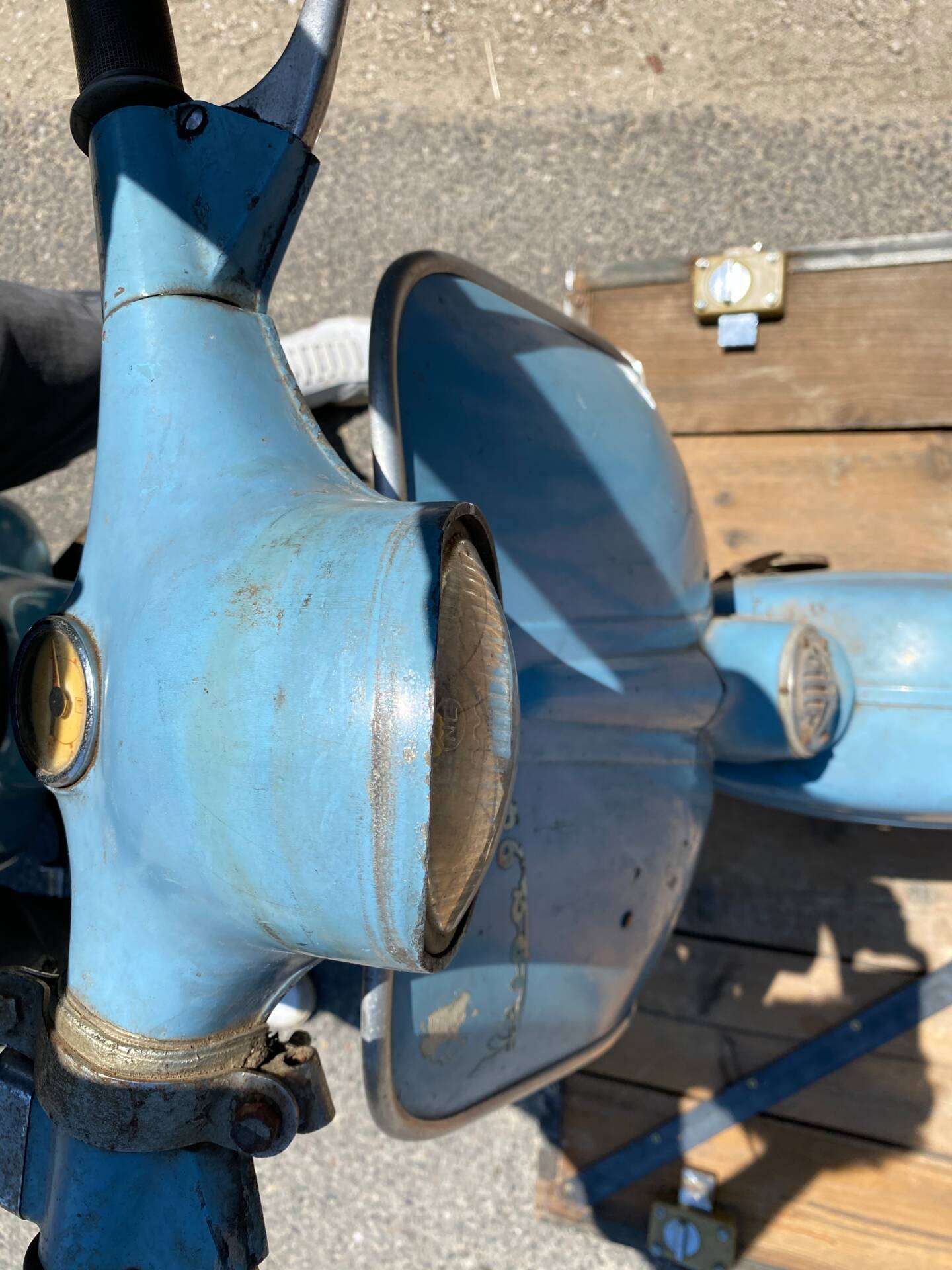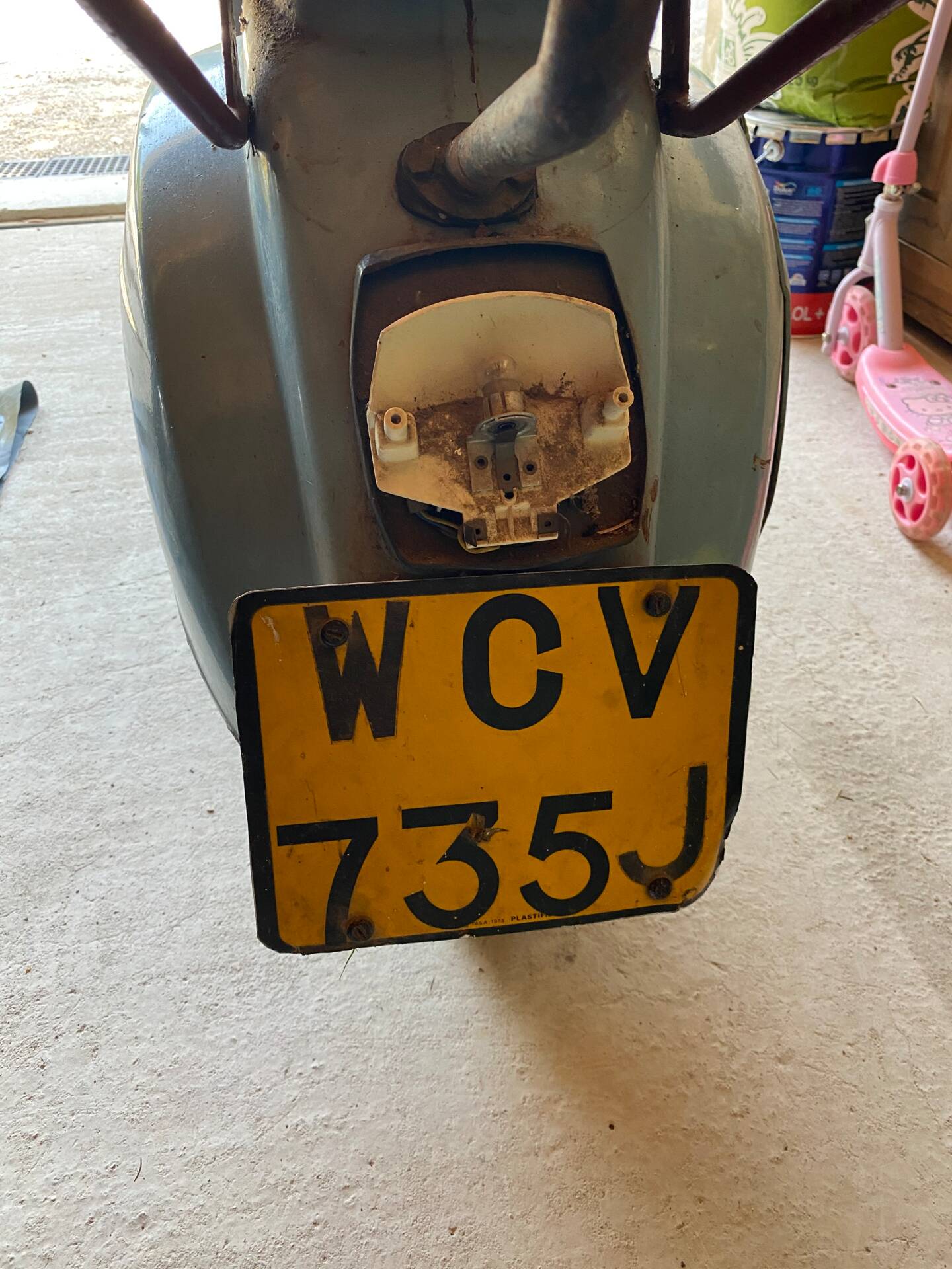 Una rarissima Vespa 90cc (tachimetro in miglia) che veniva offerta solo nel Regno Unito e negli Stati Uniti. Cambio a 3 marce. Terzo proprietario. L'ho comprata 5 anni fa dal secondo proprietario, che l'aveva acquistata a Londra da studente nei primi anni '70 e l'aveva riportata a casa ad Aix-en-Provence, dove è rimasta intatta da allora. Il motore non era bloccato ed è stato persino avviato dopo 40 anni di inattività. Tuttavia, era impossibile guidarla nelle sue condizioni attuali. Una revisione completa del motore, del cablaggio, dell'accensione (convertita a 12V), della parte superiore, della parte inferiore (tutto convertito a 125cc poiché la versione da 90cc non è più prodotta), del carburatore, dello scarico, del cambio, dei cerchi, degli pneumatici, dell'accensione, delle forcelle, dei freni, delle lampadine, del serbatoio e della sella: tutto è stato sostituito o ricondizionato. Solo la carrozzeria ha mantenuto la sua splendida patina originale. Le parti piegate sono state raddrizzate e le aree con leggera corrosione sono state riparate. Viene fornita una fattura di restauro completo (Vintage Scooter a Graveson). Tutti i pezzi originali sono stati conservati in una scatola. Il lavoro su Vintage Scooter è costato quasi 4.000 € tra ricambi e manodopera. Si avvia immediatamente e tutto funziona perfettamente. Un pezzo da collezione molto bello e raro.
