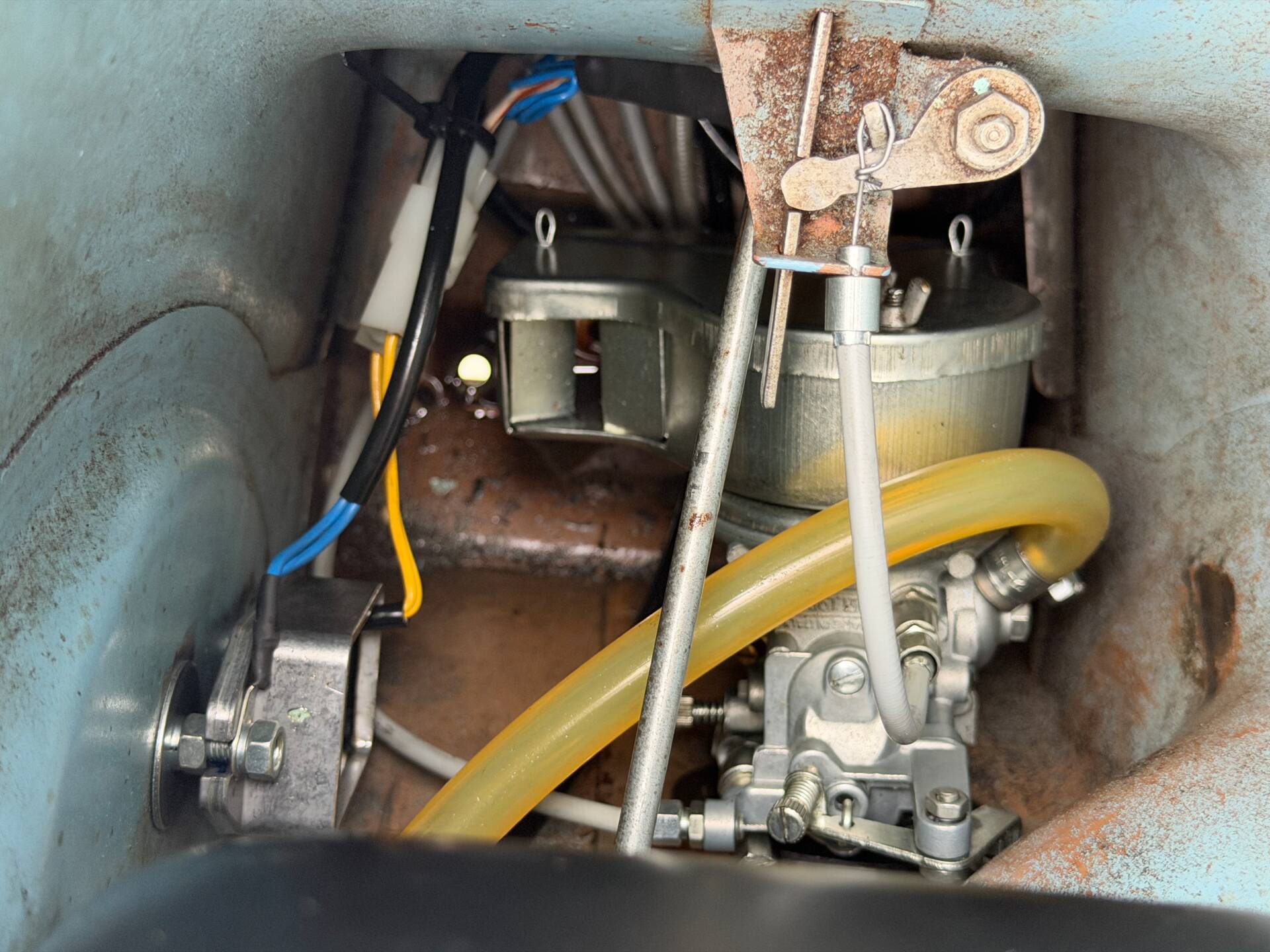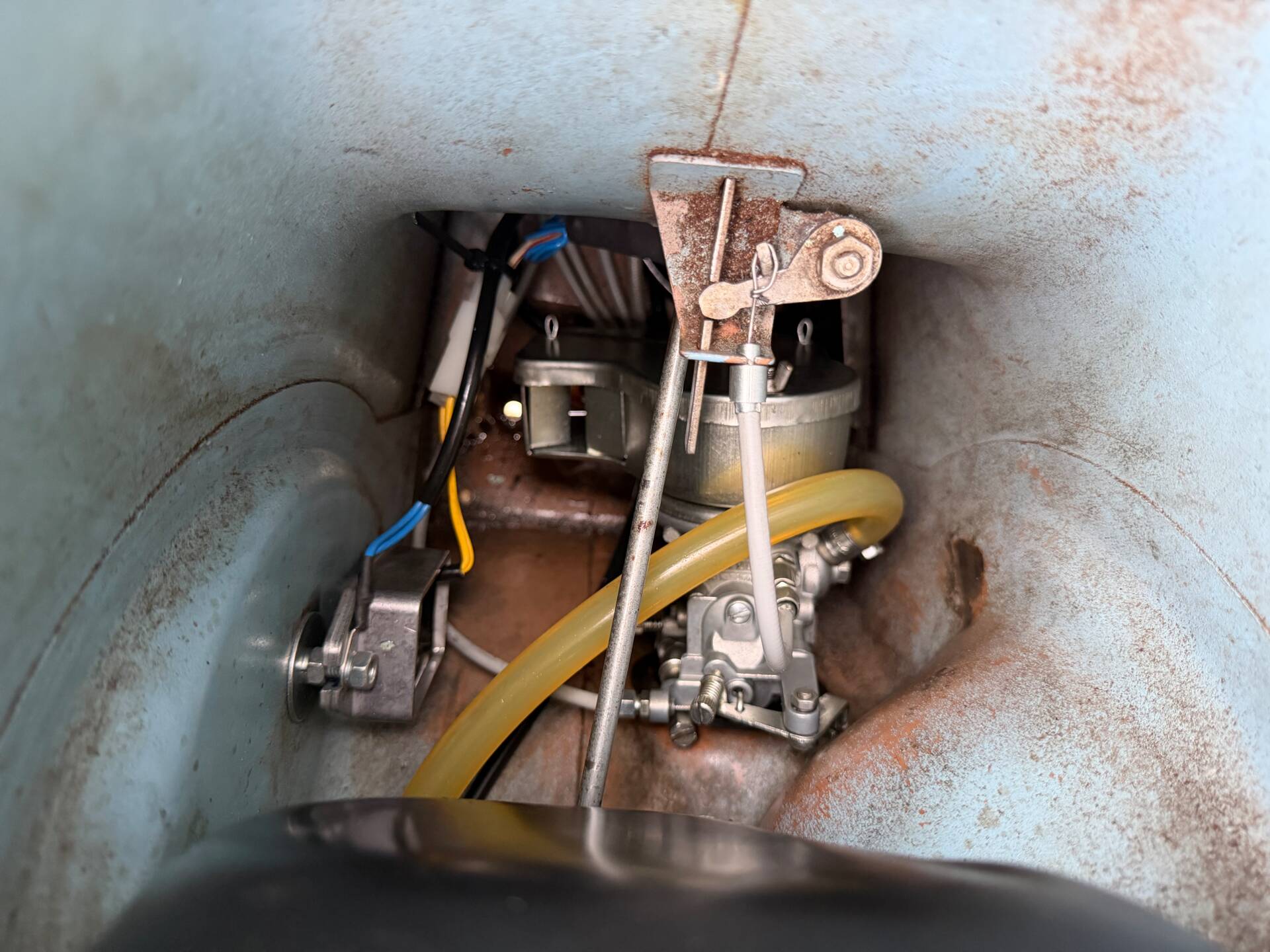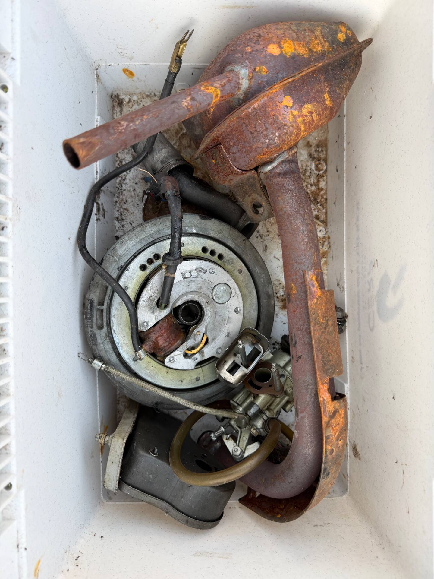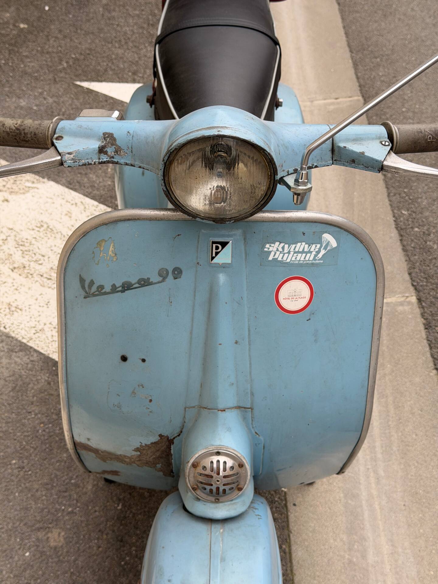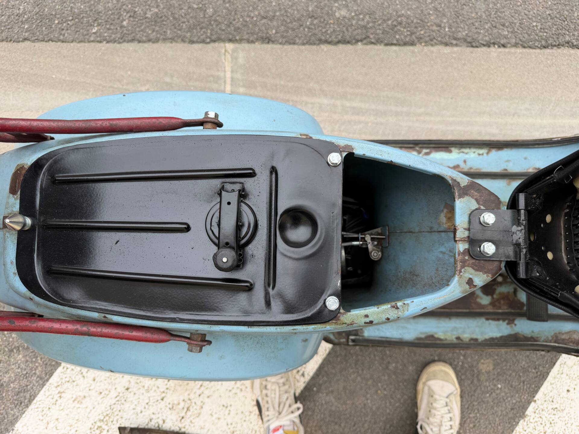 Una rarissima Vespa 90cc (tachimetro in miglia) che veniva offerta solo nel Regno Unito e negli Stati Uniti. Cambio a 3 marce. Terzo proprietario. L'ho comprata 5 anni fa dal secondo proprietario, che l'aveva acquistata a Londra da studente nei primi anni '70 e l'aveva riportata a casa ad Aix-en-Provence, dove è rimasta intatta da allora. Il motore non era bloccato ed è stato persino avviato dopo 40 anni di inattività. Tuttavia, era impossibile guidarla nelle sue condizioni attuali. Una revisione completa del motore, del cablaggio, dell'accensione (convertita a 12V), della parte superiore, della parte inferiore (tutto convertito a 125cc poiché la versione da 90cc non è più prodotta), del carburatore, dello scarico, del cambio, dei cerchi, degli pneumatici, dell'accensione, delle forcelle, dei freni, delle lampadine, del serbatoio e della sella: tutto è stato sostituito o ricondizionato. Solo la carrozzeria ha mantenuto la sua splendida patina originale. Le parti piegate sono state raddrizzate e le aree con leggera corrosione sono state riparate. Viene fornita una fattura di restauro completo (Vintage Scooter a Graveson). Tutti i pezzi originali sono stati conservati in una scatola. Il lavoro su Vintage Scooter è costato quasi 4.000 € tra ricambi e manodopera. Si avvia immediatamente e tutto funziona perfettamente. Un pezzo da collezione molto bello e raro.