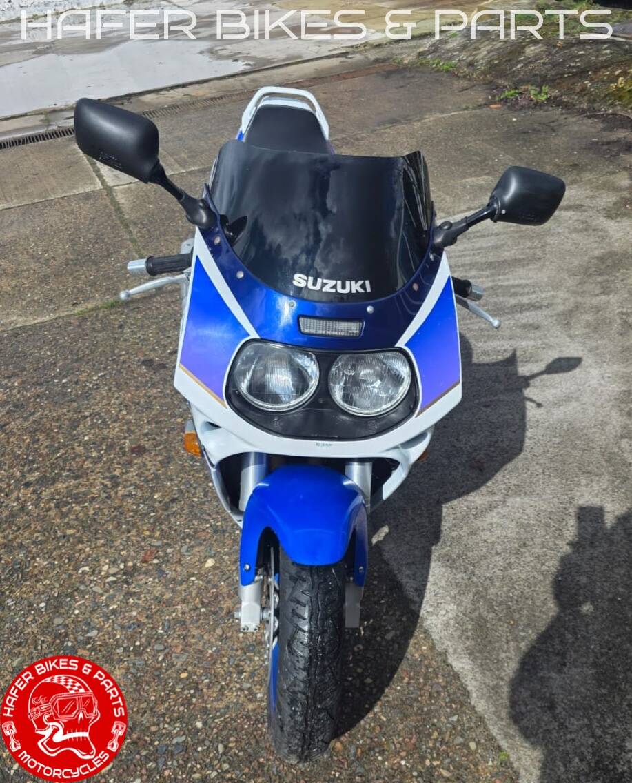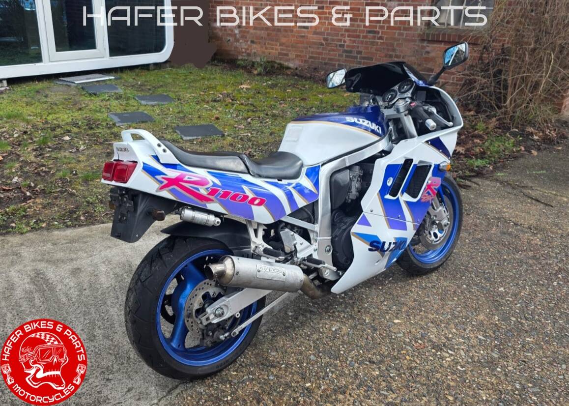 Es ist eine GSXR 1100 Mod.1992 aus 2.Hand Öl-gekühlte Version;-) in Suzuki weiß/blau. Die original 4in2 Auspuffanlage wird zusätzlich mitgegeben wobei die original Endschalldämpfer einen guten Zustand haben.