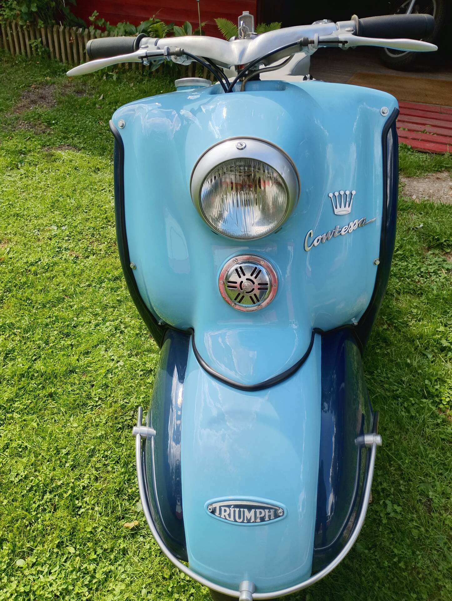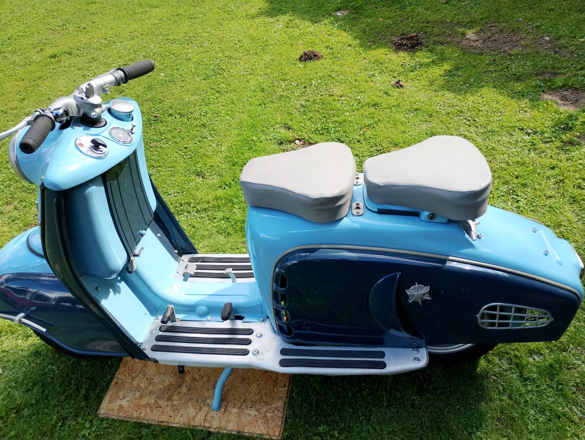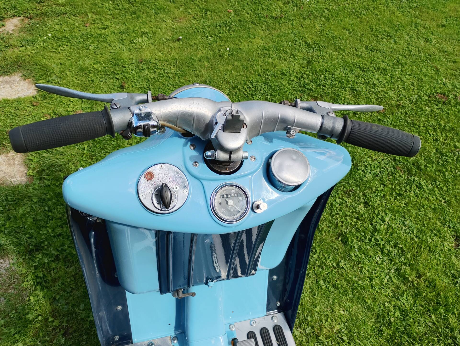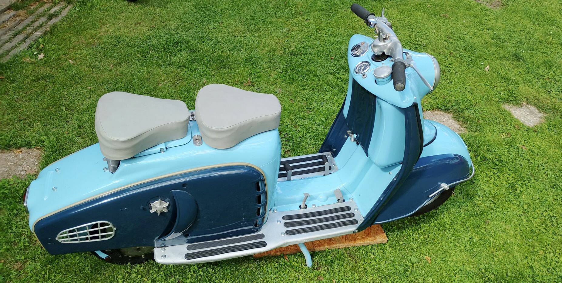 Contessa, Bj. 1955, in einem neuwertigen museumsreifen Zustand. Von dieser Contessa wurden nur ca. 5000 Stück in Nürnberg hergestellt. Das Fahrzeug ist mit Elektro(Dyna)-Starter ausgestattet. Abmeldung des Fahrzeugs 2005 im fahrbereiten Zustand. Deutscher Kfz-Brief, KFZ-Schein, alter Fahrzeugschein und Abmeldebestätigung vorhanden. Ebenso Handbuch und Ersatzteilliste vorhanden. Ein Startversuch wurde nicht vorgenommen. Das Fahrzeug ist derzeit ohne Batterien. Der Gepäckträger und Beifahrerhalterung sind dabei. Das Fahrzeug ist somit vollständig und mit wenig Aufwand fahrbereit.