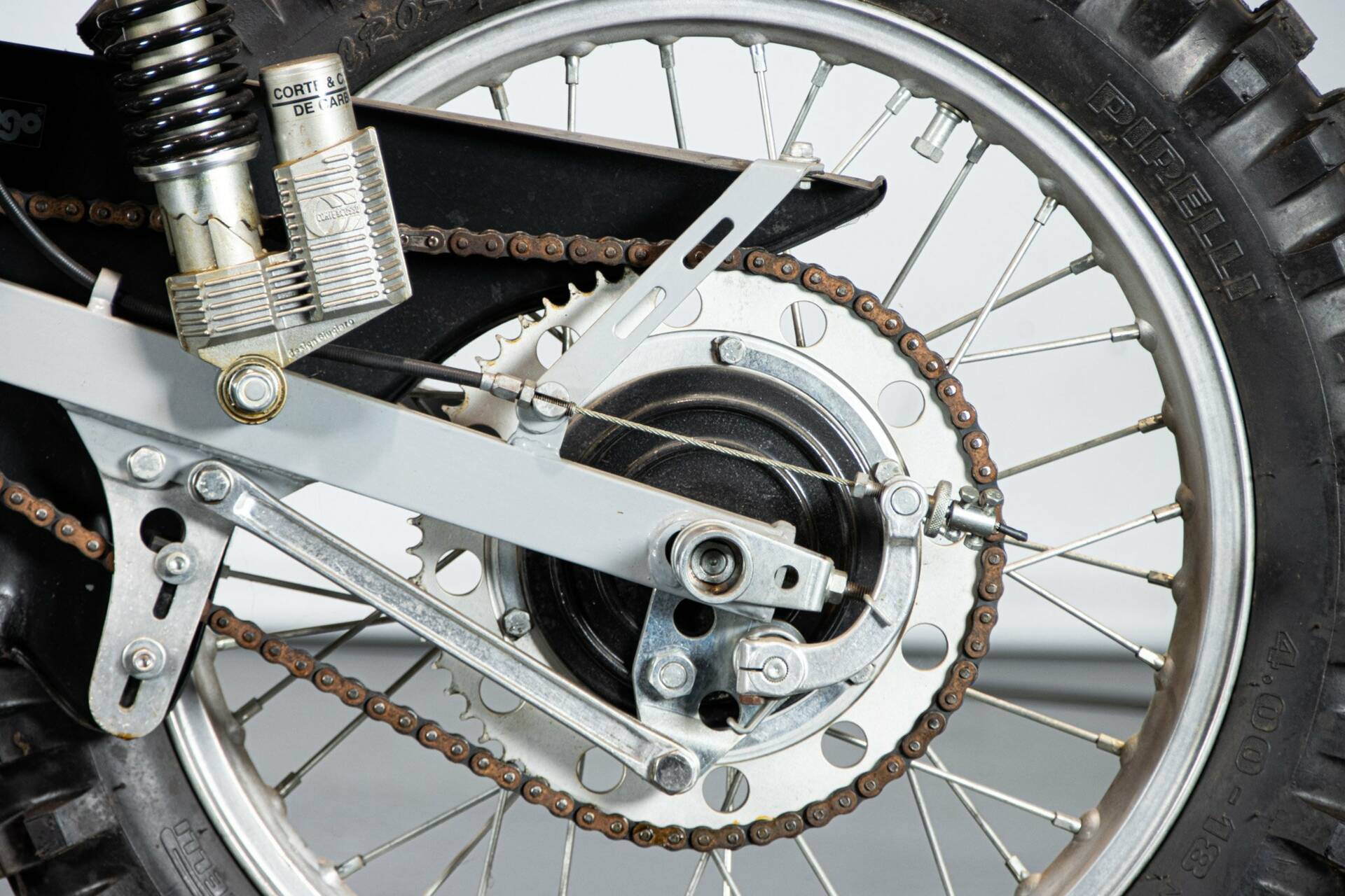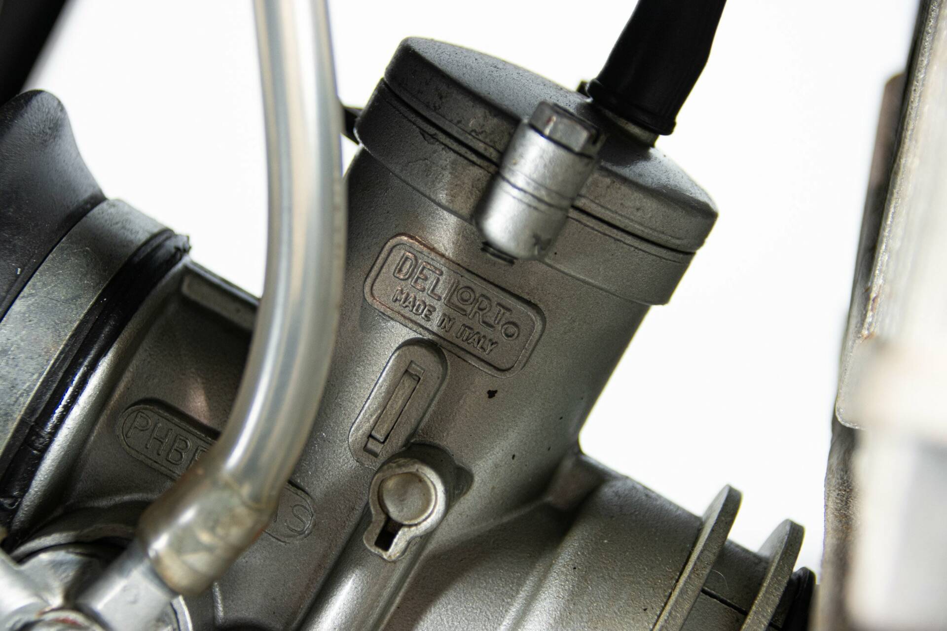 Azienda di Gallarate, famosa per i motori spigolosi e le verniciature brillanti, prodotti in proprio nella cilindrata 125cc. Restauro di Pietro Botturi (padre del famoso pilota), con tanto di firma sul parafango.