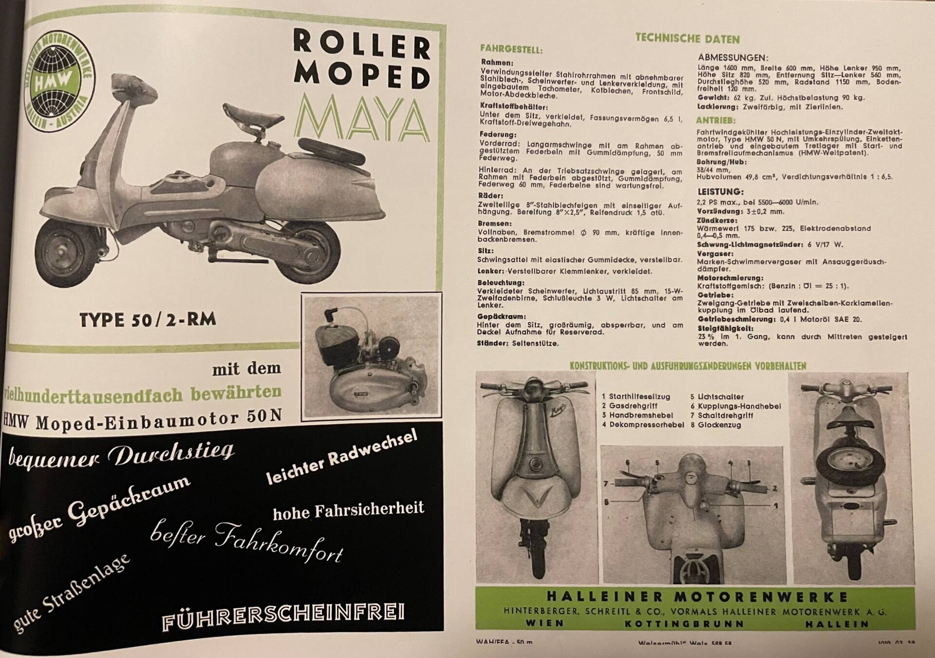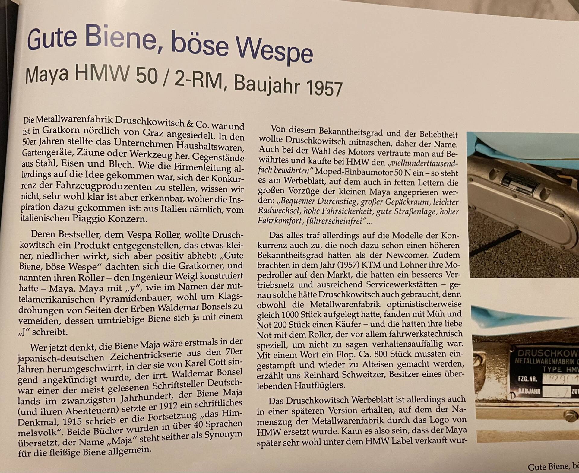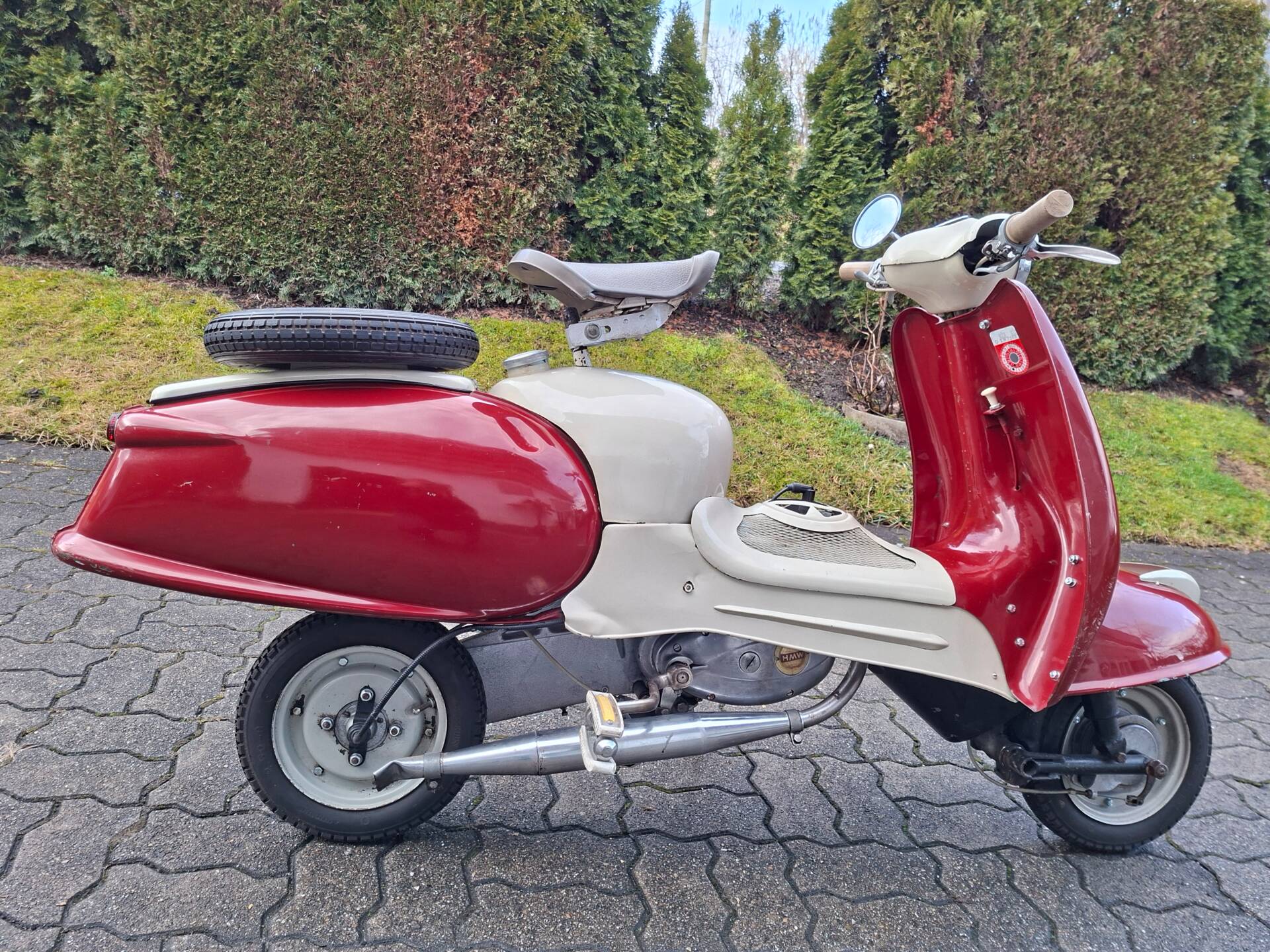 The scooter was built by Metallwarenfabrik Druschkowitsch & Co. in Gratkorn near Graz (Austria) and equipped with an HMW engine from Hallein.