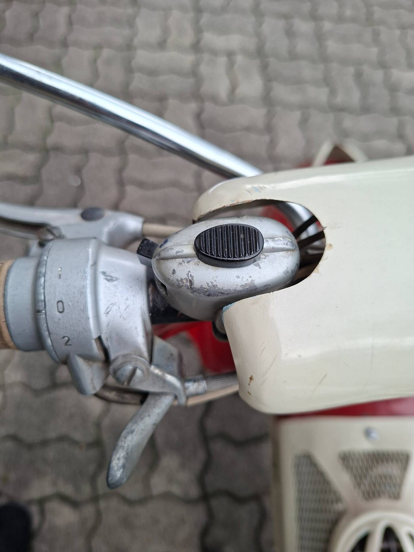 This scooter comes from first ownership within the family and was stored in a garage for many years.