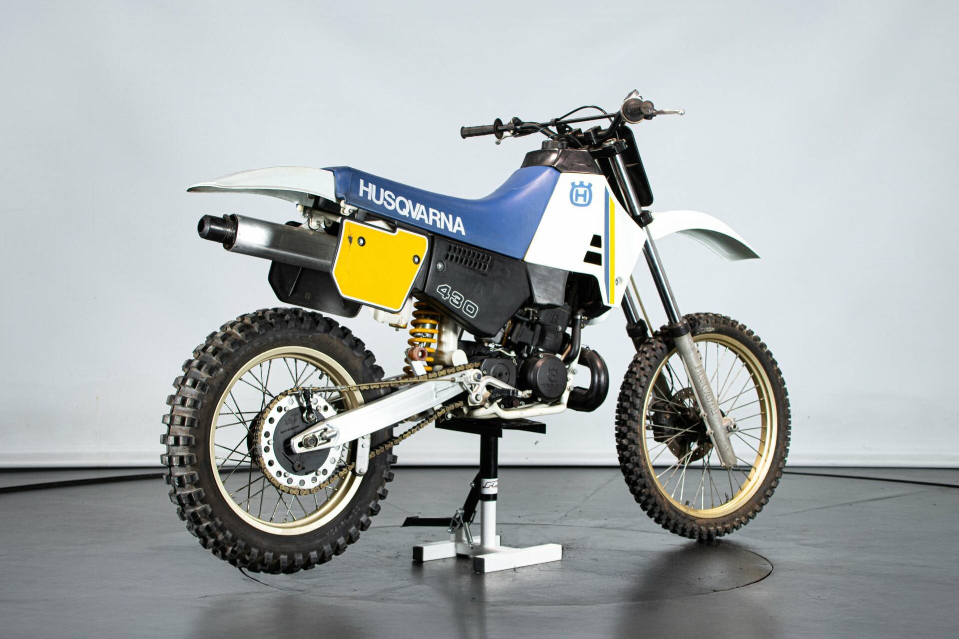 Quando si decise di ridurre la cilindrata delle 500cc due tempi da cross, a causa della difficile guidabilità, arrivo, nel 1987 una delle migliori machine da sterrato mai prodotte. Husqvarna 430 è questo. Potente in ogni range di utilizzo, difficile tenerla con la ruota anteriore a terra. Rispetto alla sorellina 400, minori vibrazioni, frizione rinforzata, sospensioni migliorate, comparto freni più perfomante. Sella lunga per utilizzarla tutti i giorni. Una di quelle moto che ti rende un pilota piu veloce a prescindere. Questo esemplare restaurato è perfetto. Da vedere.