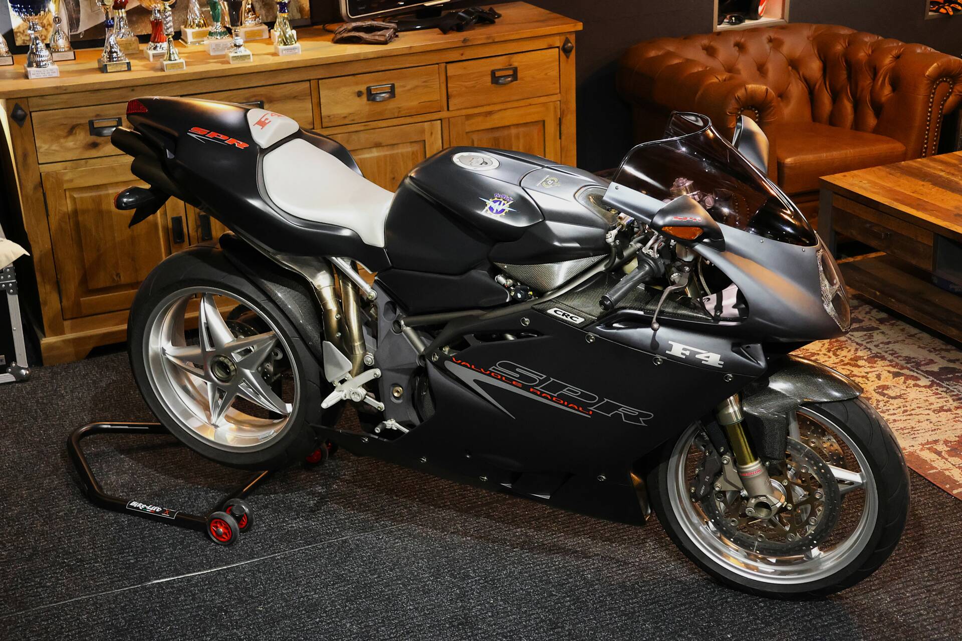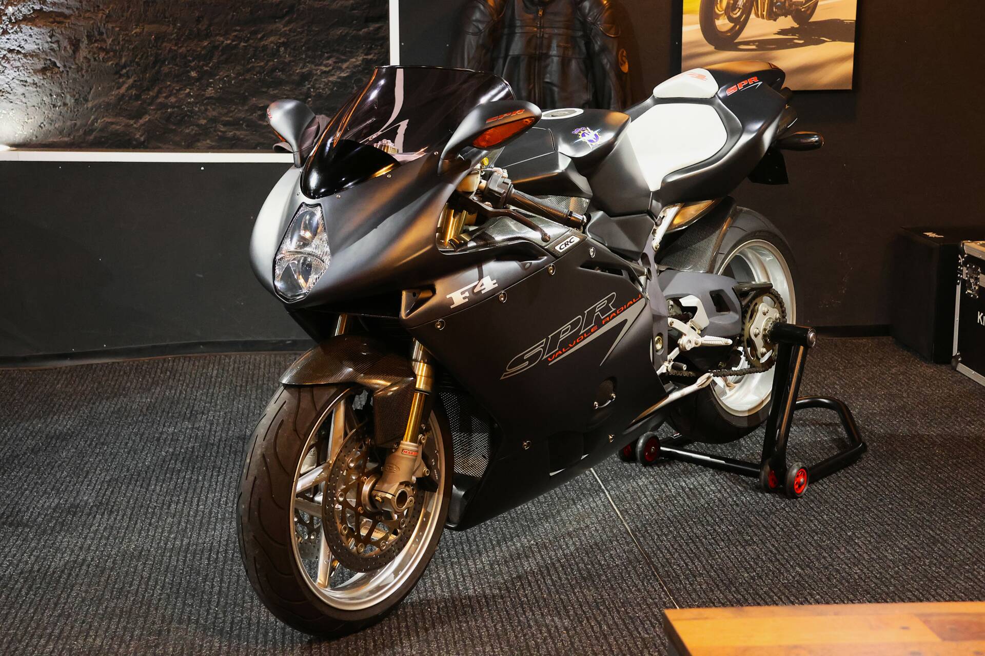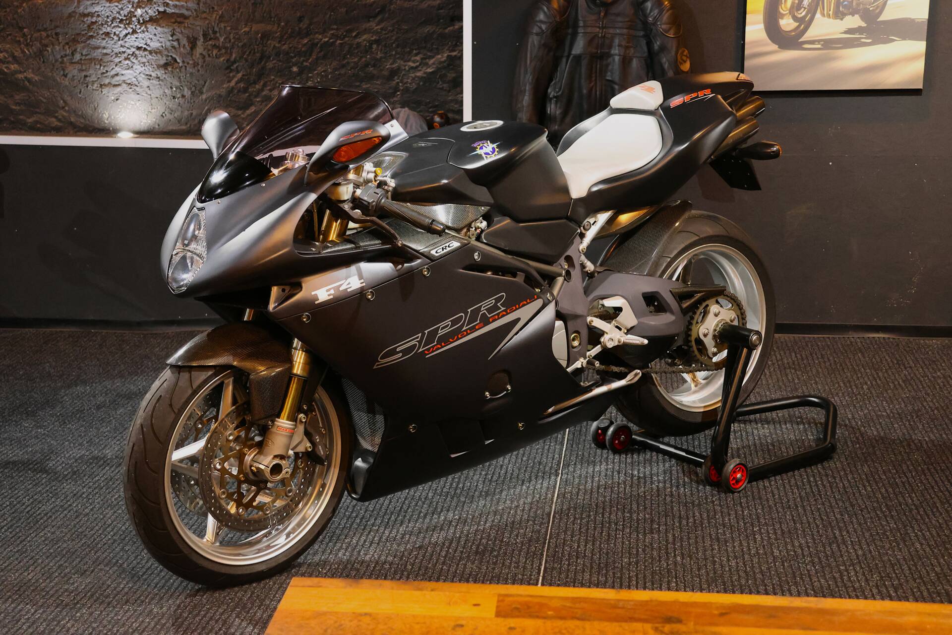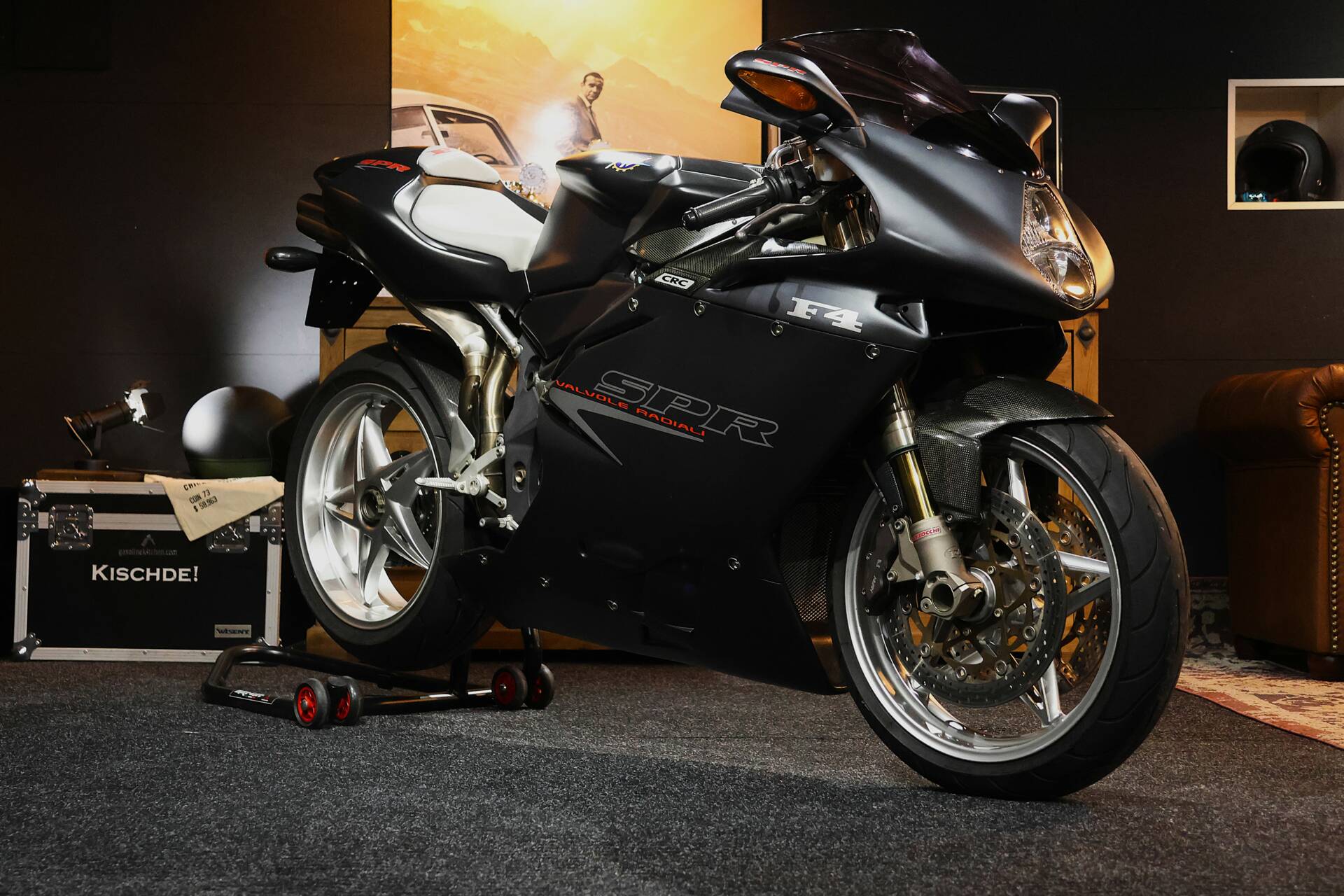 Technisch gesehen ist die «SPR» die finale Evolutionsstufe der 750er, bevor die F4 1000 auf den Markt kam. Die Konstrukteure von MV überarbeiteten den Zylinderkopf, verbauten Schmiedekolben sowie schärfere Nockenwellen, erhöhten die Verdichtung auf 13:1, passten die Motorenelektronik entsprechend an, verstärkten die Kupplung und verkürzten die Getriebeabstufungen. Das Resultat dieses rennsportlichen Vierzylinders mit radial angeordneten Ventilen sind 143 PS und atemberaubende 13`900 U/min Maximaldrehzahl. Auch auf Seiten des Fahrwerks gab es für die «SPR» eine Aufwertung. Vorne federt und dämpft eine edle, titan-nitrit-beschichtete Marzocchi-Gabel, hinten kümmert sich ein Racing-Federbein von Sachs um die Fahrbahnunebenheiten. Beide Komponenten selbstverständlich voll einstellbar. Auch sind mehrere Bauteile in Karbon gefertigt. Ein weiteres Erkennungsmerkmal ist der weisse Drehzahlmesser sowie natürlich die nummerierte Plakette auf der Gabelbrücke. Die 300 Exemplare, welche ausschliesslich in Matt-Schwarz mit silbernen Felgen zu haben war, wurden zwischen Juni und Dezember 2003 gebaut.