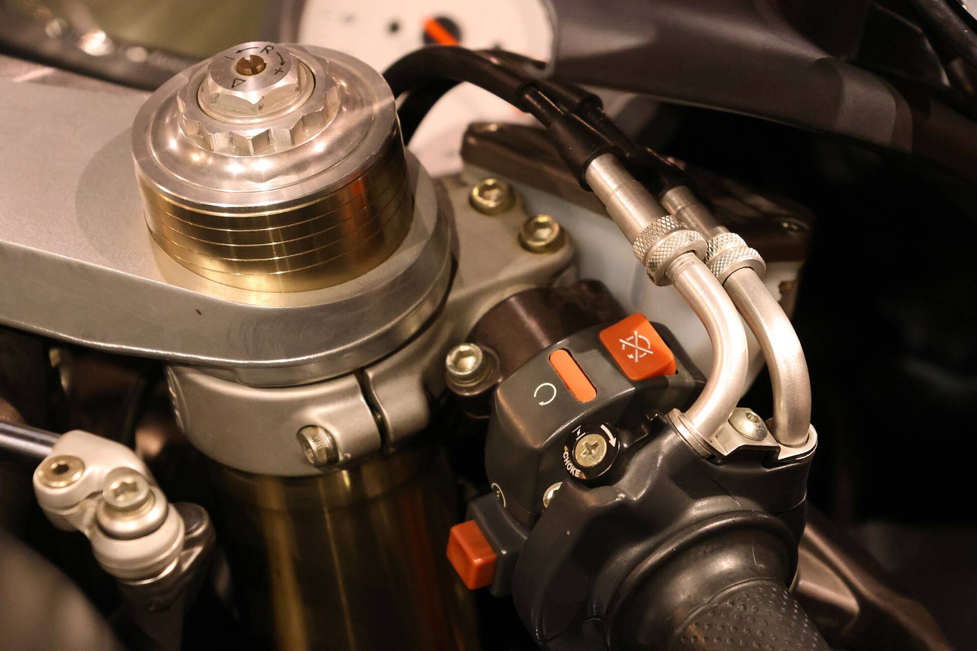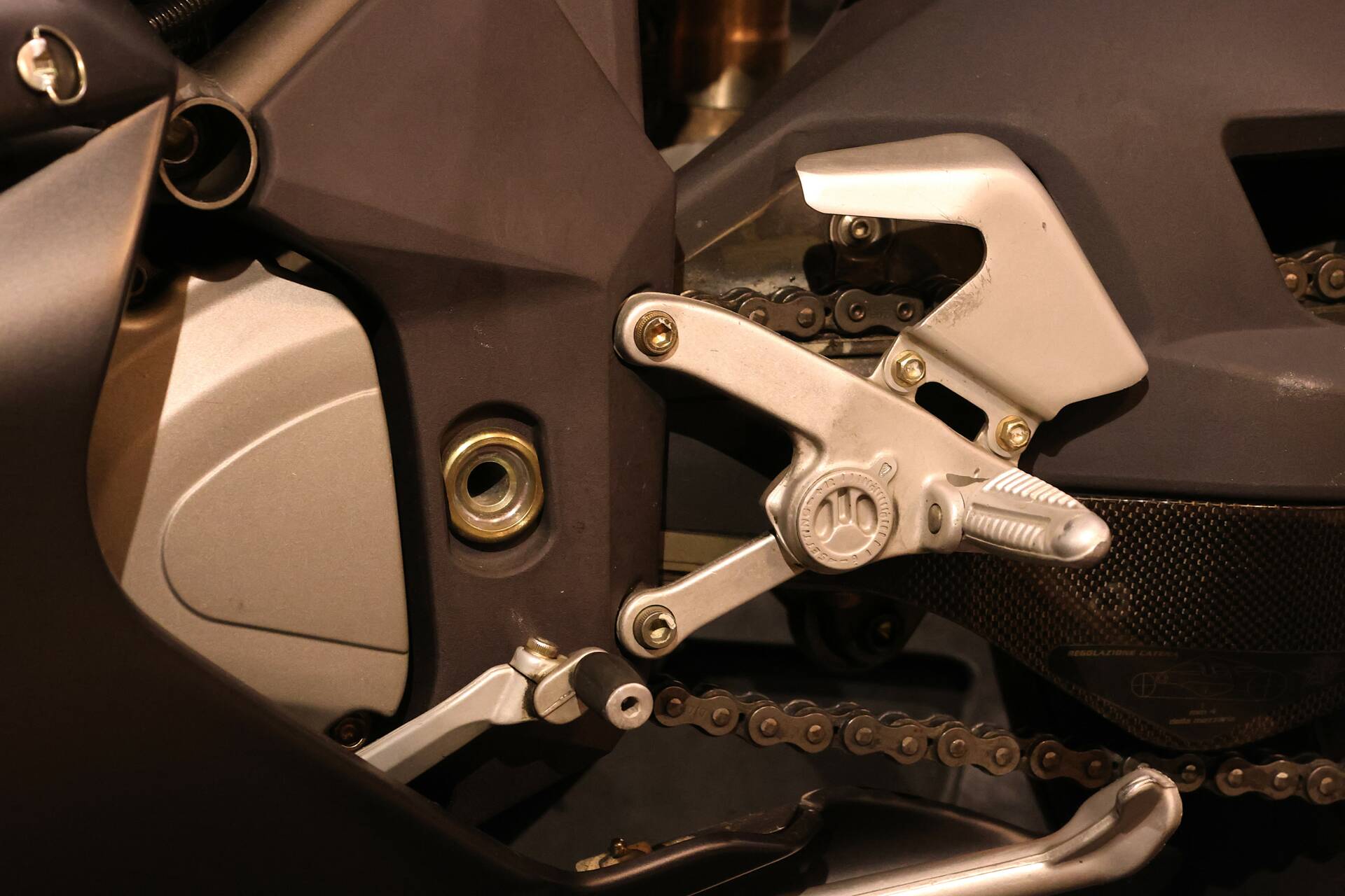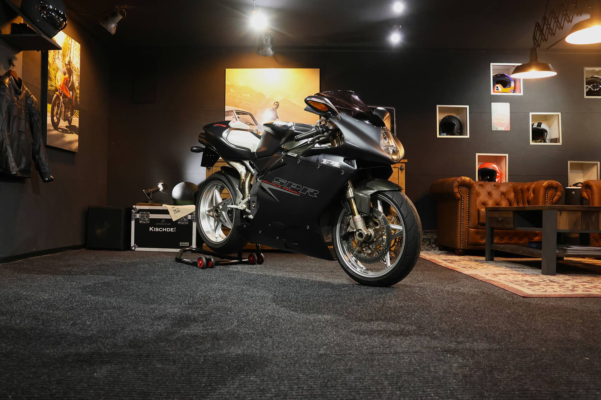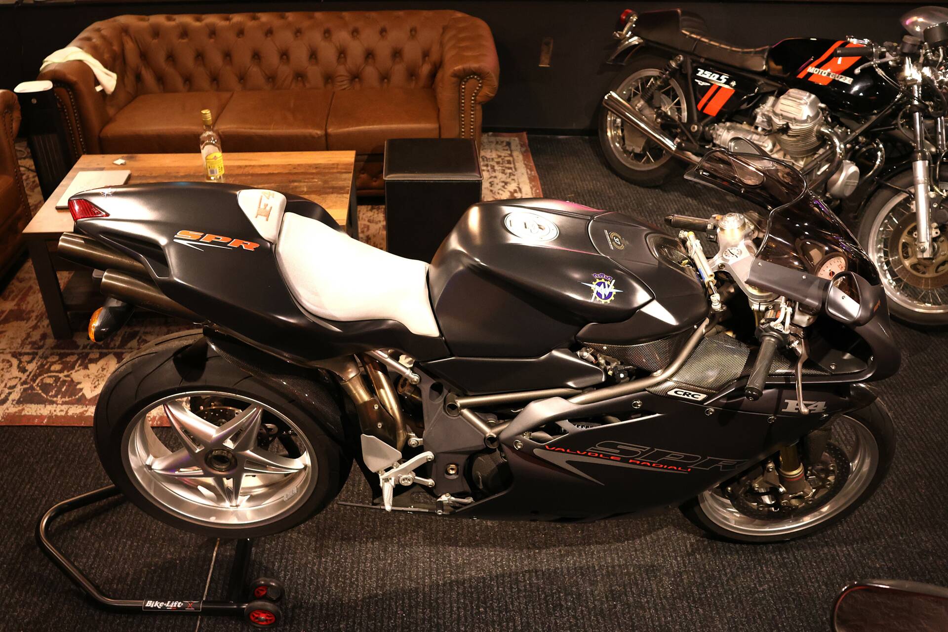 Technisch gesehen ist die «SPR» die finale Evolutionsstufe der 750er, bevor die F4 1000 auf den Markt kam. Die Konstrukteure von MV überarbeiteten den Zylinderkopf, verbauten Schmiedekolben sowie schärfere Nockenwellen, erhöhten die Verdichtung auf 13:1, passten die Motorenelektronik entsprechend an, verstärkten die Kupplung und verkürzten die Getriebeabstufungen. Das Resultat dieses rennsportlichen Vierzylinders mit radial angeordneten Ventilen sind 143 PS und atemberaubende 13`900 U/min Maximaldrehzahl. Auch auf Seiten des Fahrwerks gab es für die «SPR» eine Aufwertung. Vorne federt und dämpft eine edle, titan-nitrit-beschichtete Marzocchi-Gabel, hinten kümmert sich ein Racing-Federbein von Sachs um die Fahrbahnunebenheiten. Beide Komponenten selbstverständlich voll einstellbar. Auch sind mehrere Bauteile in Karbon gefertigt. Ein weiteres Erkennungsmerkmal ist der weisse Drehzahlmesser sowie natürlich die nummerierte Plakette auf der Gabelbrücke. Die 300 Exemplare, welche ausschliesslich in Matt-Schwarz mit silbernen Felgen zu haben war, wurden zwischen Juni und Dezember 2003 gebaut.