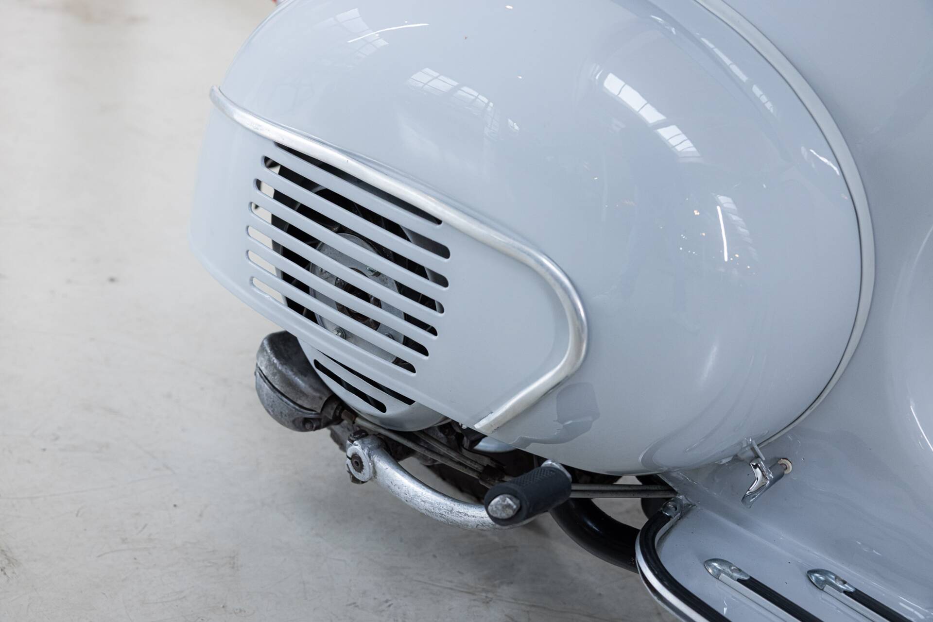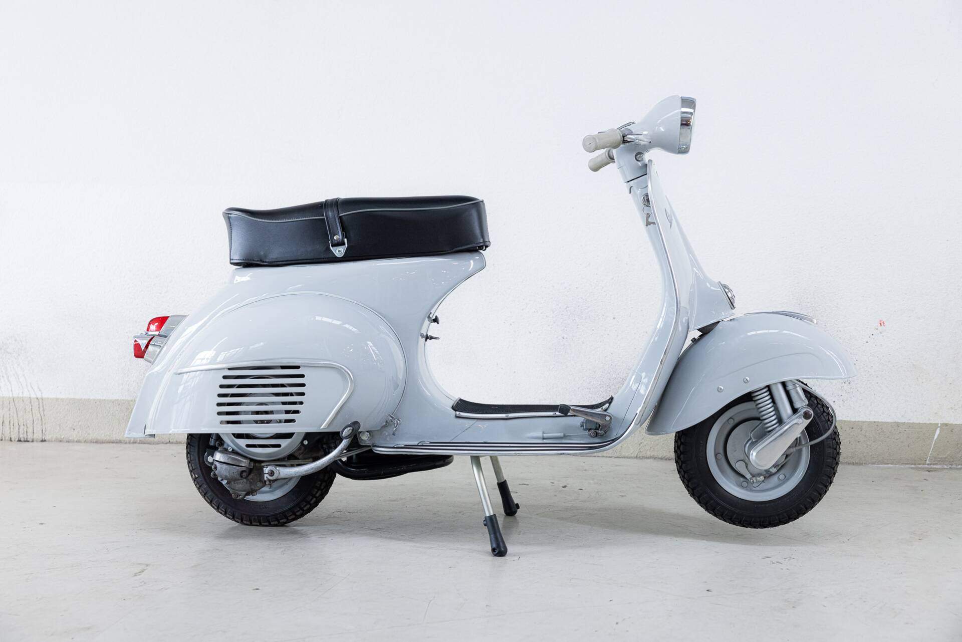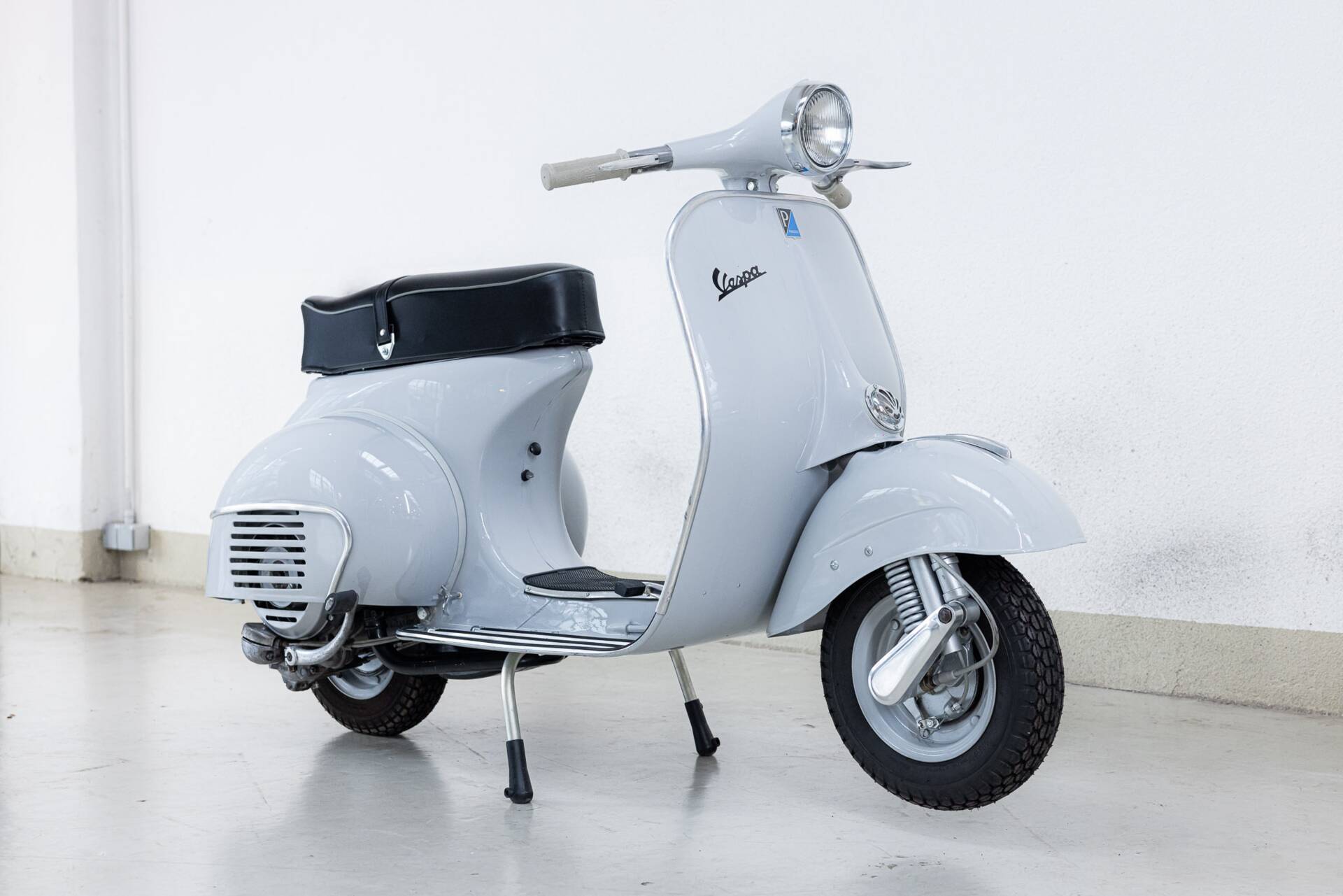 This particular example, VIN 018285, has been fully professionally restored and is in absolute top condition. Every detail, from the glossy paint to the perfectly restored chrome accents, exudes authentic Italian flair. The black leather seat and original footplates make this Vespa a true visual delight, while also ensuring it rides exactly as Enrico Piaggio intended in 1964.