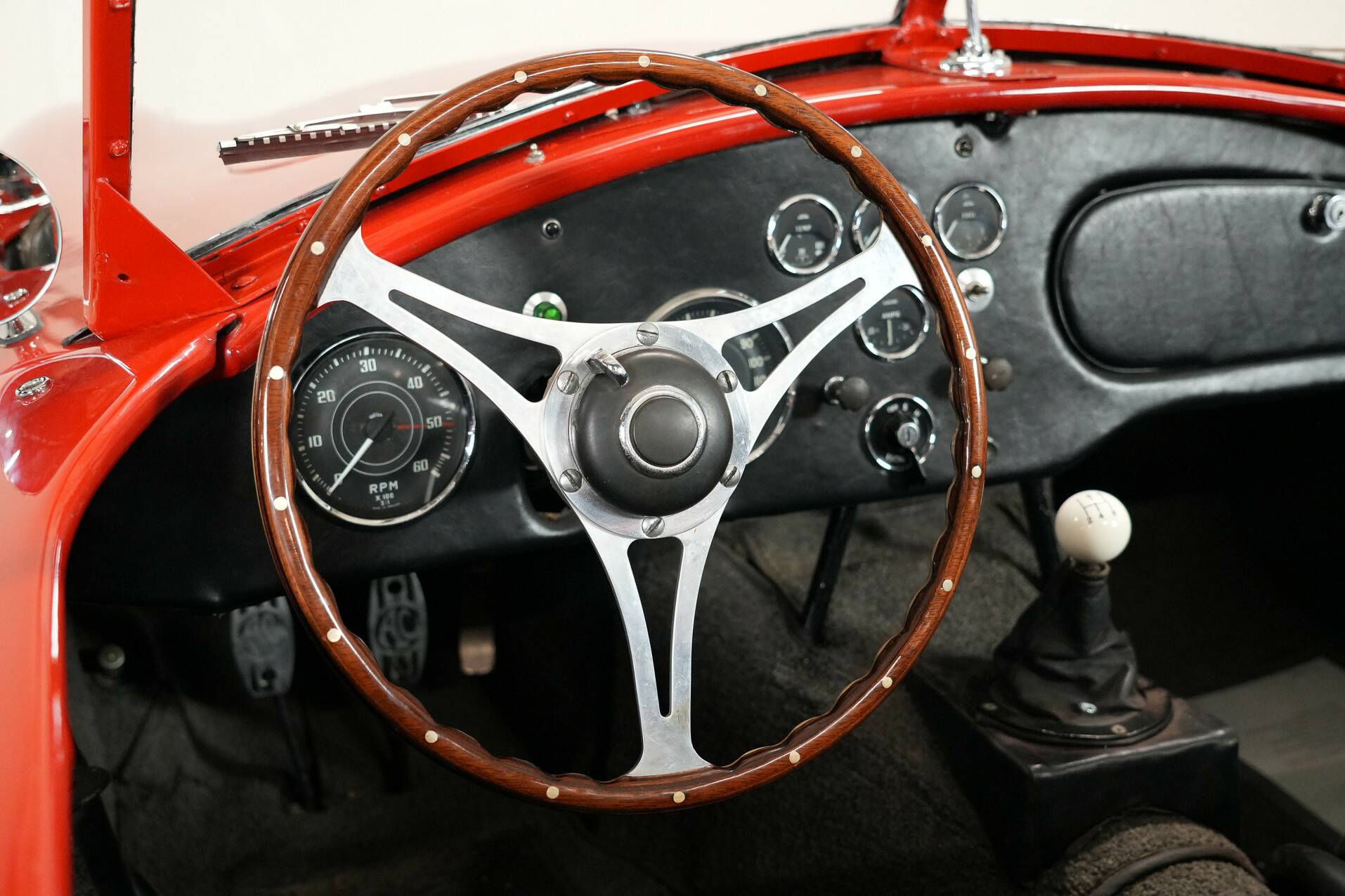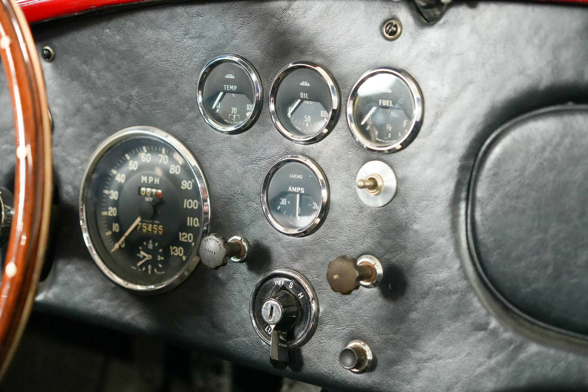 Deze AC wordt geleverd met een extra chromen spaakwiel van verschillende afmetingen en een rode hardtop. Hij mist de bogen voor de motorkap. Vandaag de dag geeft de teller 75 039 mijl aan, wat aantoont hoe spaarzaam de auto de afgelopen 17 jaar is gebruikt, met slechts 2 570 mijl! Dit is een interessant voertuig dat de discrete elegantie van de originele AC Ace combineert met de legendarische kracht van de Cobra V8 Ford-motor. Een ingetogen maar explosieve cocktail!