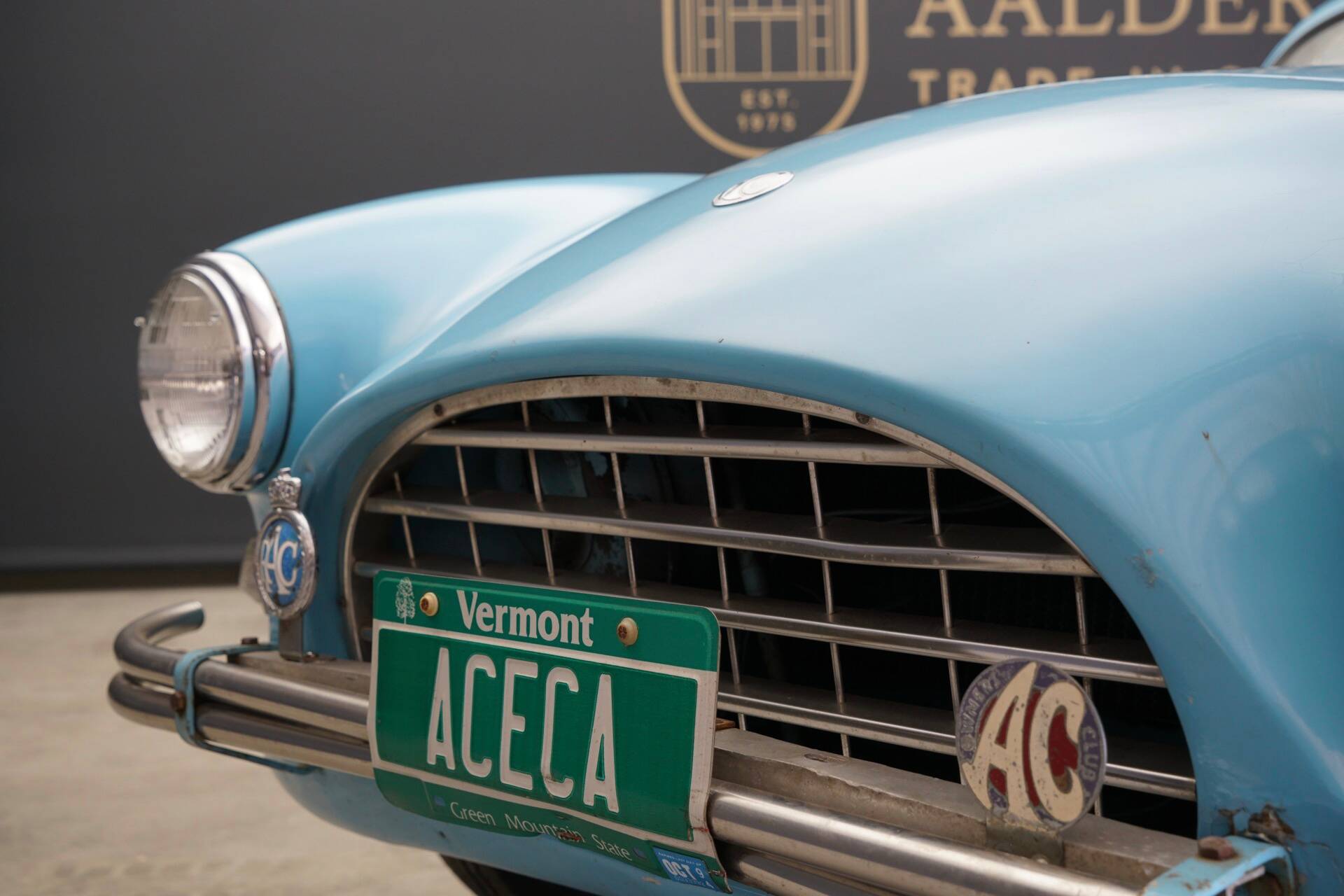 DIT VOERTUIG BEVINDT ZICH IN ONZE DEPENDANCE EN IS ENKEL - ALLEEN / UITSLUITEND OP AFSPRAAK TE BEZICHTIGEN. Trade-in car. Deze AC Aceca werd in 1963 nieuw geleverd. Het betreft hier chassisnummer AEX796. Als we het chassisnummer gaan ontleden leren we dat de "AE" staat voor een AC die is gebouwd met een AC motor (er waren ook versies met een Bristol motor en zelfs een paar auto's werden voorzien van Ford motoren). De "X" staat voor een auto die was bedoeld voor Export en dan hebben we nog de getallen die corresponderen met het nummer in de productie. In totaal zijn er slechts 151 AC Aceca's geproduceerd. Dit exemplaar is afkomstig van de tweede eigenaar en hij heeft de auto meer dan 50 jaar in bezit gehad. Liefhebbers en schrijvers van het merk AC hebben deze auto vaak omschreven als "the missing USA AC Aceca". Hoe een auto aan zo'n titel komt, vraagt u zich af? Eigenlijk heel simpel: de auto is sinds 1967 in het bezit geweest van de vorige eigenaar en heeft sinds midden jaren '80 voornamelijk in opslag gestaan. De auto is in 1976 nog volledig gerestaureerd door de vorige eigenaar en een bevriende monteur. Tijdens die restauratie is de motor ook volledig gereviseerd. De auto is in 1963 het wit geleverd en werd tijdens de restauratie in het Een auto lange tijd in "Light Sky Blue" gespoten. Vanwege het feit dat de auto lang in opslag heeft gestaan en ook nergens te koop werd aangeboden, dachten veel fans van het merk dat de auto simpelweg verloren was gegaan. Niets is echter minder waar. Want hoewel de auto lang in opslag heeft gestaan heeft de vorige eigenaar veel voorzorgsmaatregelen genomen om de auto goed weg te zetten. De vorige eigenaar heeft de vloeistoffen waar nodig preventief uit de auto verwijderd en heeft hij tot 2007 de auto regelmatig gestart of de motor rond laten draaien om te voorkomen dat het blok vast zou gaan zitten. Vermoedelijk heeft dit ook bijgedragen aan het feit dat het ons weinig moeite heeft gekost om de motor lopend te maken. De motor loopt dus, de auto heeft echter wel een grote uitgebreide service nodig. De auto als "barnfind" omschrijven is eigenlijk te kort door de bocht. De auto heeft zeker aandacht nodig maar is niet een paar decennia aan zijn lot overgelaten, daar is de staat simpelweg ook te goed voor. Het chassis is dankzij de droge stalling praktisch helemaal vrij van roest. De carrosserie heeft slechts wat lichte gebruikerssporen. Het plaatwerk is prachtig dun en heeft correcte passingen. De "Light Sky Blue"-lak heeft eigenlijk het meest te lijden gehad onder de jarenlange stalling. Hoogstwaarschijnlijk is poetsen alleen voor bepaalde plekken niet meer voldoende. Mocht u echter de "barnfind-uitstraling" willen conserveren dan is er niet meer nodig dan een uitgebreide poetsbeurt. Het interieur is bekleed met zwart leder en zwarte tapijten en is nog steeds in goede staat met een fraai patina. De Aceca wordt aangedreven door een 1.991 liter grote zes-in-lijn motor met drie carburateurs, de motor levert 90 pk en is gekoppeld aan een handmatige transmissie met vier versnellingen en een overdrive. De motor is naar alle waarschijnlijkheid nog steeds hetzelfde exemplaar waarmee de fabriek deze auto heeft geleverd. Verder is de auto in zeer originele staat met de originele spaakwielen met 56 spaken, de originele stoelen en zonnekleppen het originele hout op het dashboard en de originele wielbouten. Tot besluit is het nog noemenswaardig te melden dat de AC Aceca wordt geleverd inclusief map met veel documentatie, oude kentekenplaten en een uitgebreide beschrijving die het fantastische verhaal van deze bijzondere AC onderschrijft.DIT VOERTUIG BEVINDT ZICH IN ONZE DEPENDANCE EN IS ENKEL - ALLEEN / UITSLUITEND OP AFSPRAAK TE BEZICHTIGEN.