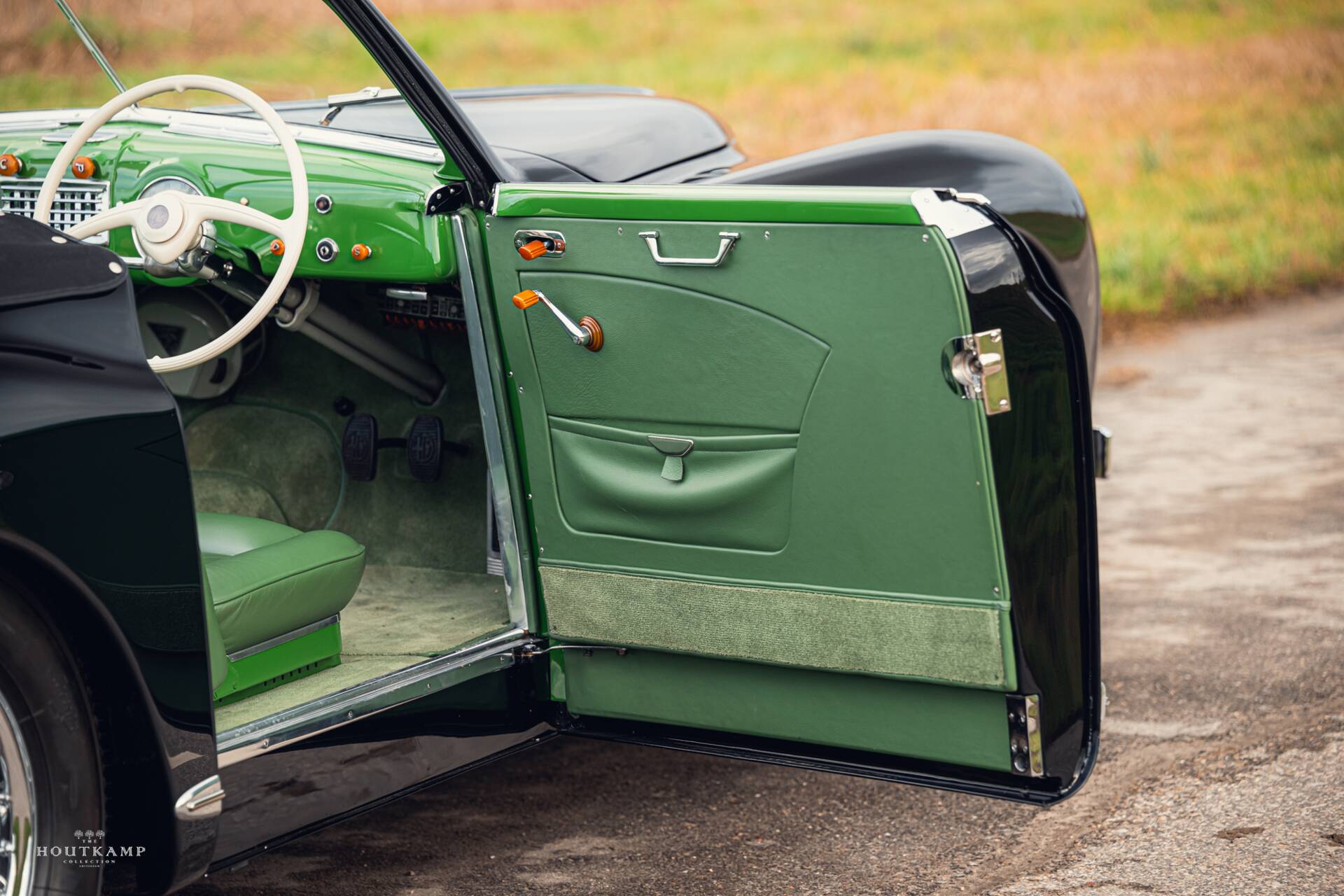 Possibly the sole example to have been finished in striking livery of Black over Green leather
